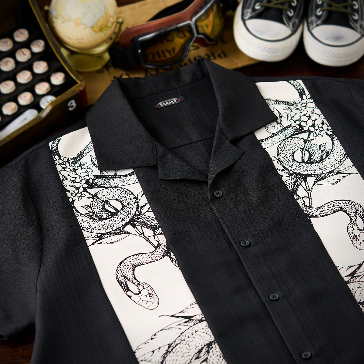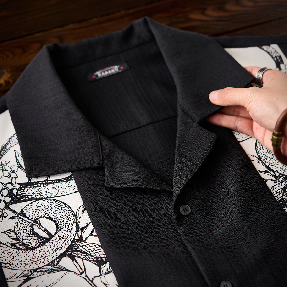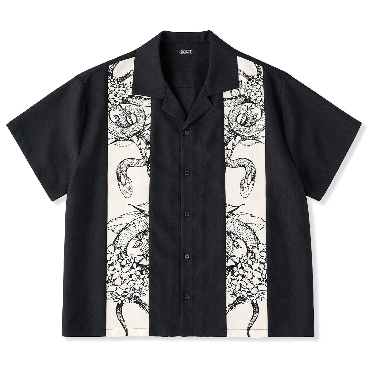 「金木犀に絡み合う蛇」配色パッチキューバシャツ