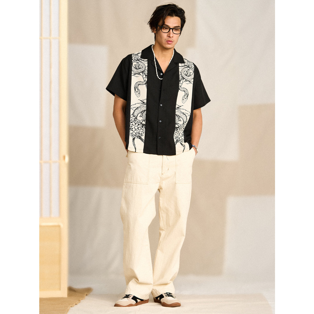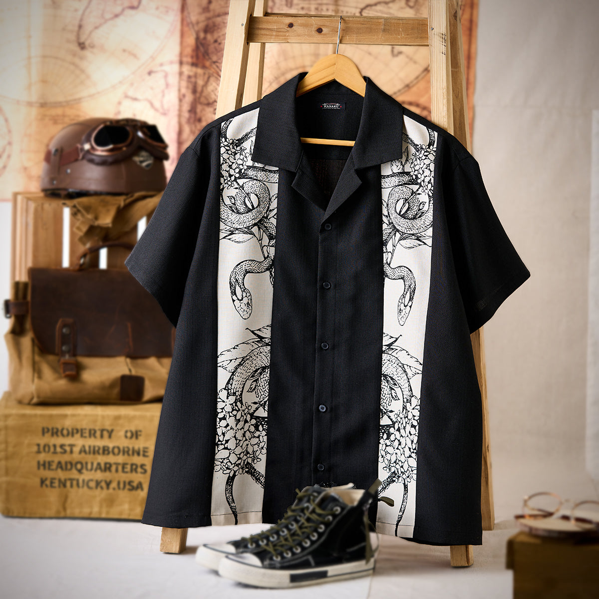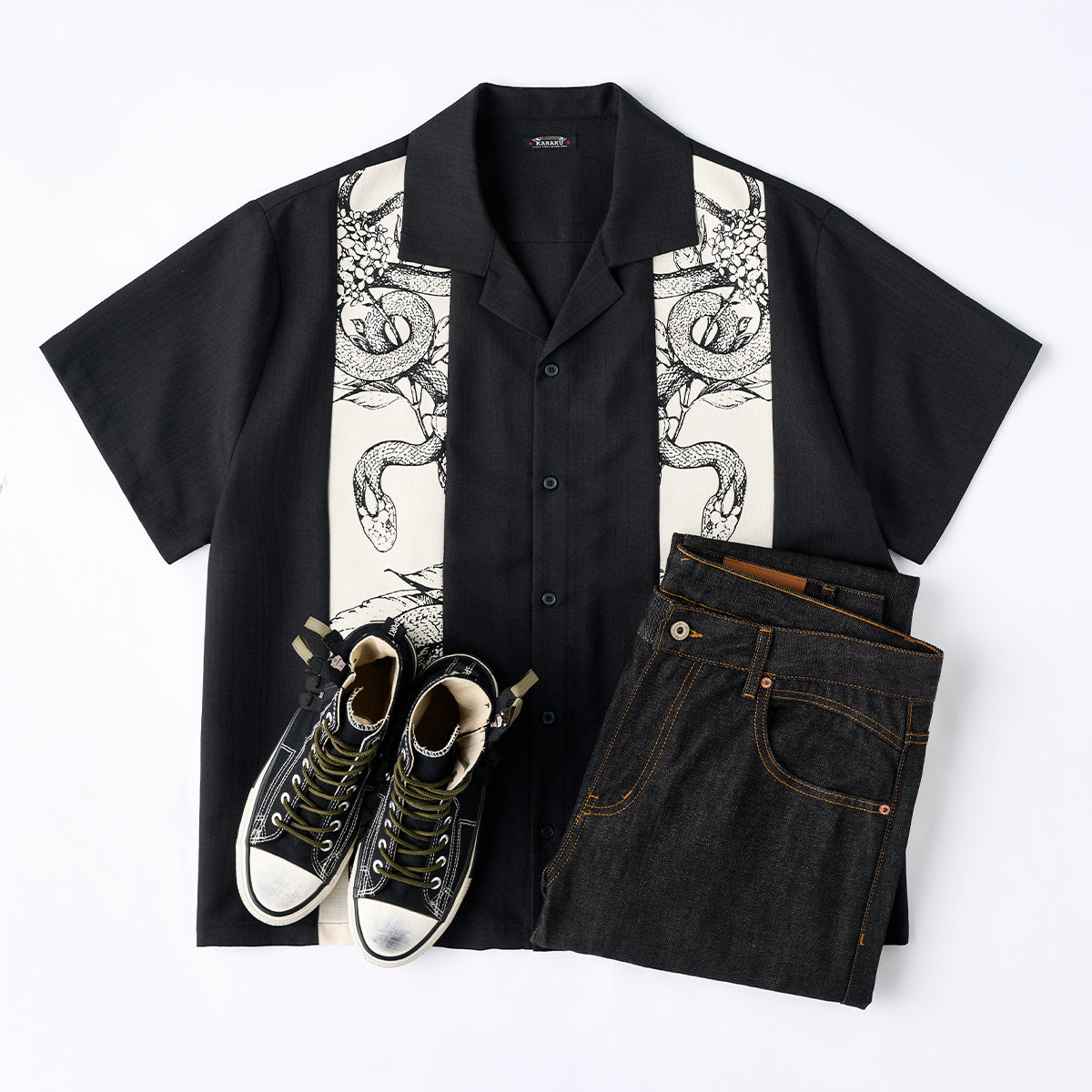 「金木犀に絡み合う蛇」配色パッチキューバシャツ