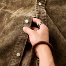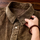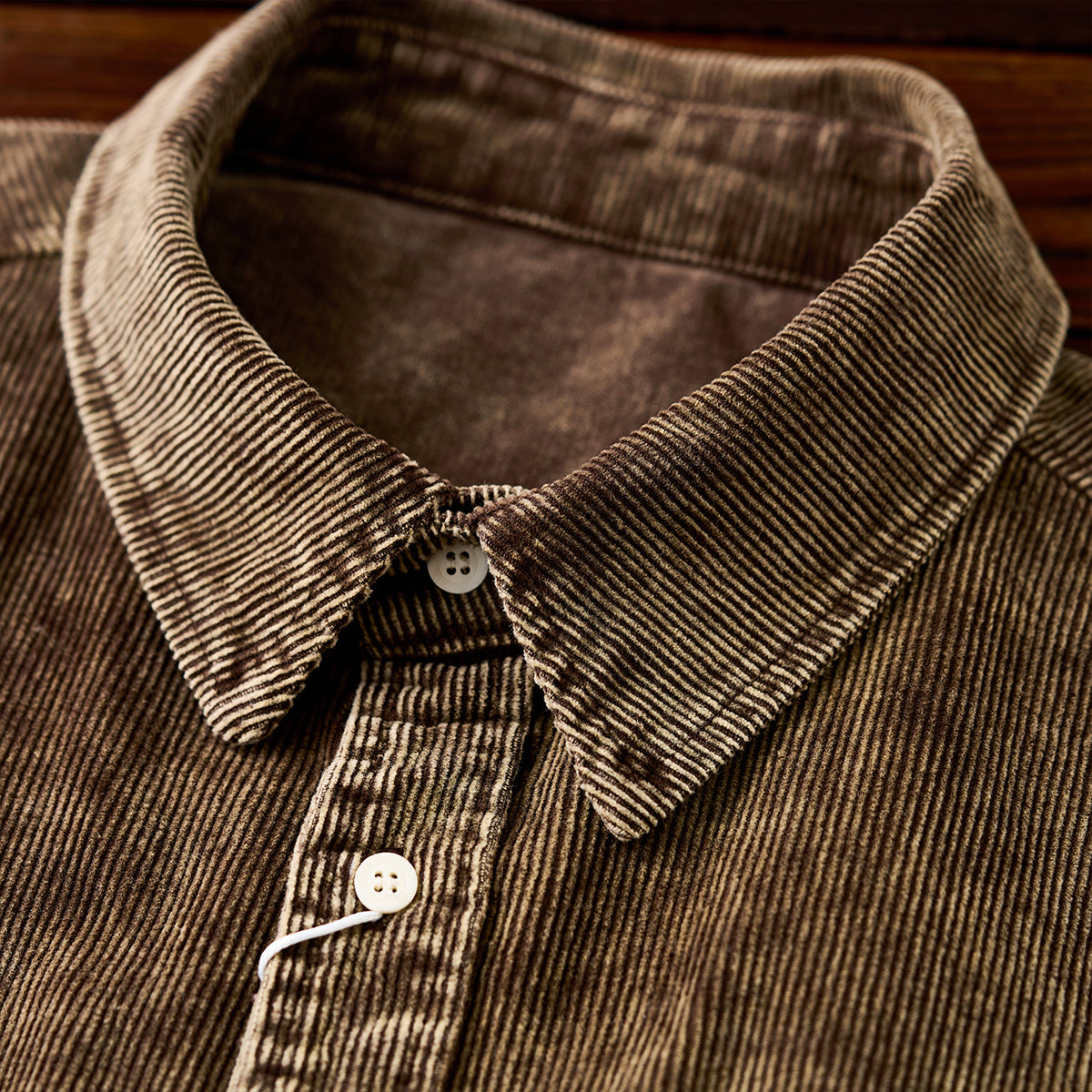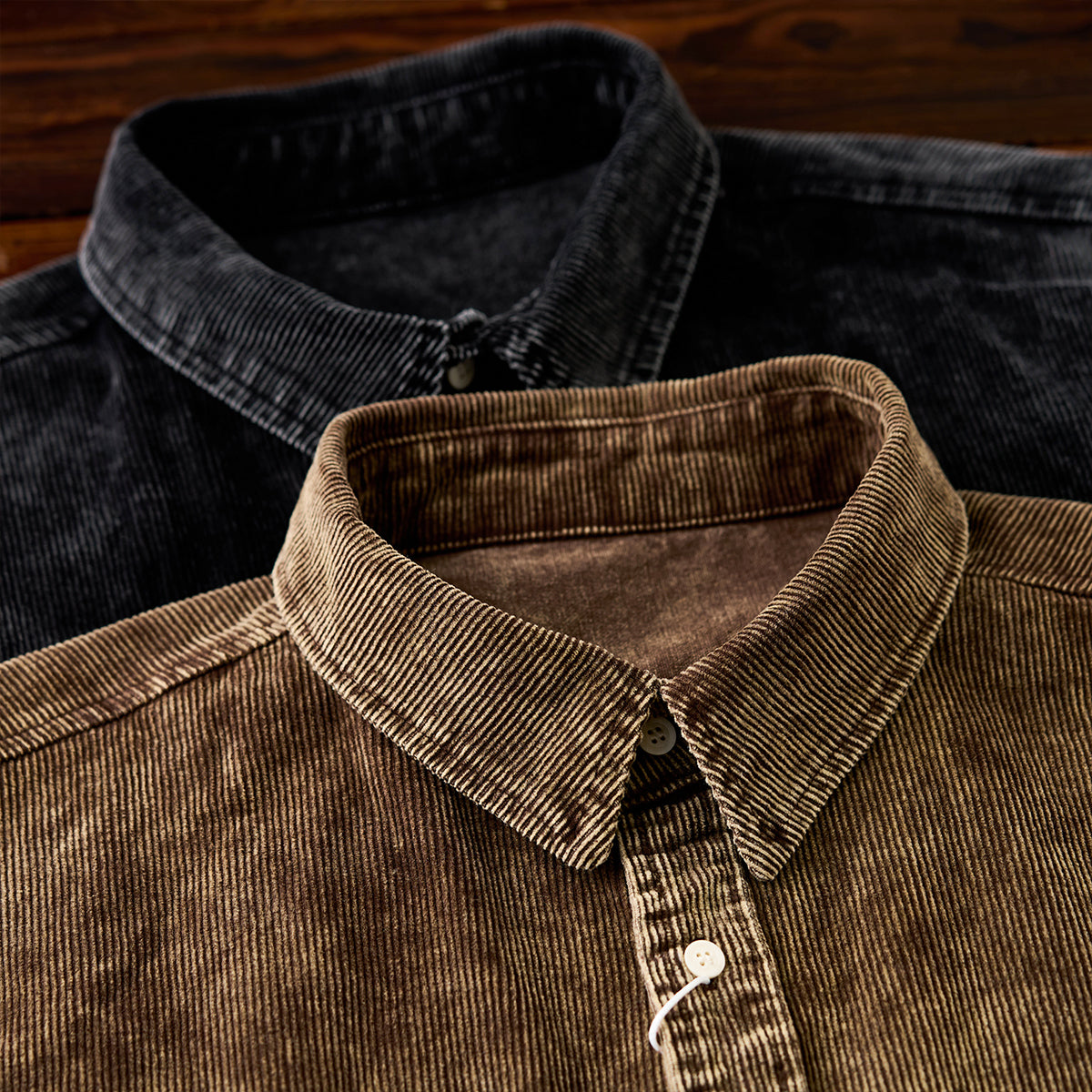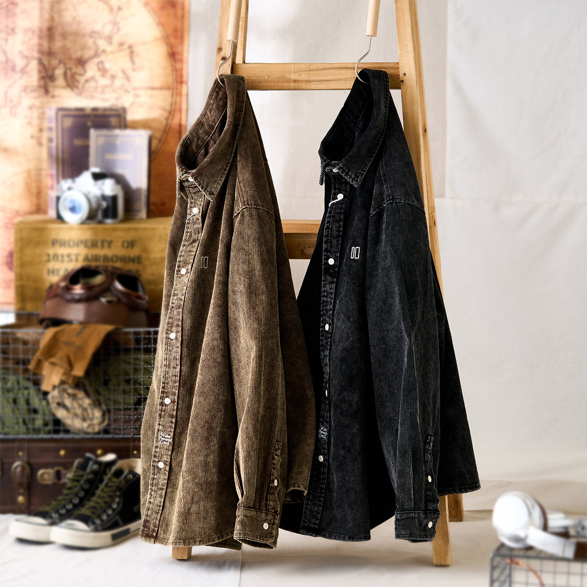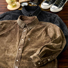 ウォッシュド加工 ワンポイント刺繍入りコーデュロイ長袖シャツ