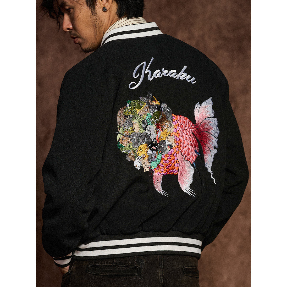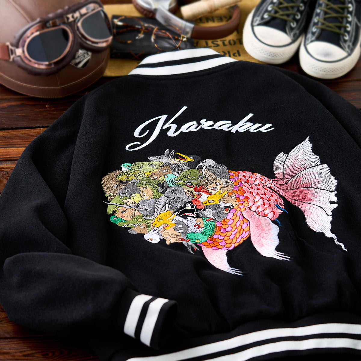 KARAKU×石黒亜矢子「百頭魚」刺繡入り 浮世絵風スタジャン
