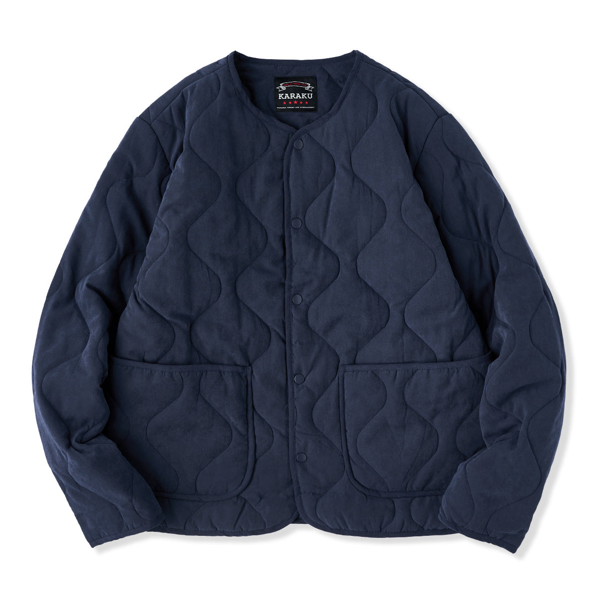耐久性が高いポリエステルと中綿のコットン素材を使用、手触りがしっかりとして暖かいです。インナーダウン感覚での着回しは便利なので1着あると秋冬は出番が多いアイテムです。