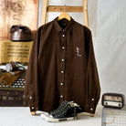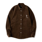 細畝コーデュロイ 「ゴルフスイングの首が落ちた骸骨」刺繍入り長袖シャツ