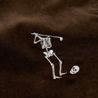 表情豊かな細畝コーデュロイを使用し、秋冬らしい温かみのある風合いに。左胸元には「ゴルフスイングの首が落ちた骸骨」の刺繡デザインが施されています。骸骨はゴルフクラブを握り、スイングをしている様子が描かれ、スイングのフォームや動きは、ゴルフの特徴を捉えています。骸骨の首が体から離れた状態で描かれており、ダークでユーモラスな要素が加わっています。ジャケット感覚で羽織っても良し、一枚でさらりと着ても良し。秋のアメカジ・ワークスタイルにぴったりのシャツです。