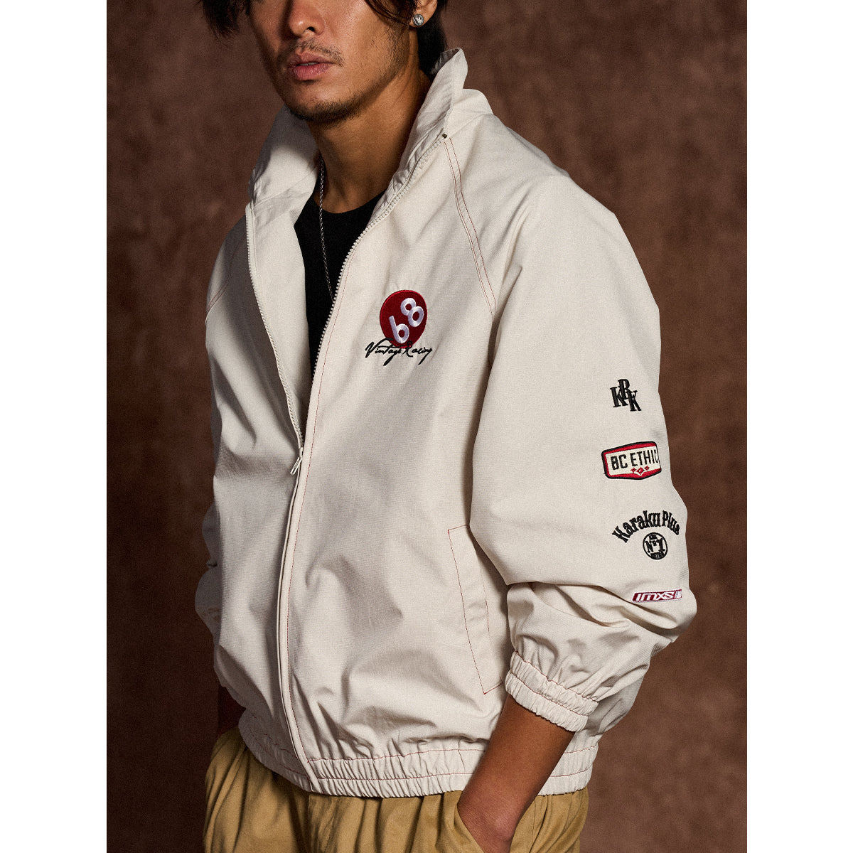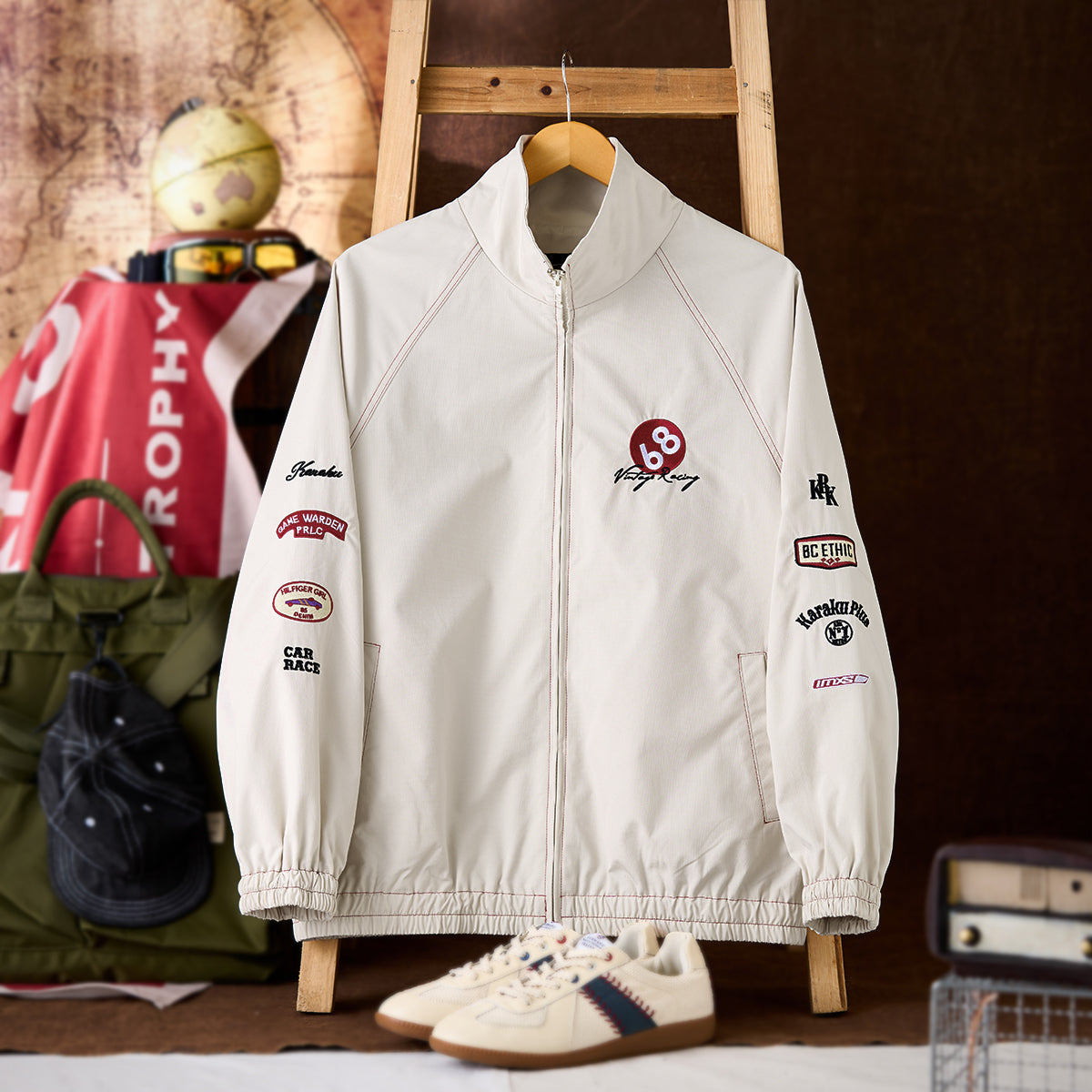 レーシング要素刺繍入り&ワッペン付き スタンドカラージャケット