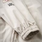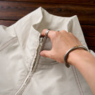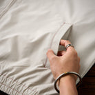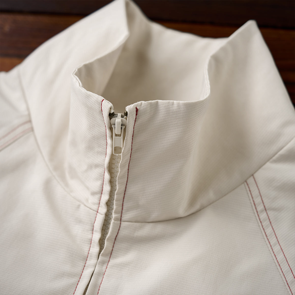 襟が立ち上がったスタンドカラー仕様、風の侵入を防ぐ機能的なデザインで、スポーティーかつモダンな印象を与えます。袖口と裾にゴムが入って、フィット感を調整しやすく、防風性を高める役割があります。