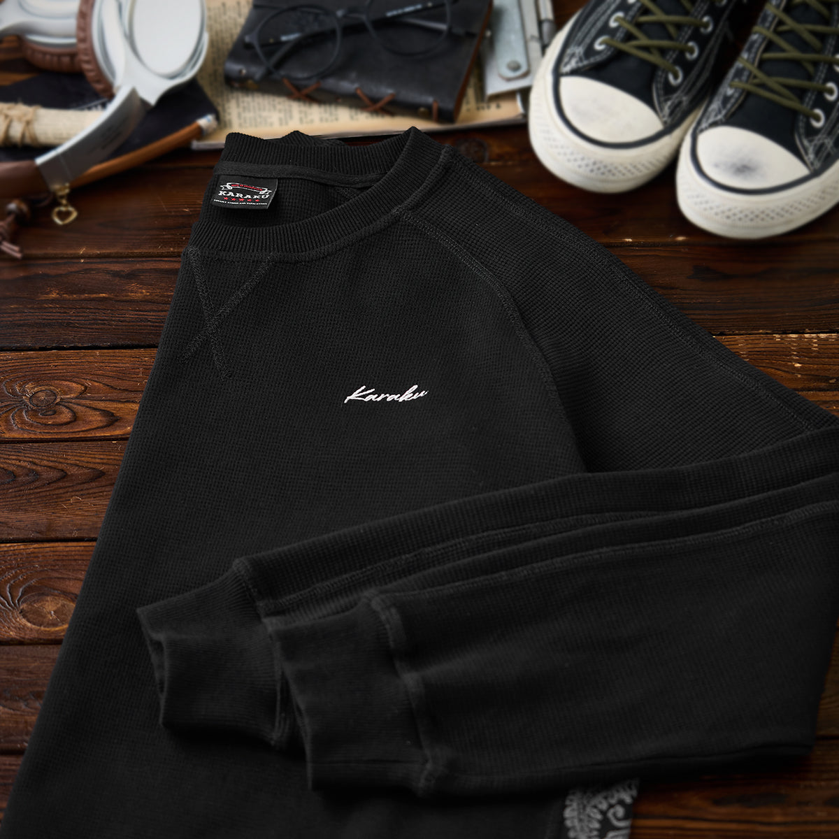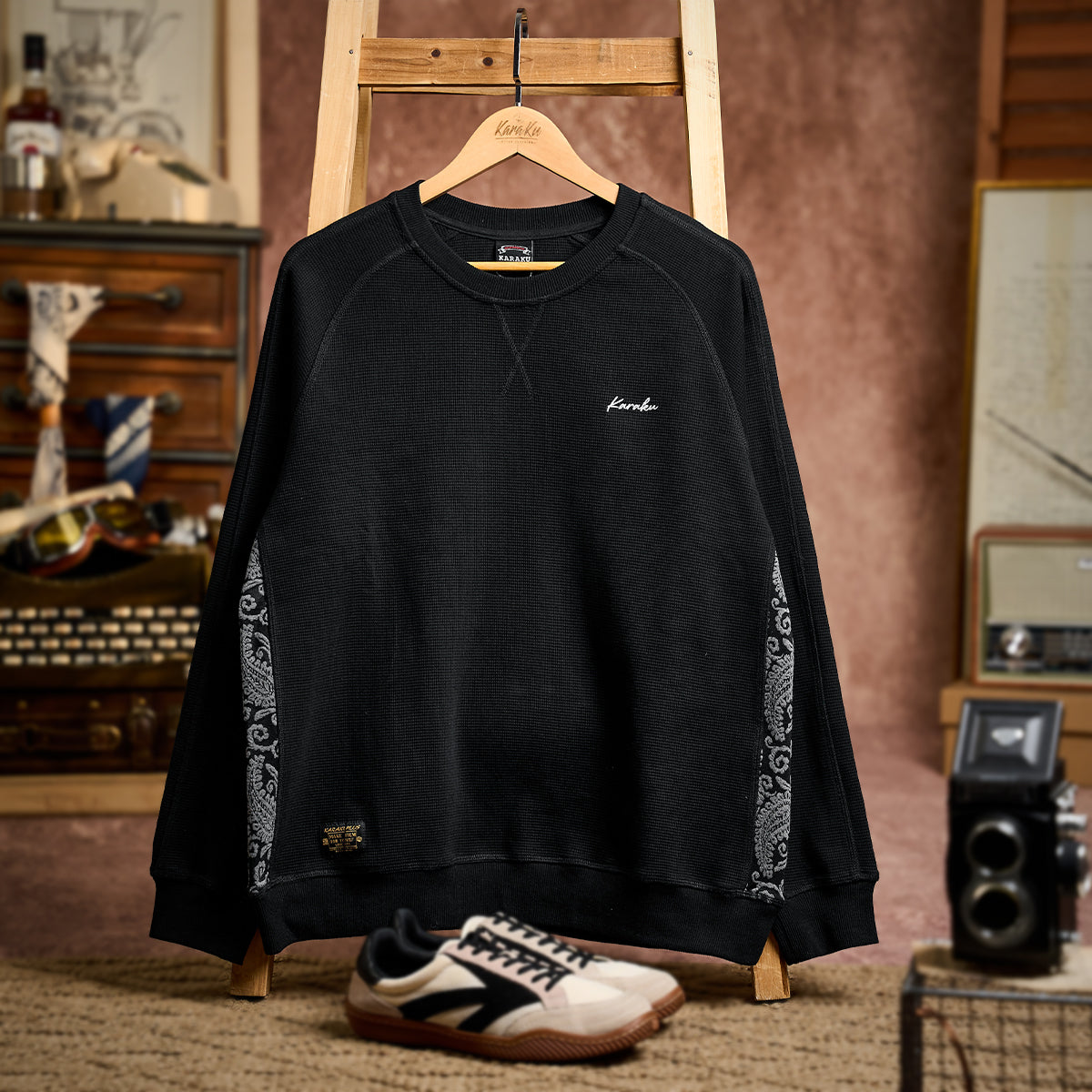 【予約】ジャカードペイズリー切替 「KaraKu」刺繡ミニワッフルスウェット