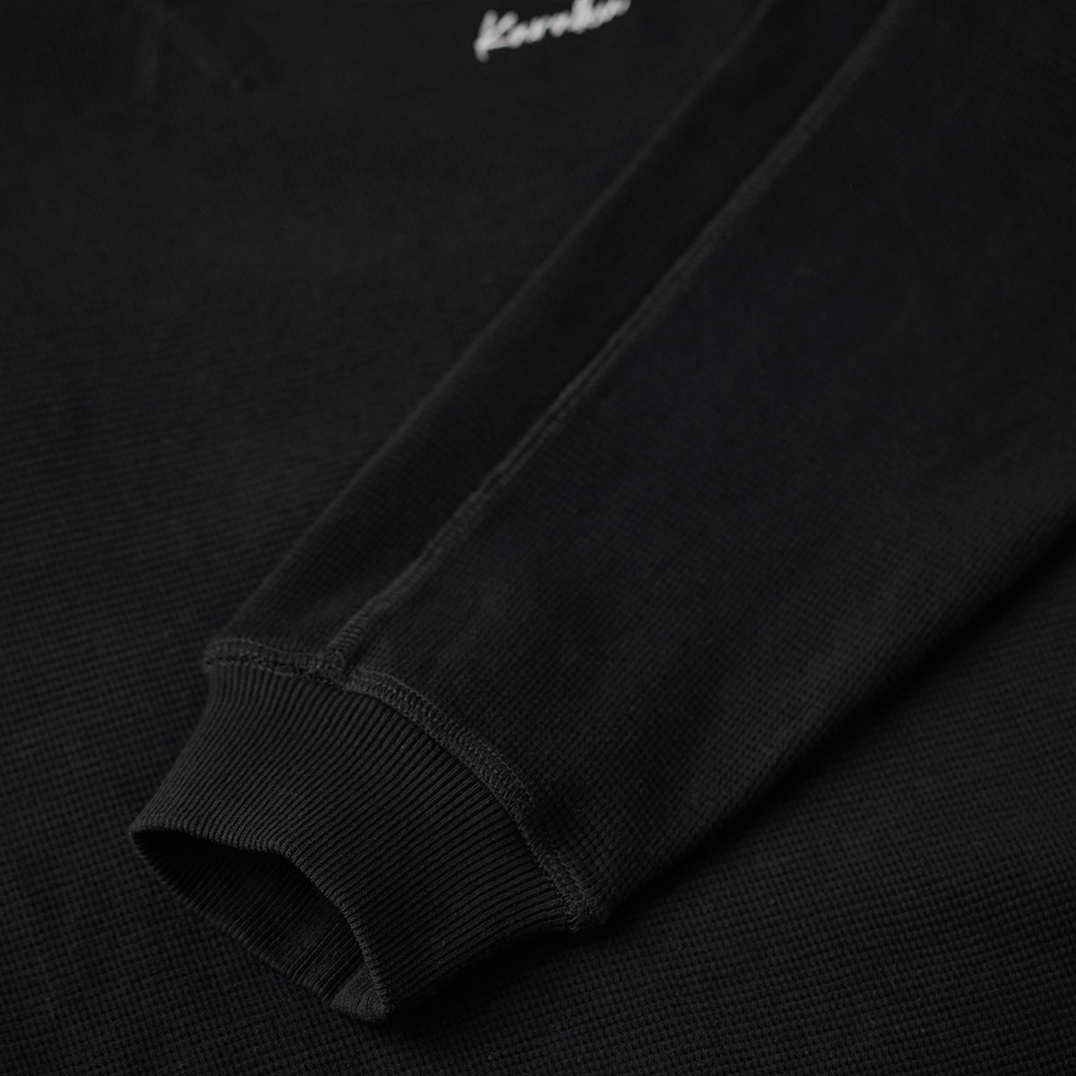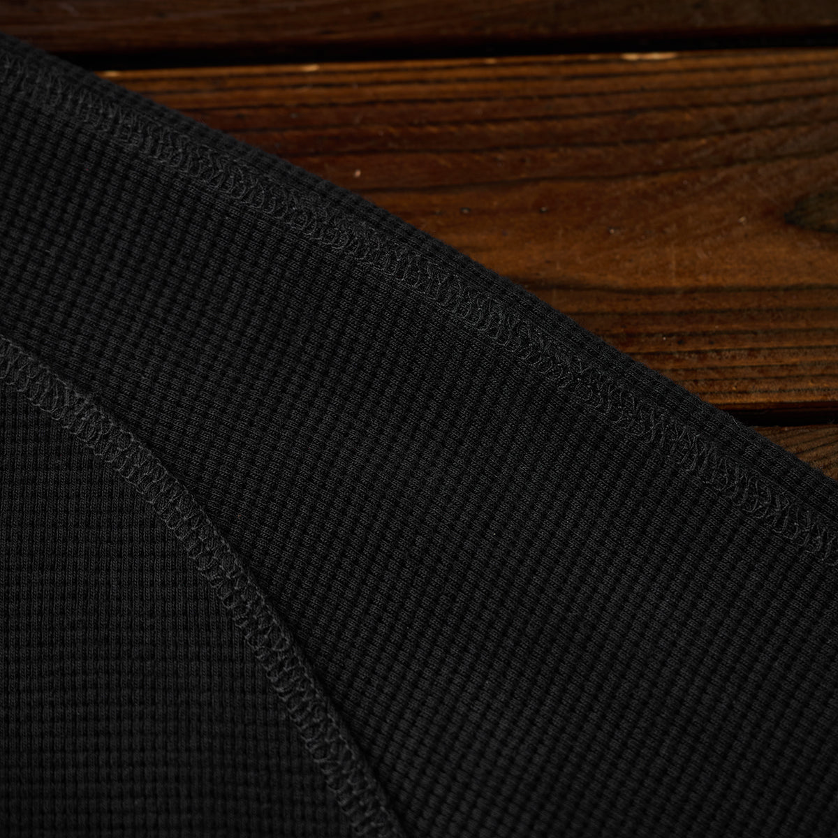 ミニワッフル編みのテクスチャーが全体的に使われており、立体的でカジュアルな雰囲気を演出しています。ワッフル編みは通気性がよく、快適な着心地を提供します。