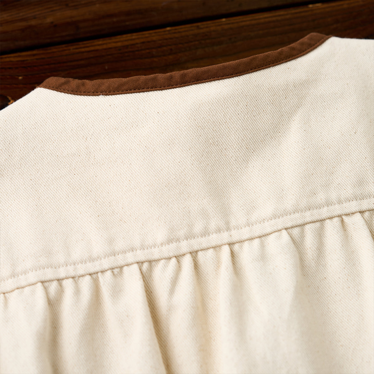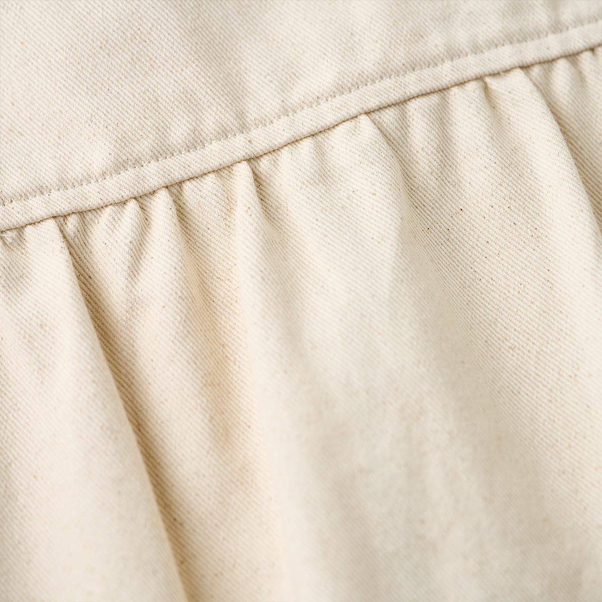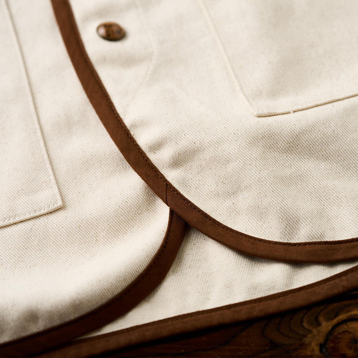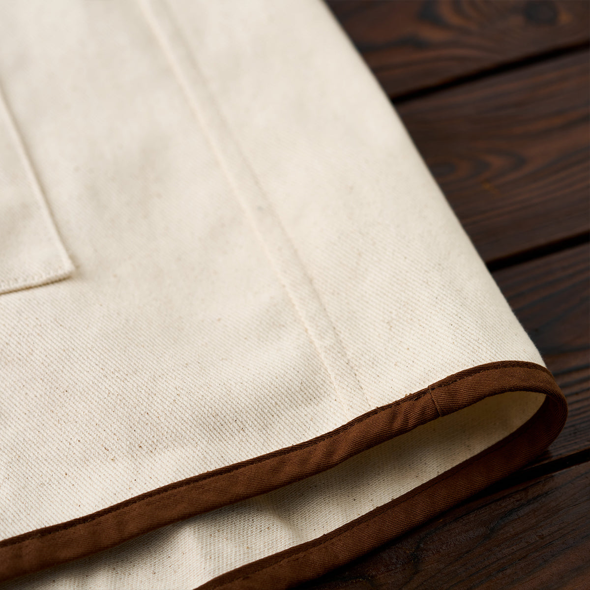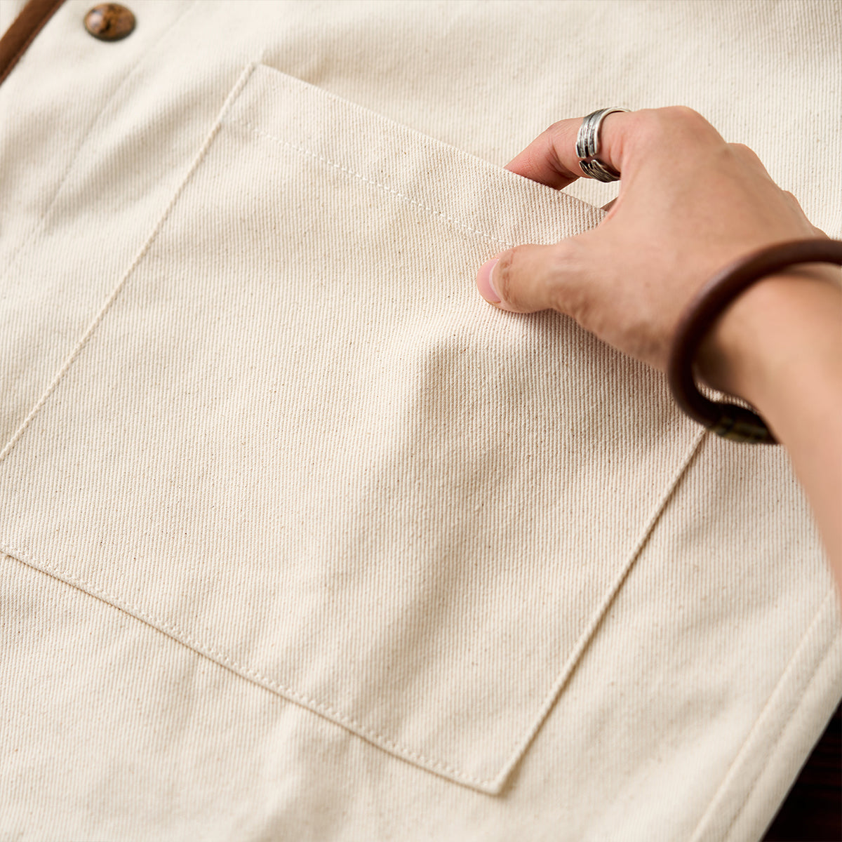 コットンツイル素材を使用し、やや厚手でしっかりとした作りです。通気性がありつつも耐久性が高く、長期間使用可能です。