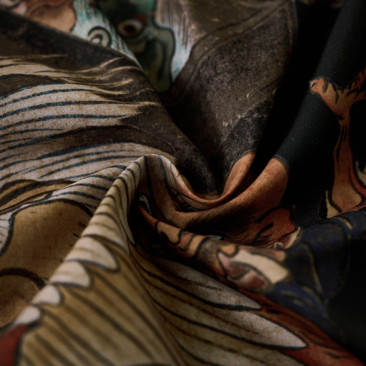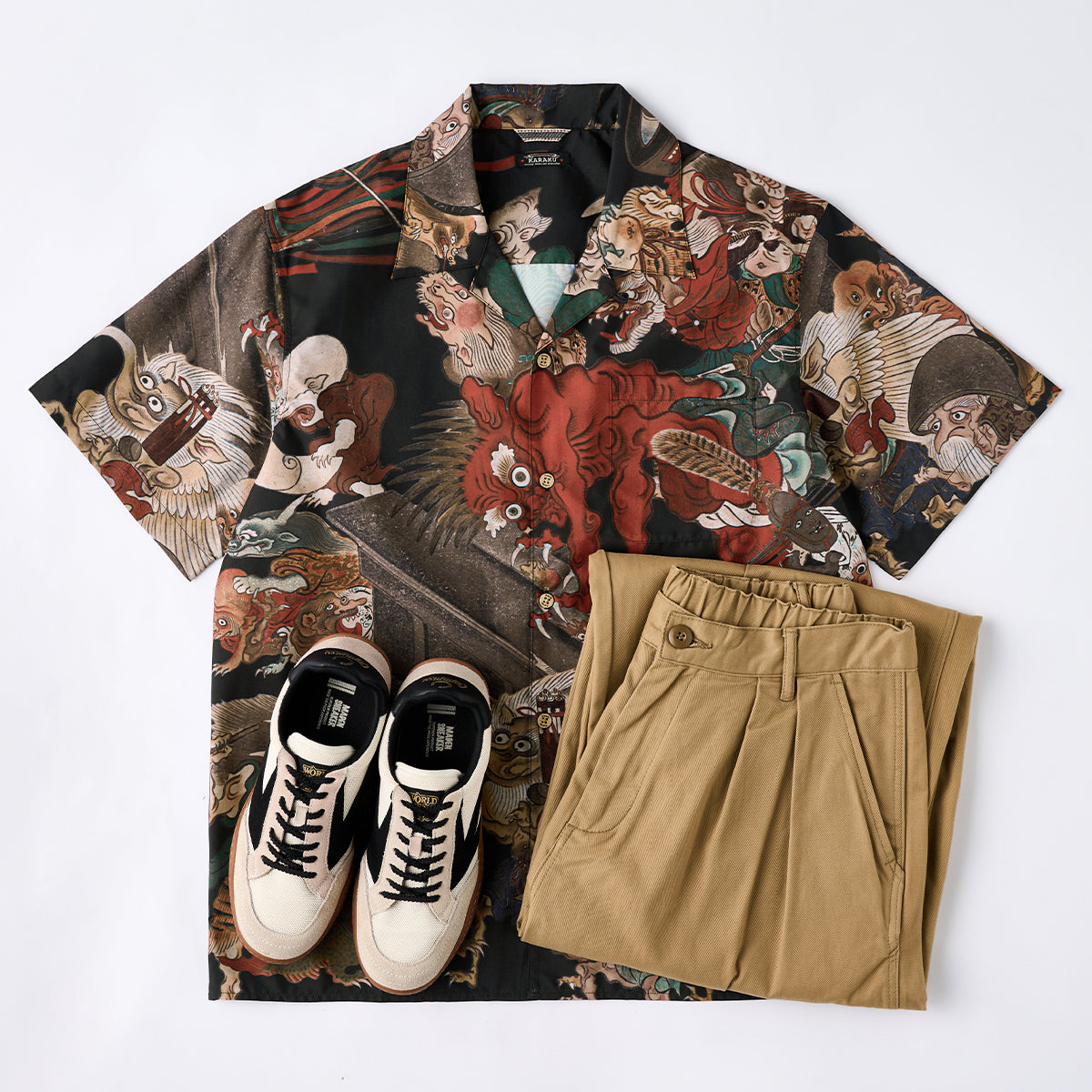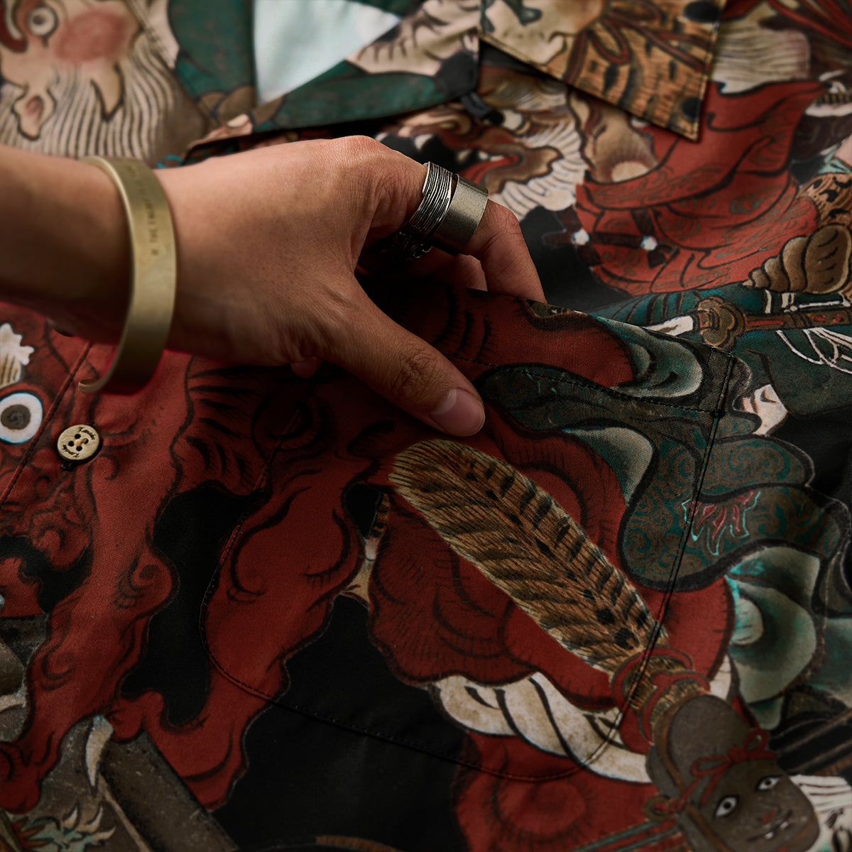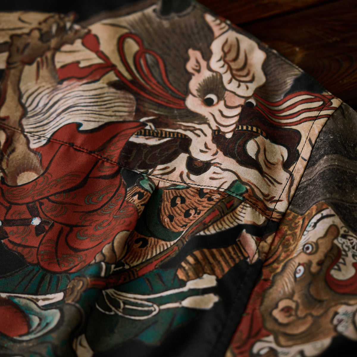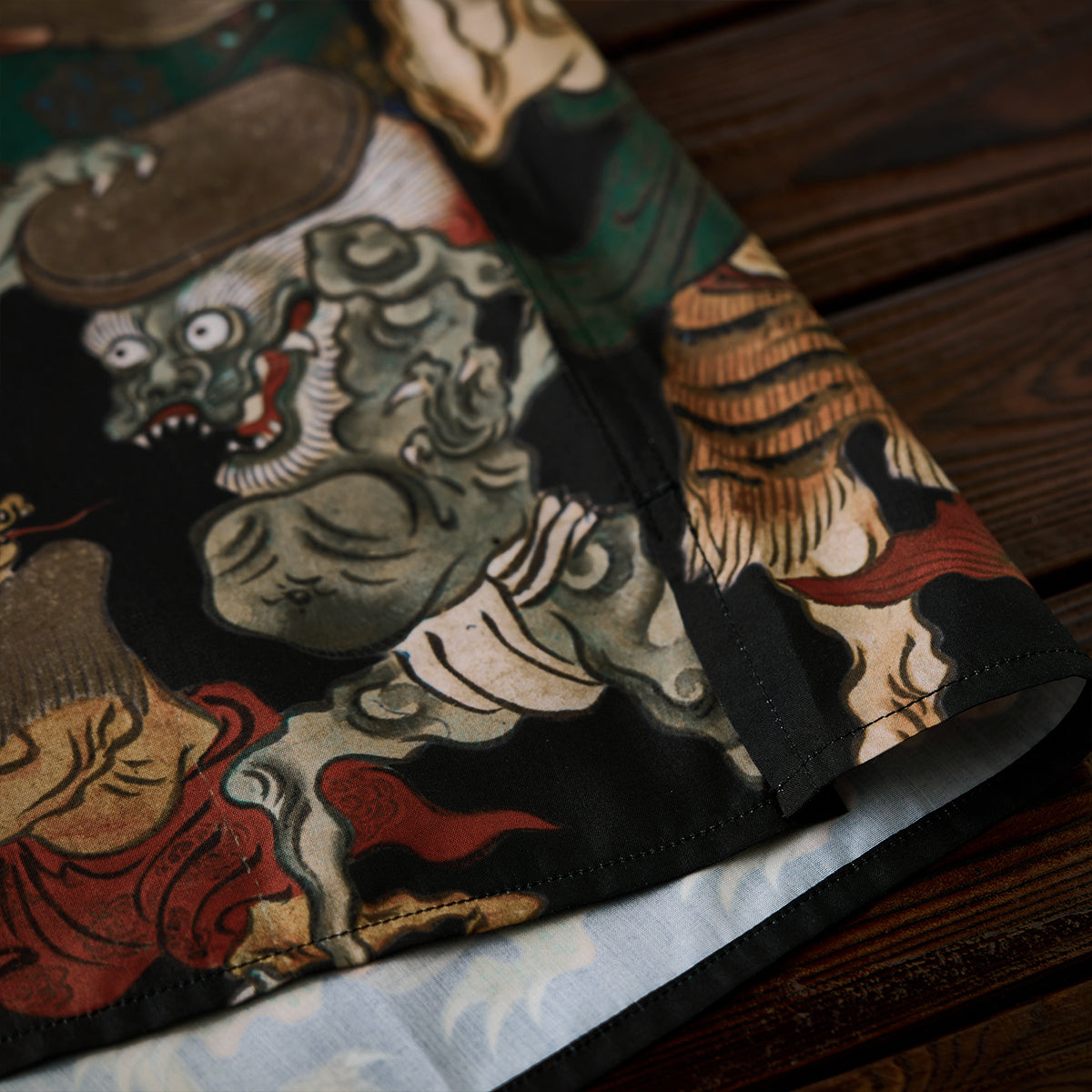 室町時代「妖怪絵巻」浮世絵総柄オープンカラーシャツ