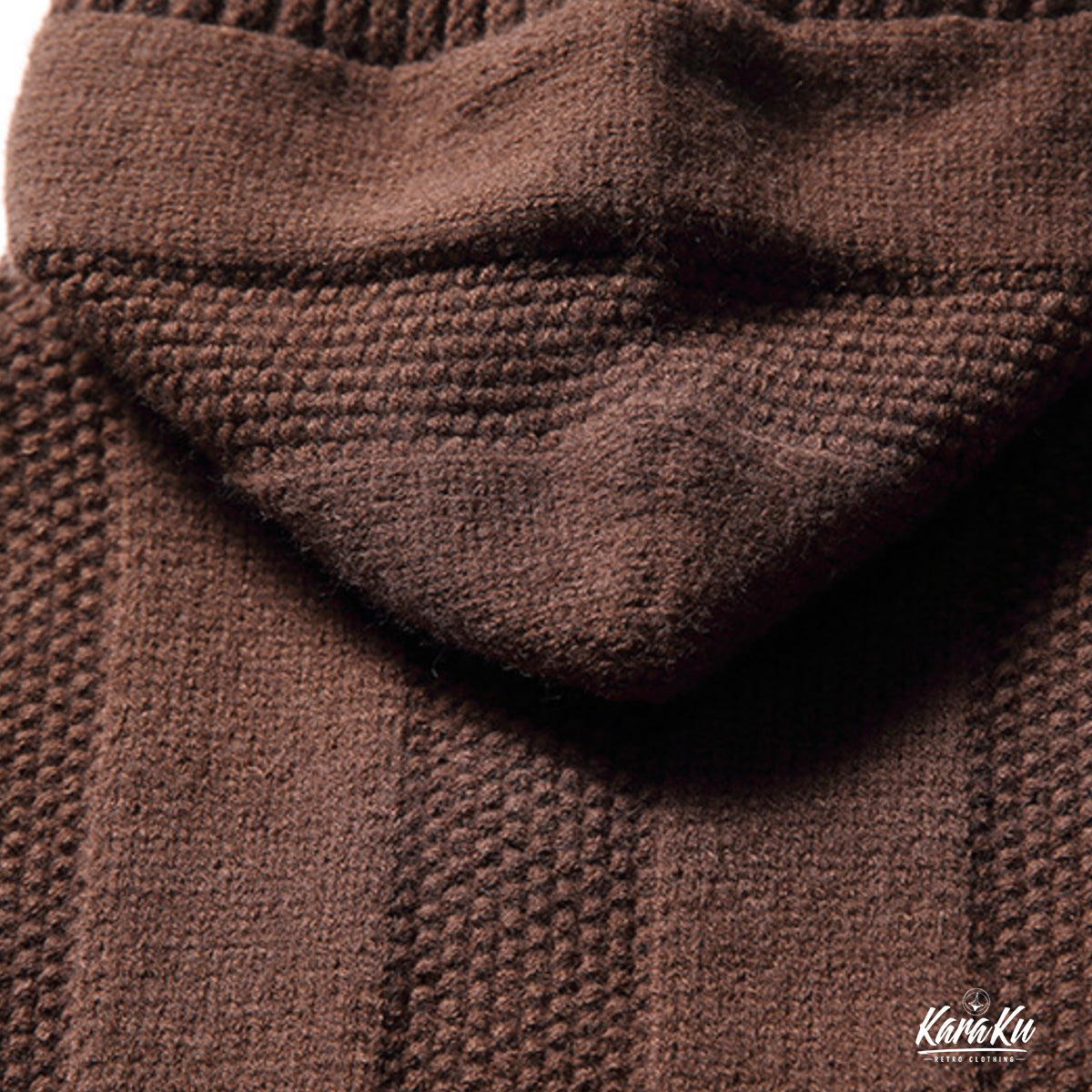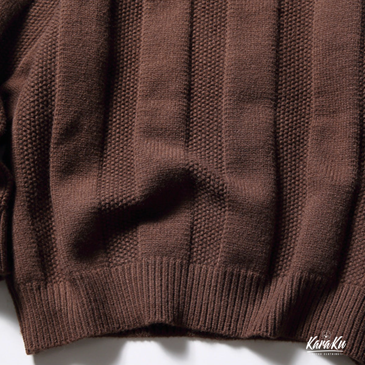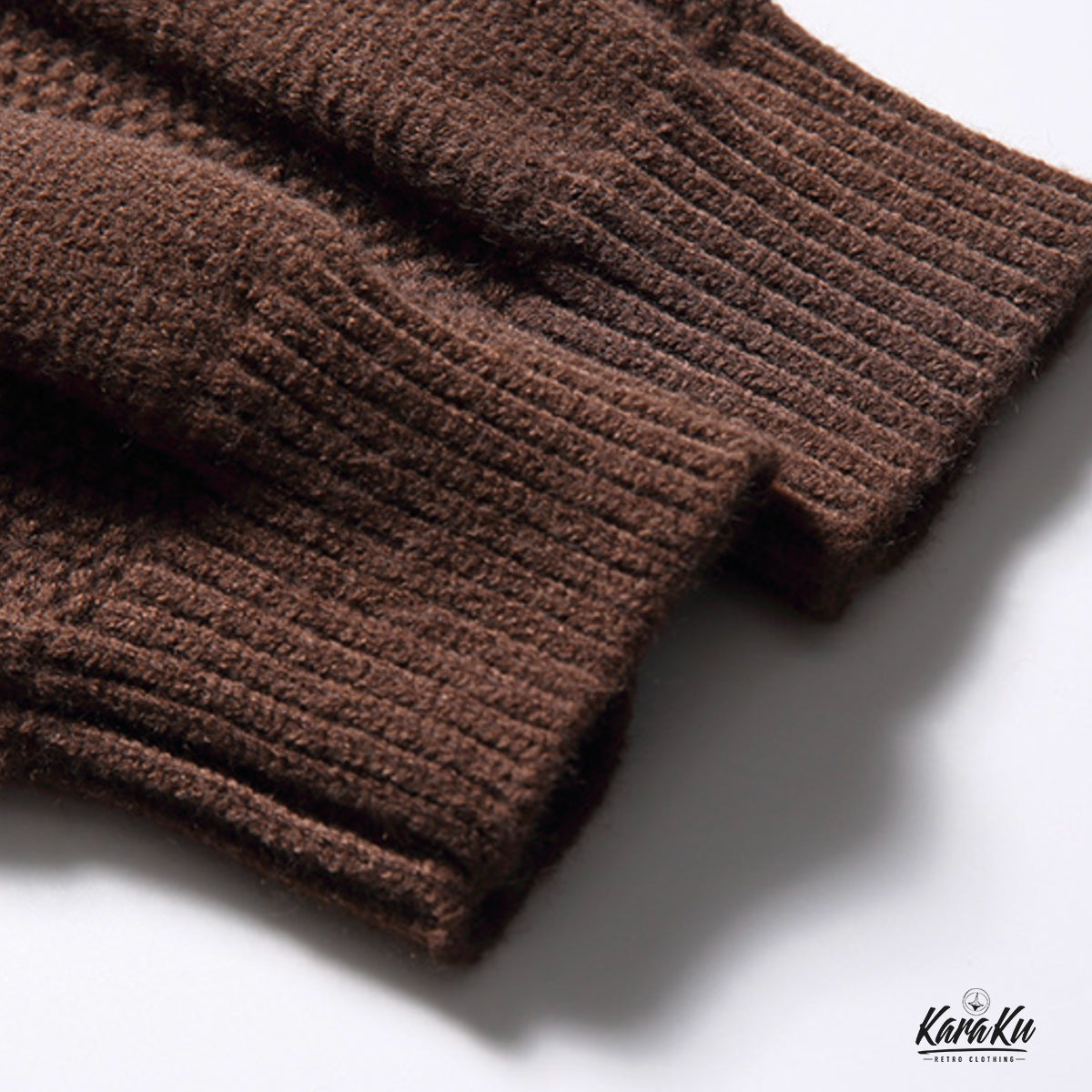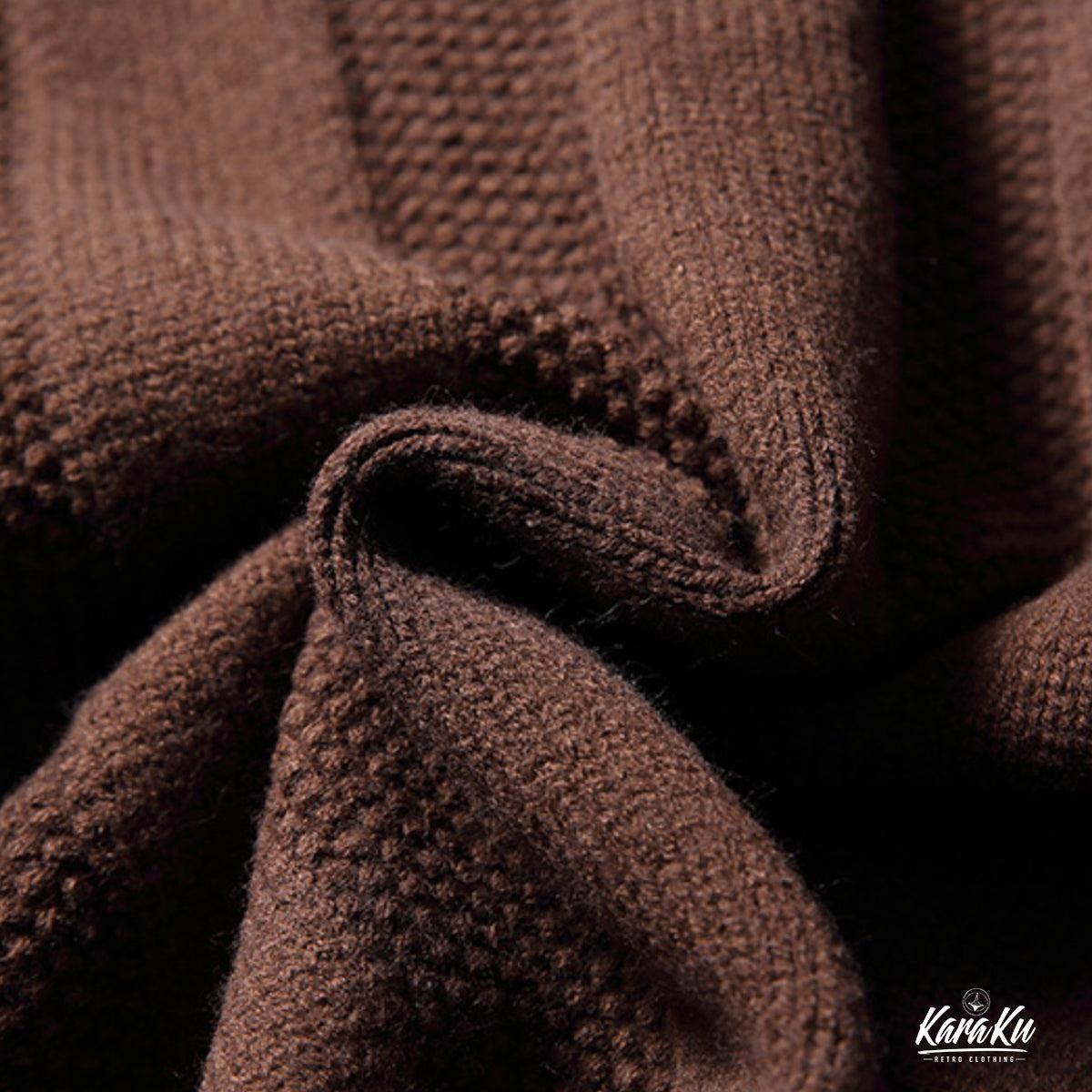 暖かい素材とニットの特性から、寒い季節や秋冬のレイヤリングに適しています。