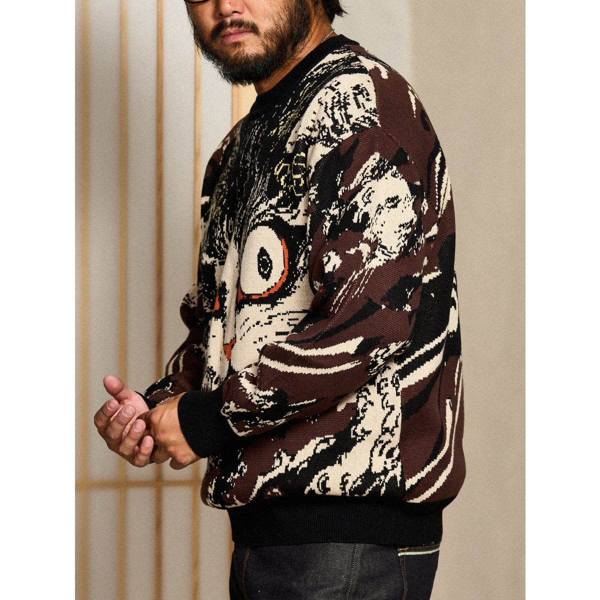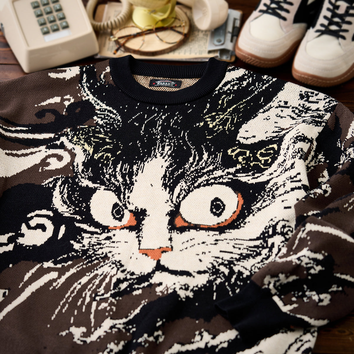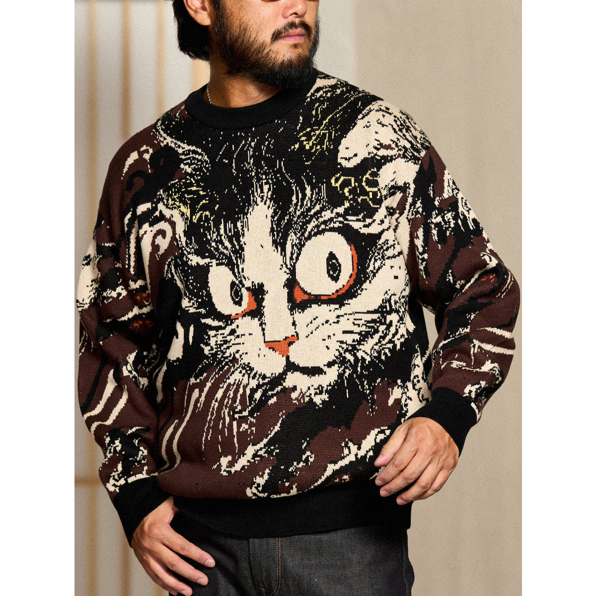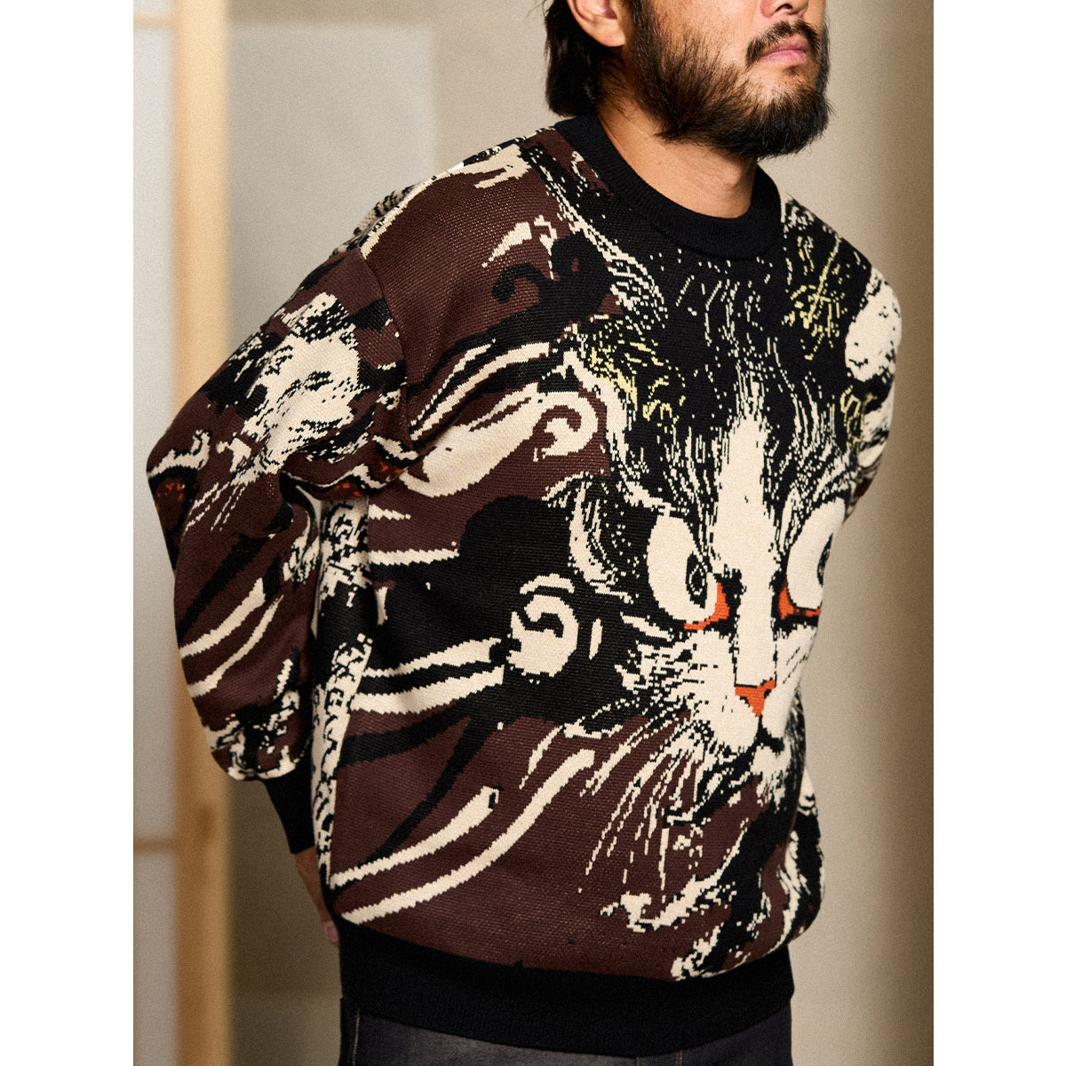民間伝承「化け猫」浮世絵風ジャガードニットセーター