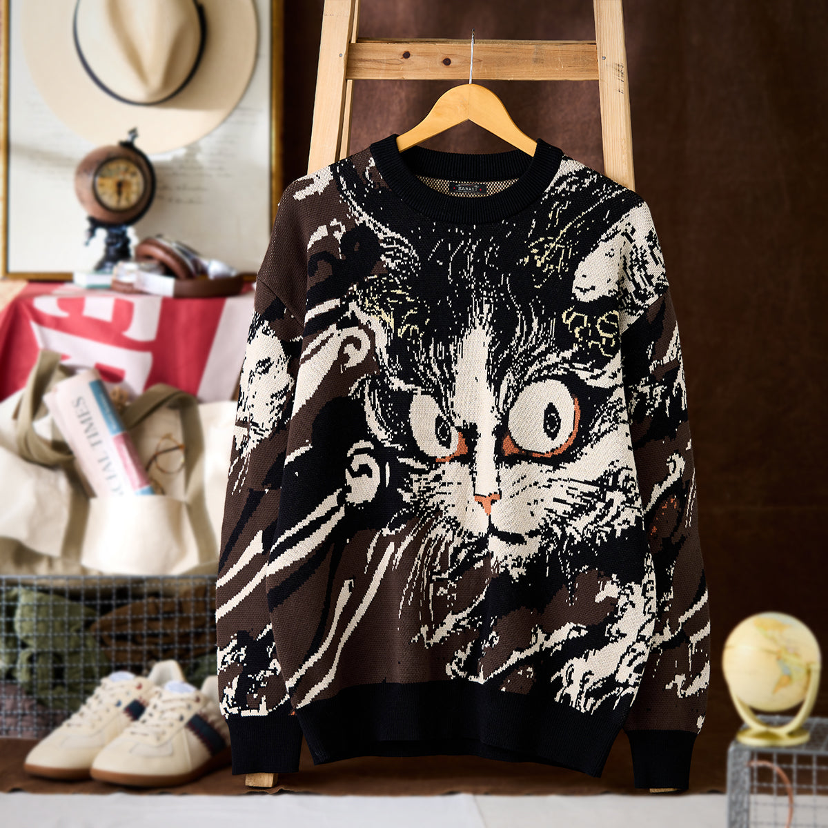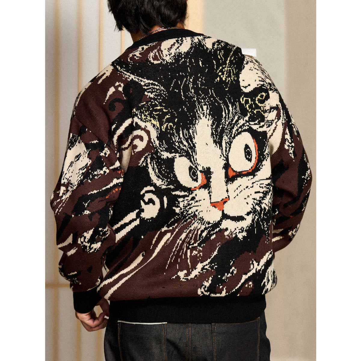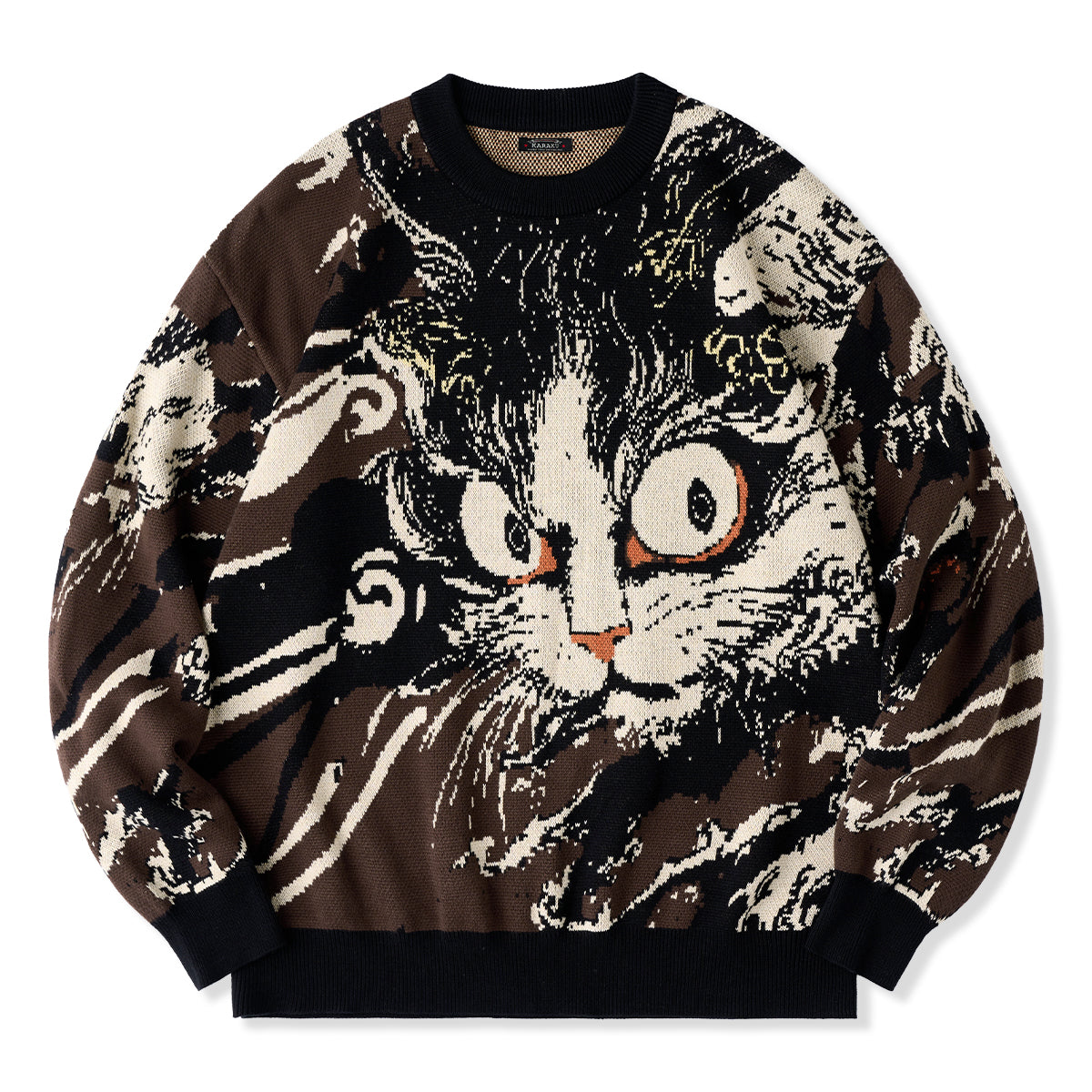 民間伝承「化け猫」浮世絵風ジャガードニットセーター