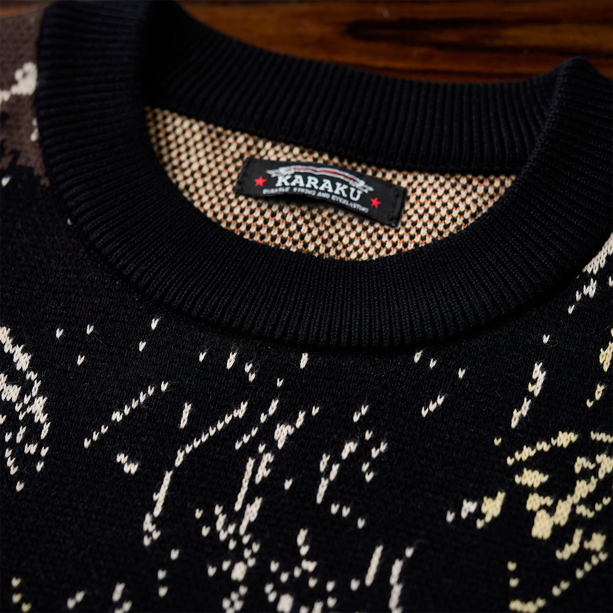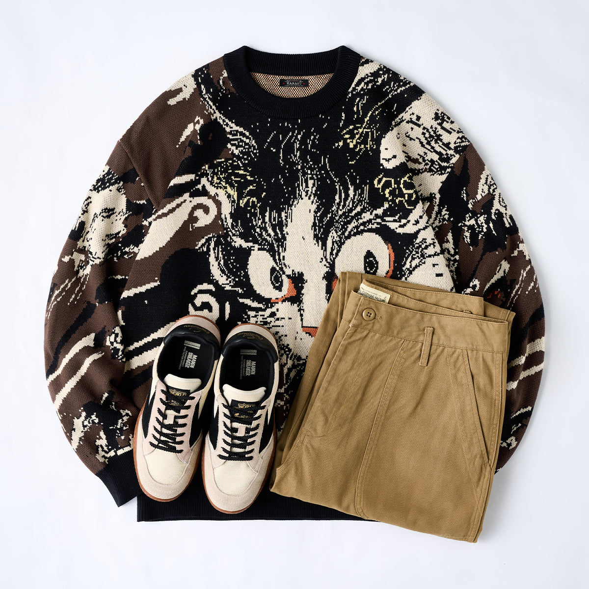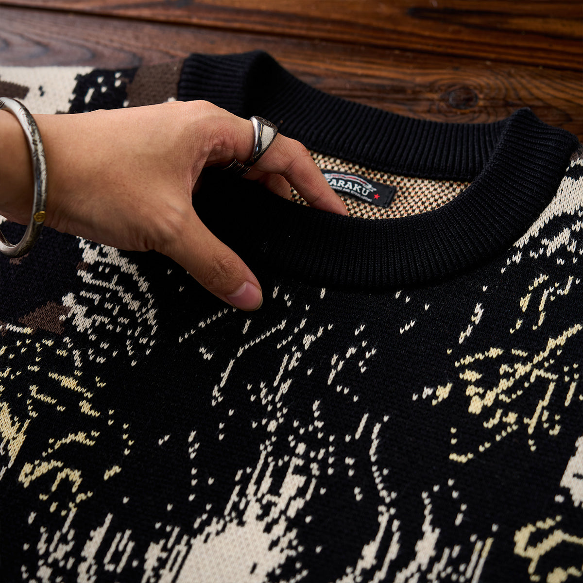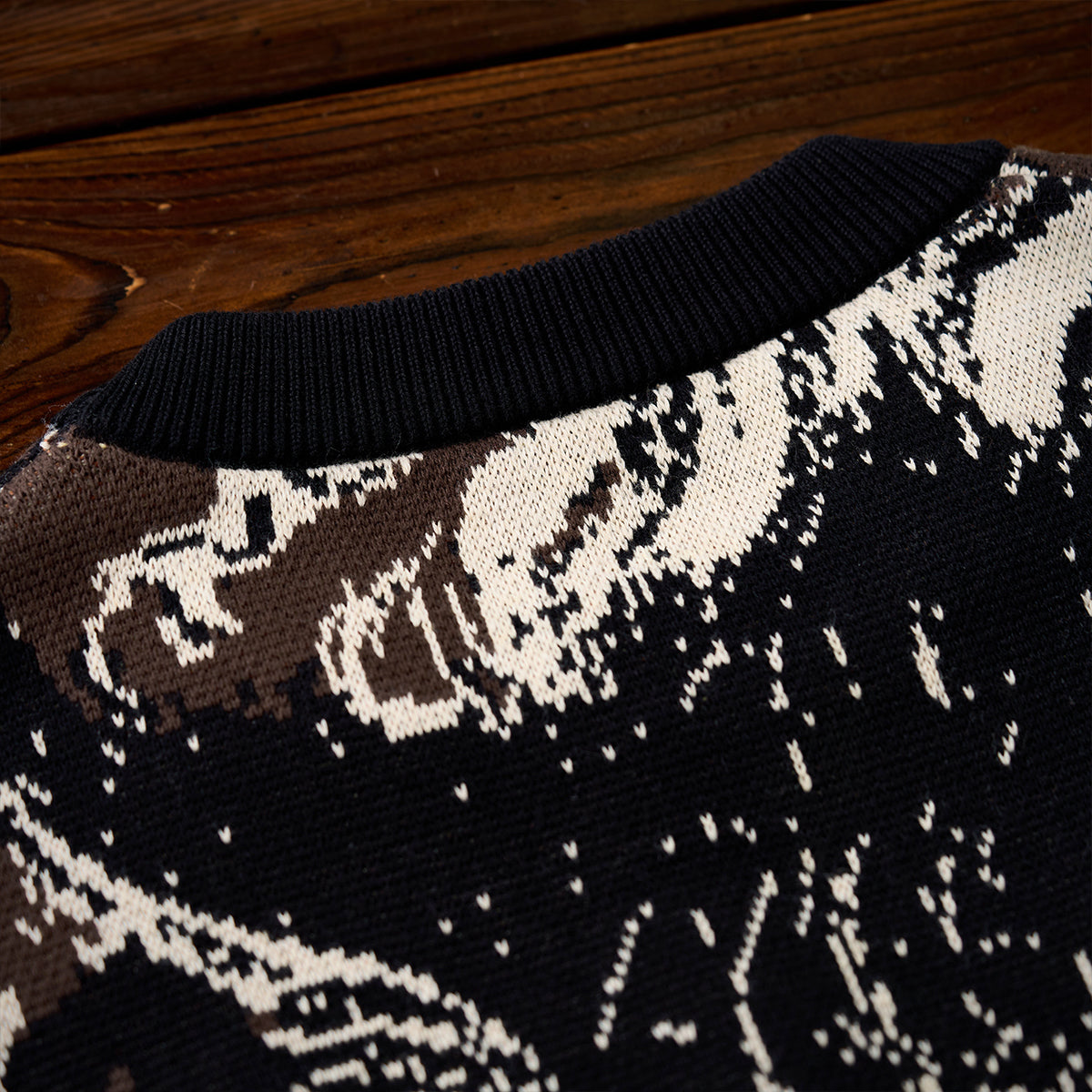 民間伝承「化け猫」浮世絵風ジャガードニットセーター