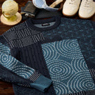 ネイビーとブルー系の配色はどんなボトムスにも合わせやすく、ジーンズやチノパンと相性抜群です。また、和風の要素が入った個性的なデザインは、シンプルなコーディネートにもアクセントを加えます。