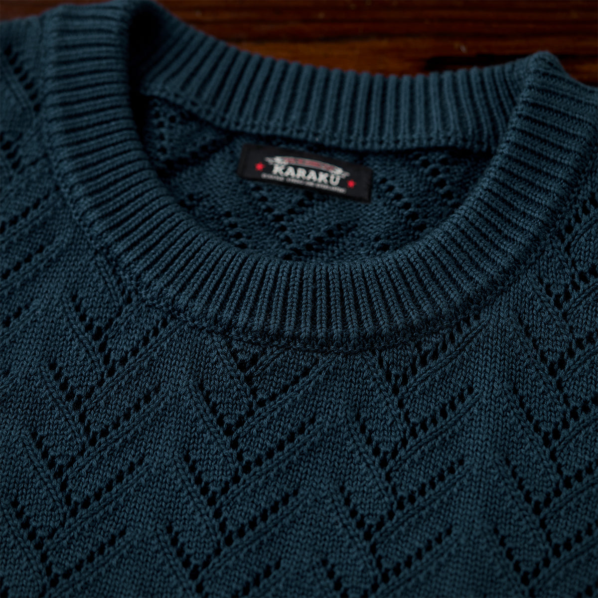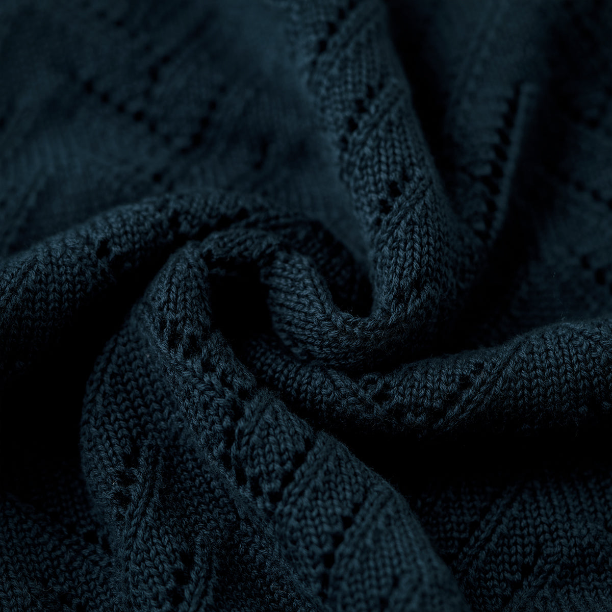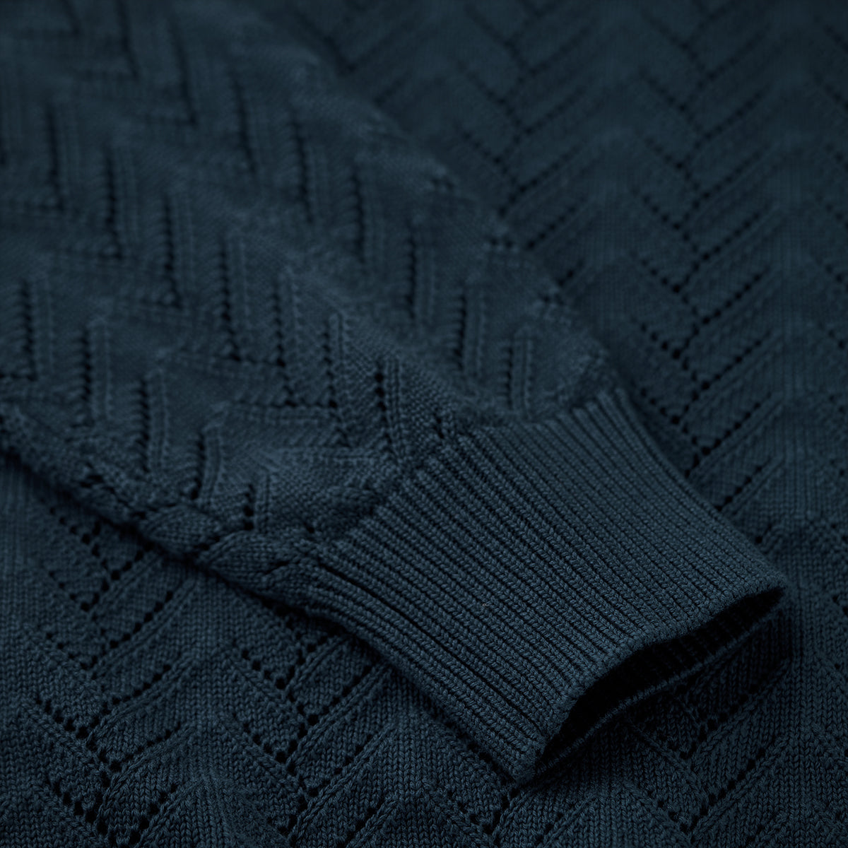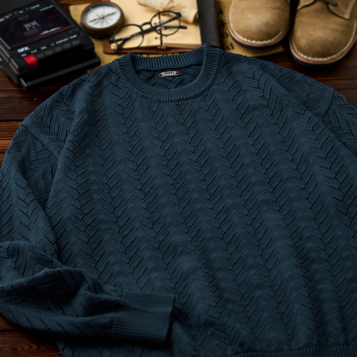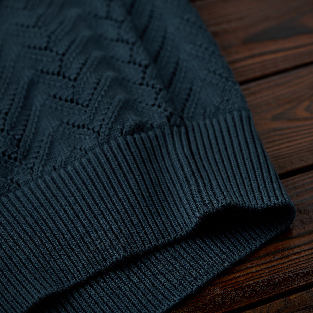 繊細な透かし彫り編みが印象的な、抜け感のあるドロップショルダーニットセーター。編み地の透かし模様が軽やかな表情を生み出し、シンプルながらも上品で洗練された印象に仕上げています。ゆったりとしたドロップショルダーシルエットが、リラックス感のある着こなしを演出。肌触りの良い柔らかな糸を使用し、程よい厚みで季節の変わり目にも快適に着用できます。シャツやロングTシャツとのレイヤードにもおすすめの一枚です。