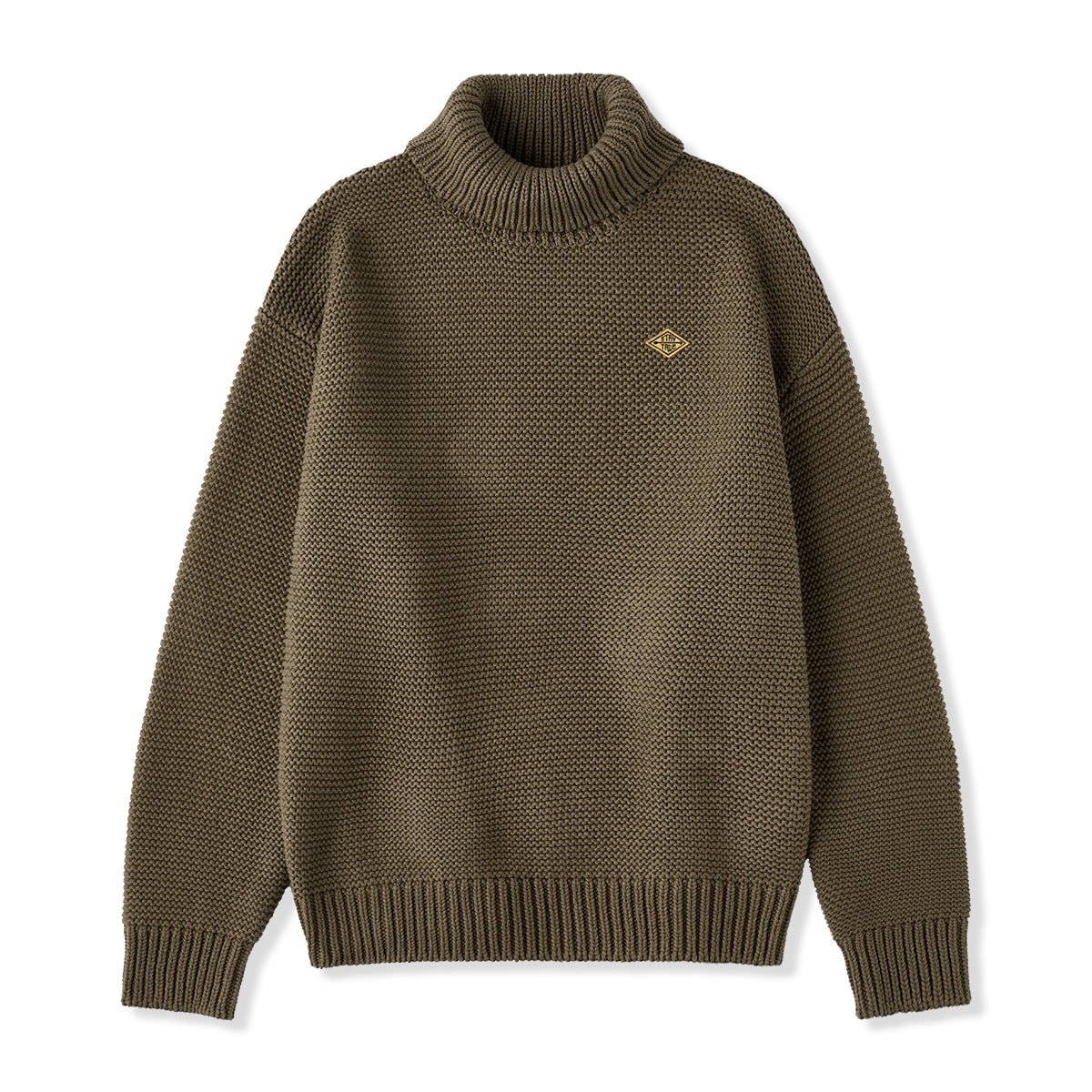 胸元に配した「STAY TRUE」刺繍ワッペンが印象的な、存在感あふれるハイネックニットセーター。立体感のあるパール編みで仕立てることで、程よい厚みと柔らかな膨らみを実現。シンプルながらも豊かな表情を生み出します。首元まで暖かく包み込むハイネック仕様で、防寒性にも優れた仕上がり。程よくゆとりを持たせたシルエットがリラックス感を演出し、1枚でもインナーとしても幅広く活躍します。