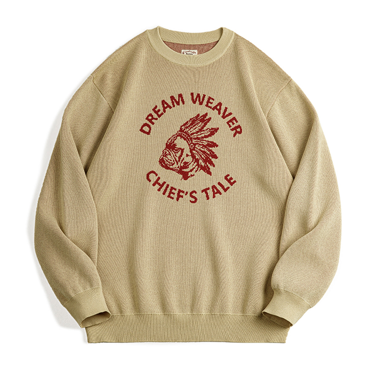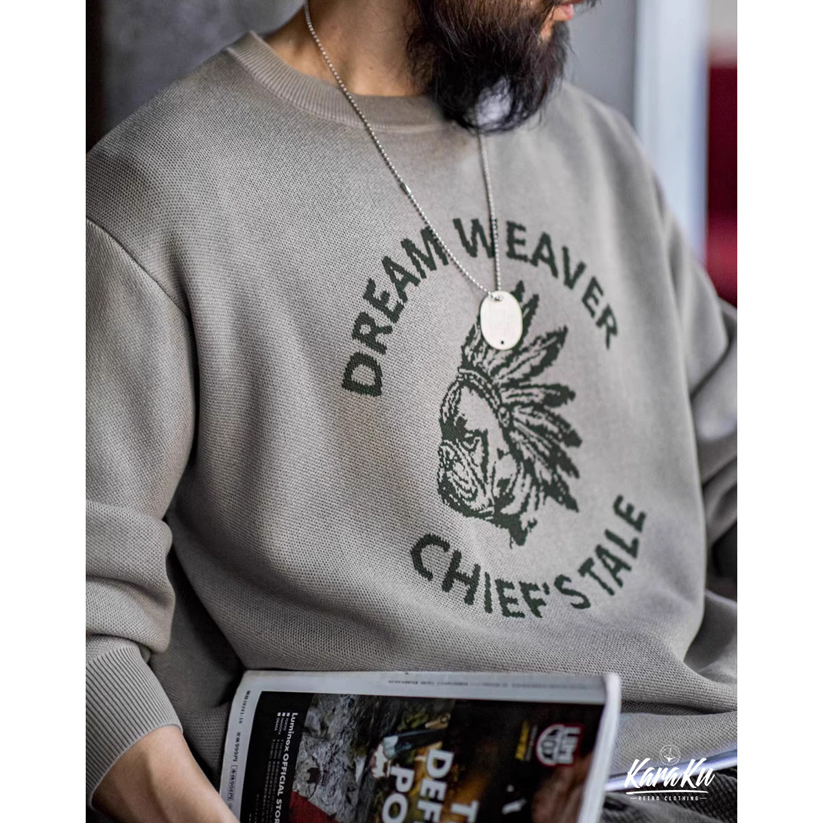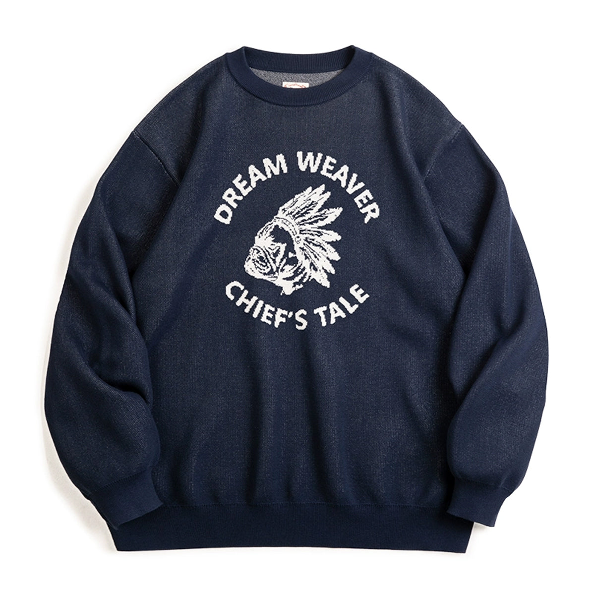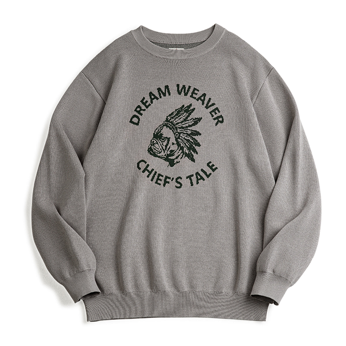 本アイテムは、勇敢さを象徴するフレンチブルドッグと自由を表現するチーフヘッドドレスのユニークな柄を取り入れており、視覚的なインパクトが強く、個性的なファッションスタイルを演出します。オーバーサイズのシルエットにドロップショルダーデザインを採用し、リラックスした着心地を提供。単独での着用だけでなく、レイヤードスタイルでも可能です。リブネックのデザインが首元をしっかりとサポートし、耐久性を高めています。また、柄はプリントではなくニット工法で作られているため、美しさと耐久性が長く保たれます。