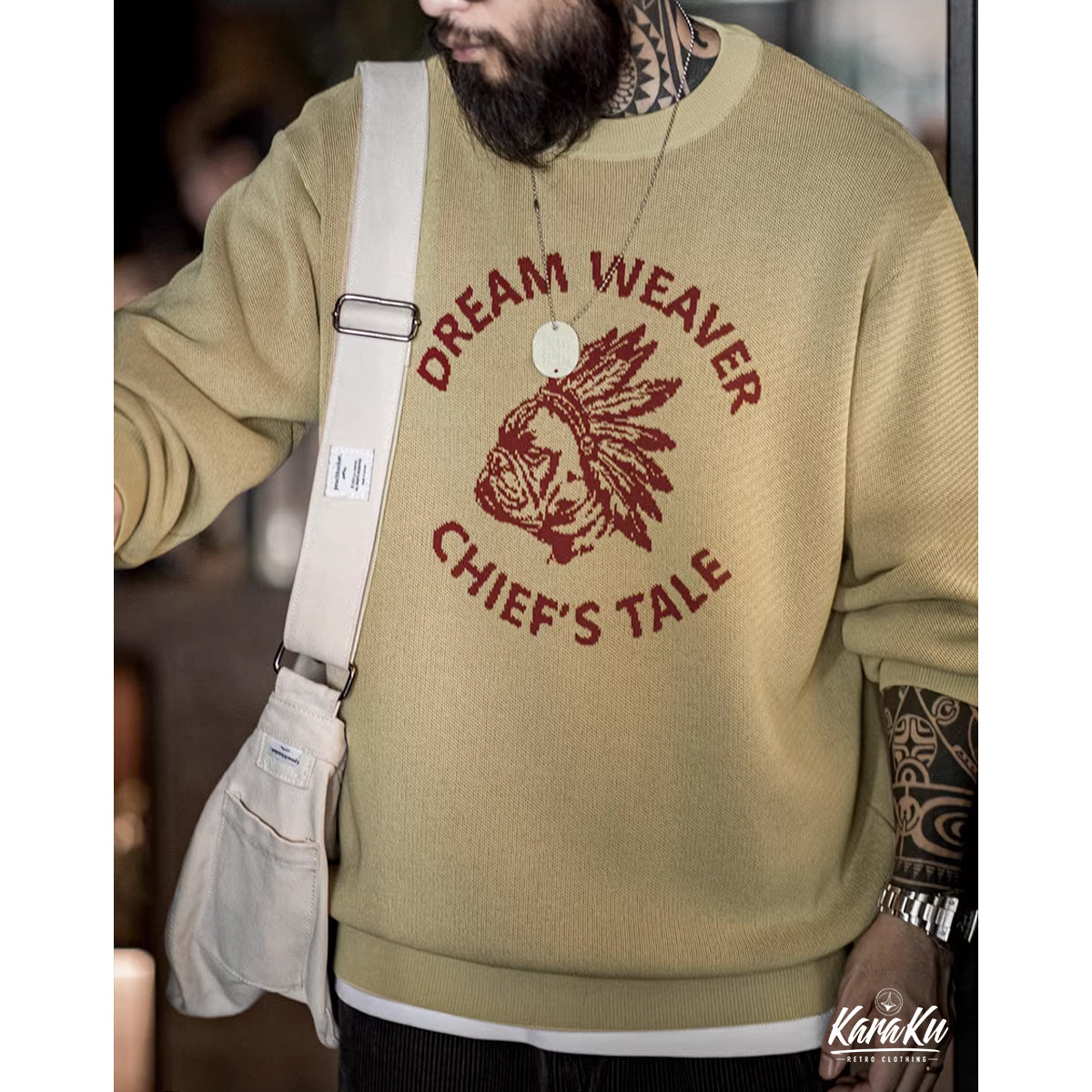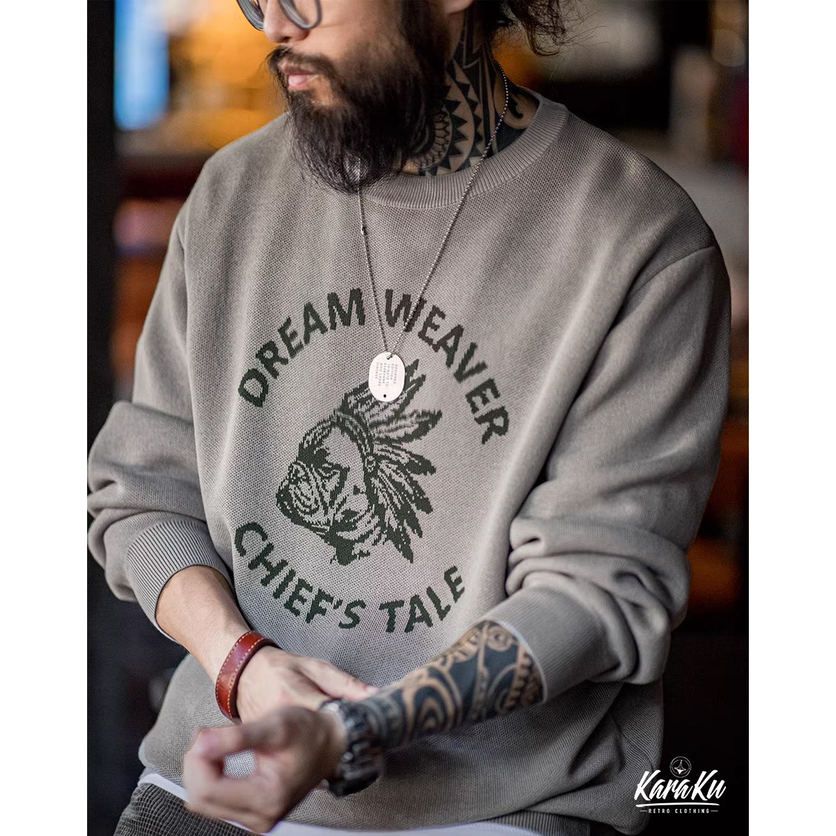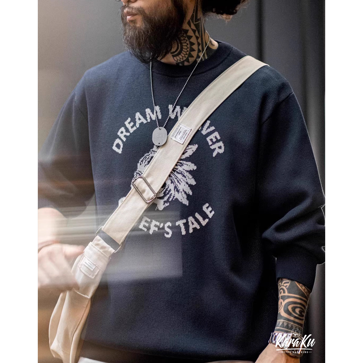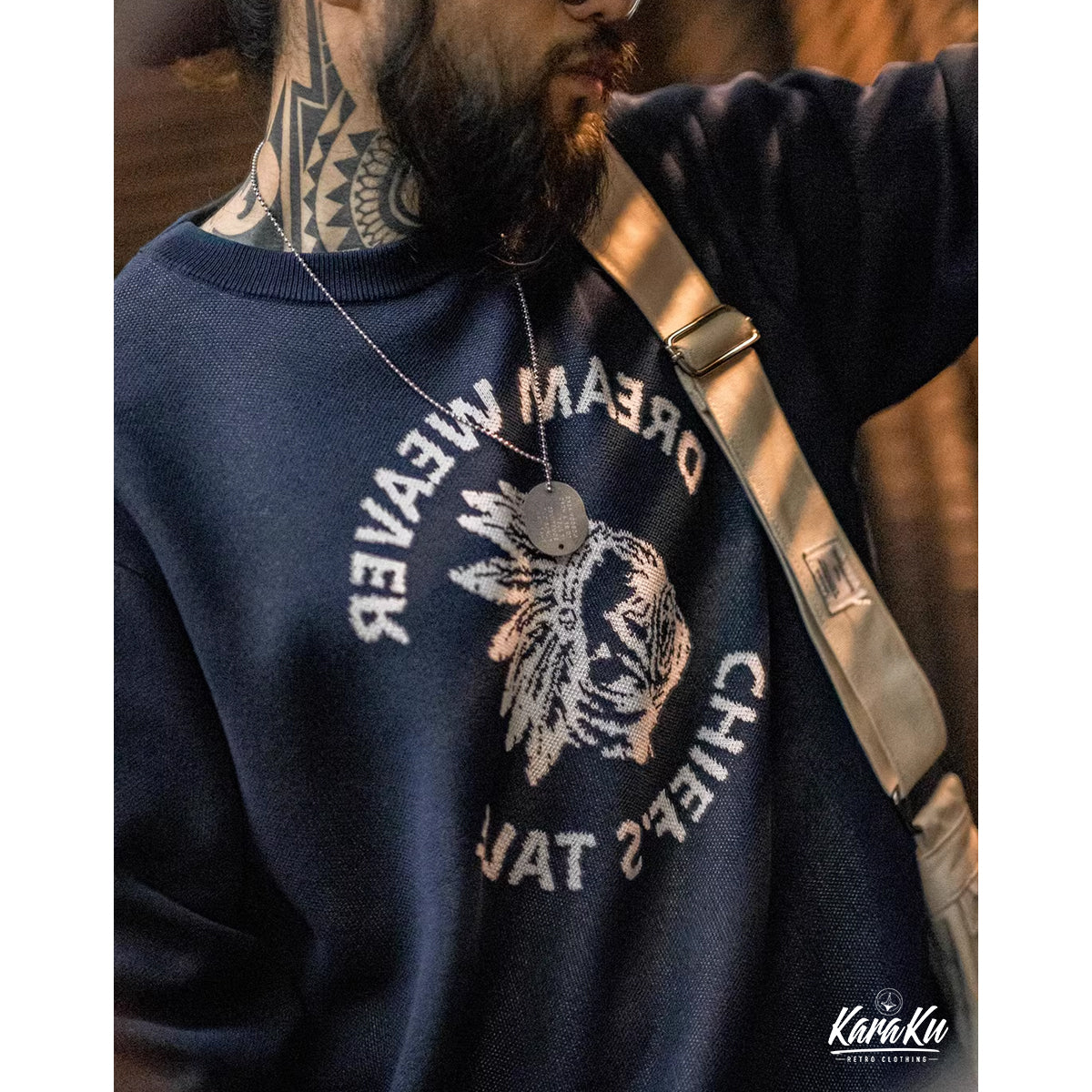 本アイテムは、勇敢さを象徴するフレンチブルドッグと自由を表現するチーフヘッドドレスのユニークな柄を取り入れており、視覚的なインパクトが強く、個性的なファッションスタイルを演出します。オーバーサイズのシルエットにドロップショルダーデザインを採用し、リラックスした着心地を提供。単独での着用だけでなく、レイヤードスタイルでも可能です。リブネックのデザインが首元をしっかりとサポートし、耐久性を高めています。また、柄はプリントではなくニット工法で作られているため、美しさと耐久性が長く保たれます。