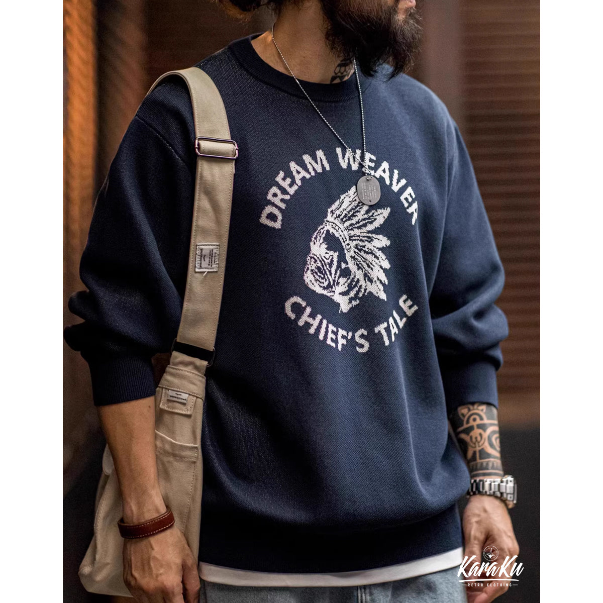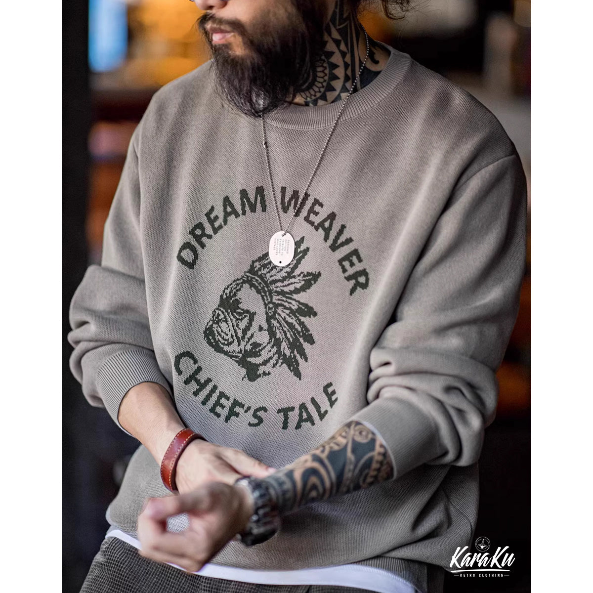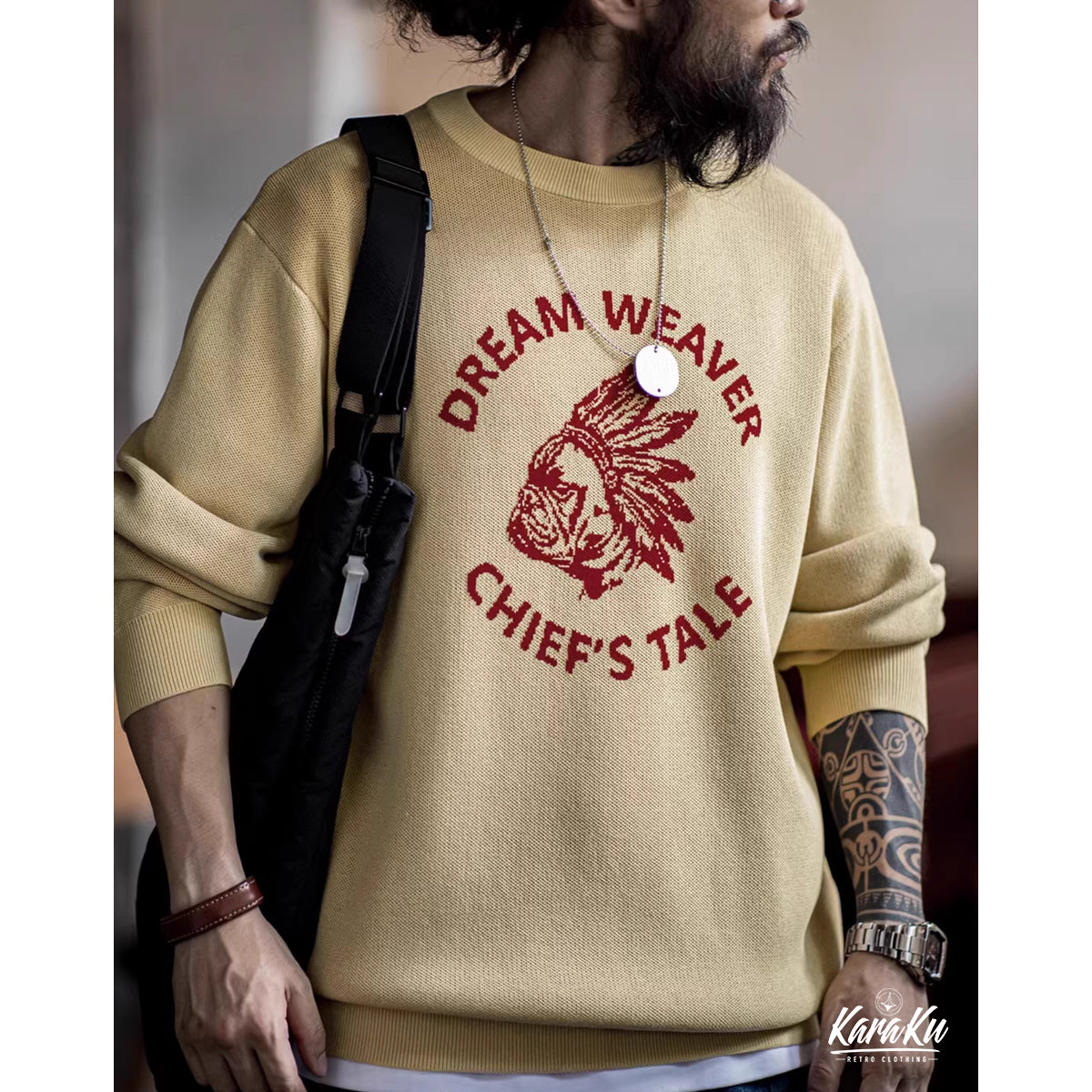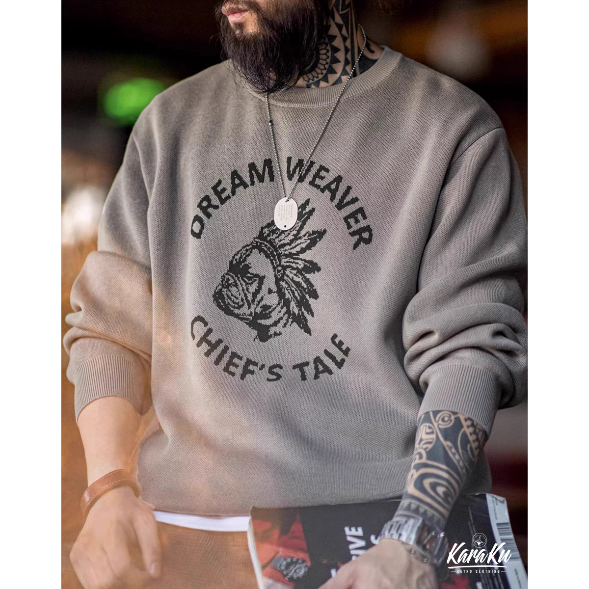 本アイテムは、勇敢さを象徴するフレンチブルドッグと自由を表現するチーフヘッドドレスのユニークな柄を取り入れており、視覚的なインパクトが強く、個性的なファッションスタイルを演出します。オーバーサイズのシルエットにドロップショルダーデザインを採用し、リラックスした着心地を提供。単独での着用だけでなく、レイヤードスタイルでも可能です。リブネックのデザインが首元をしっかりとサポートし、耐久性を高めています。また、柄はプリントではなくニット工法で作られているため、美しさと耐久性が長く保たれます。