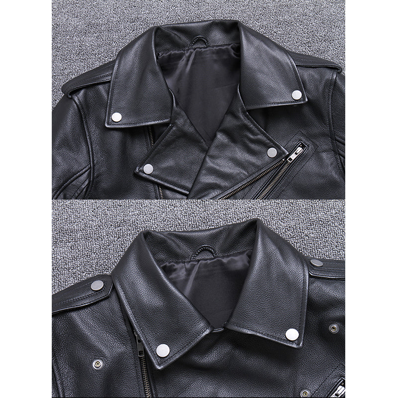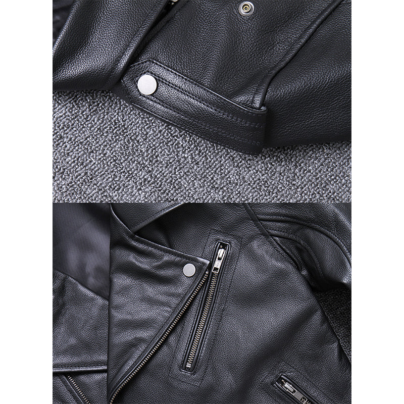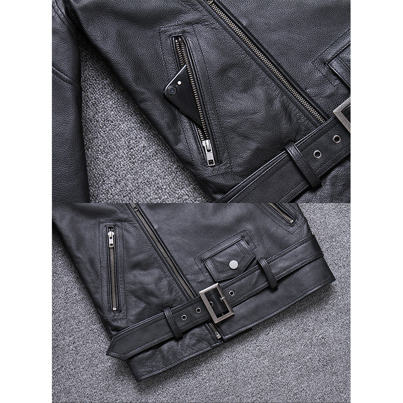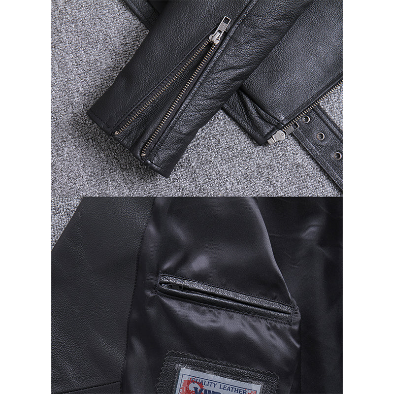 上品な本革(牛革)を使用したこちらのダブルタイプレザージャケットは、程よいサイズ感のありシルエットがと短い丈でテキパキとして、無骨な男らしさとバイカースタイルを演出しています。本革の素材特徴により、着れば着るほどに雰囲気が増すことも楽しめます。