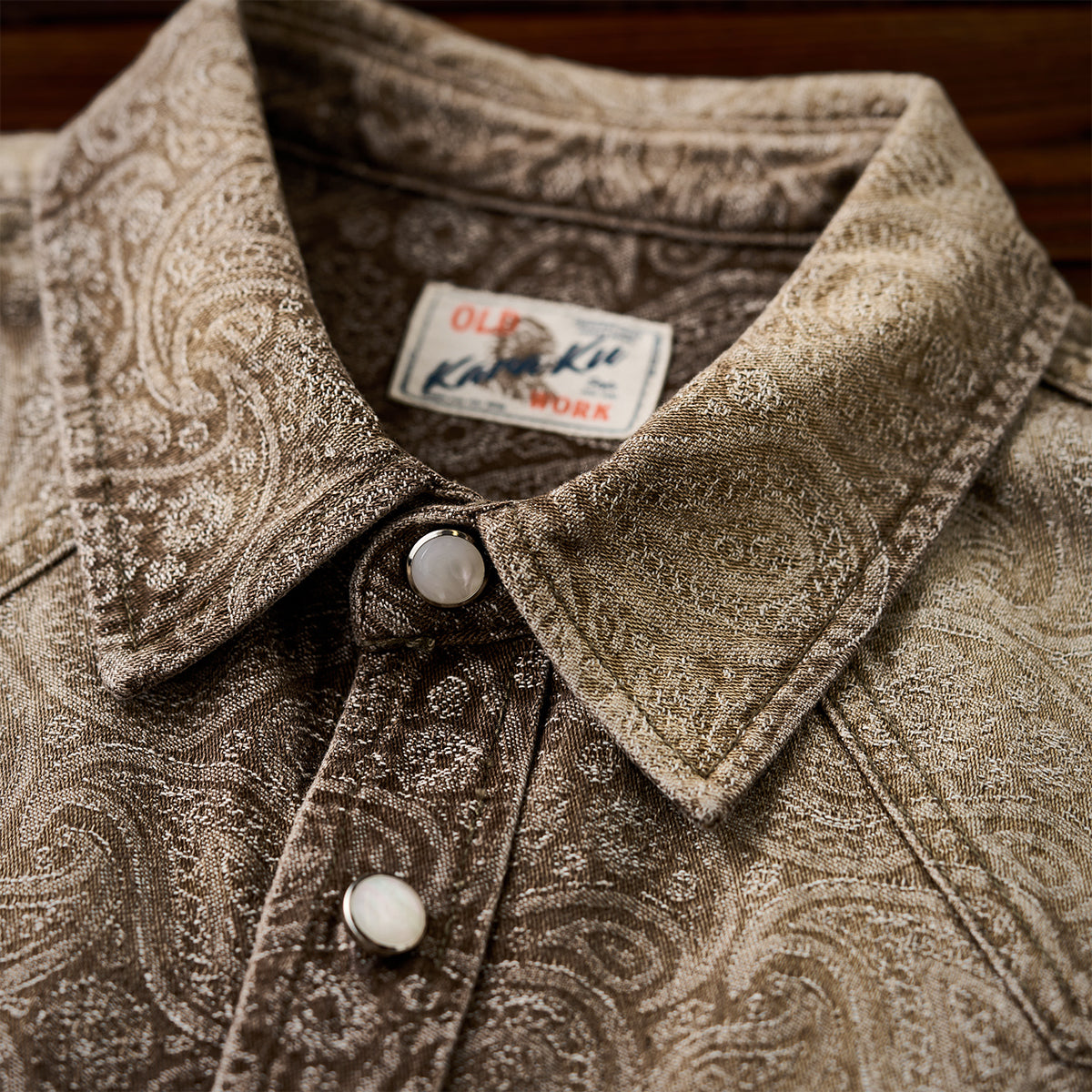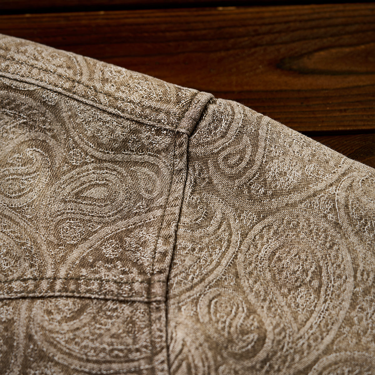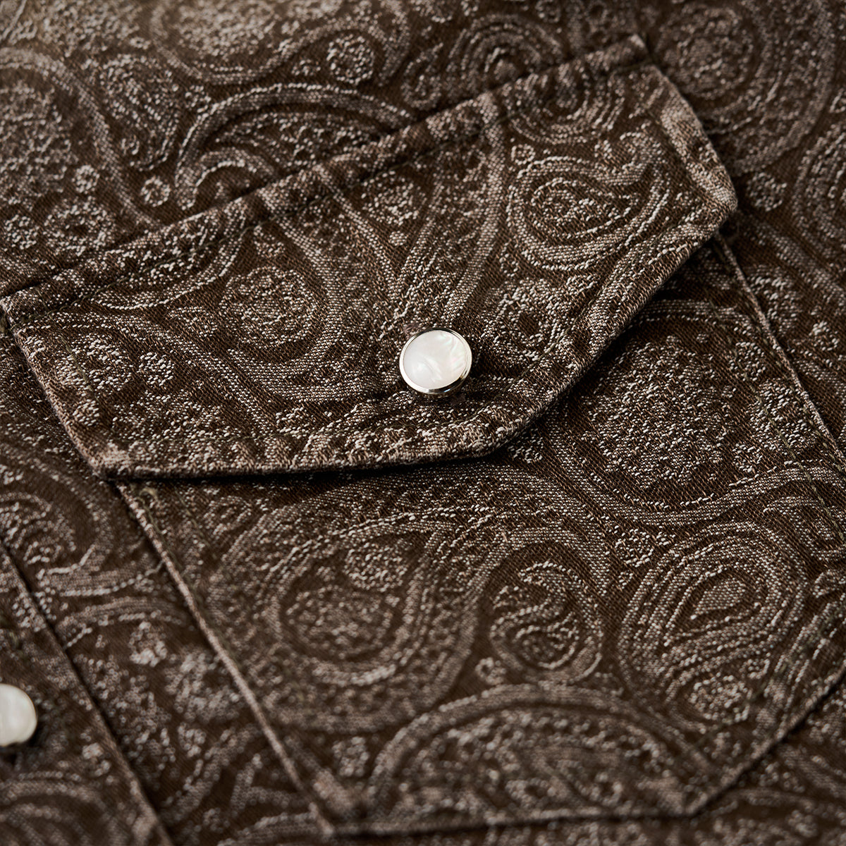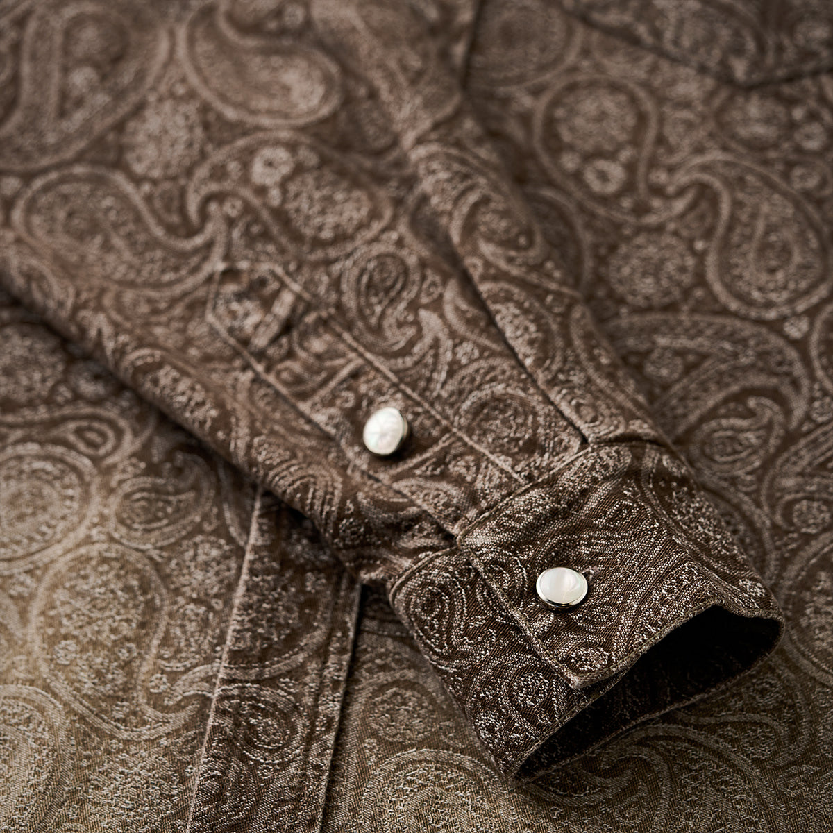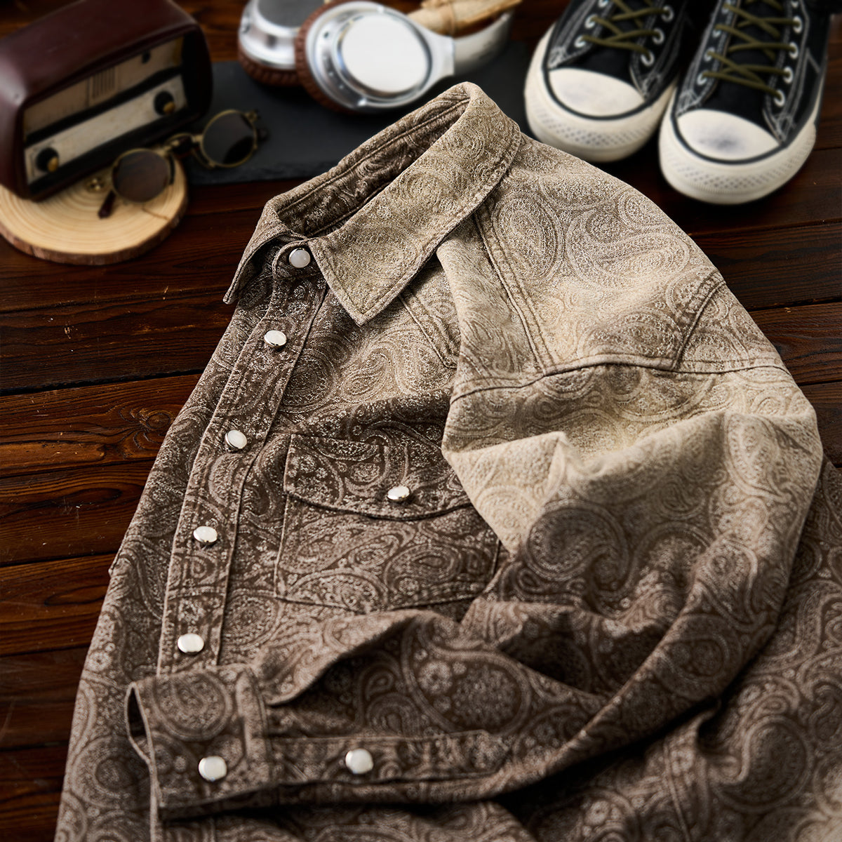 パール調ボタン付き グラデーションペイズリー柄デニムワークシャツ