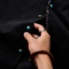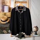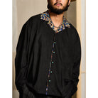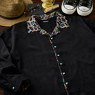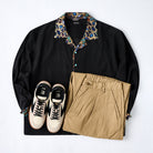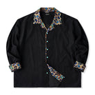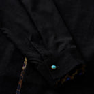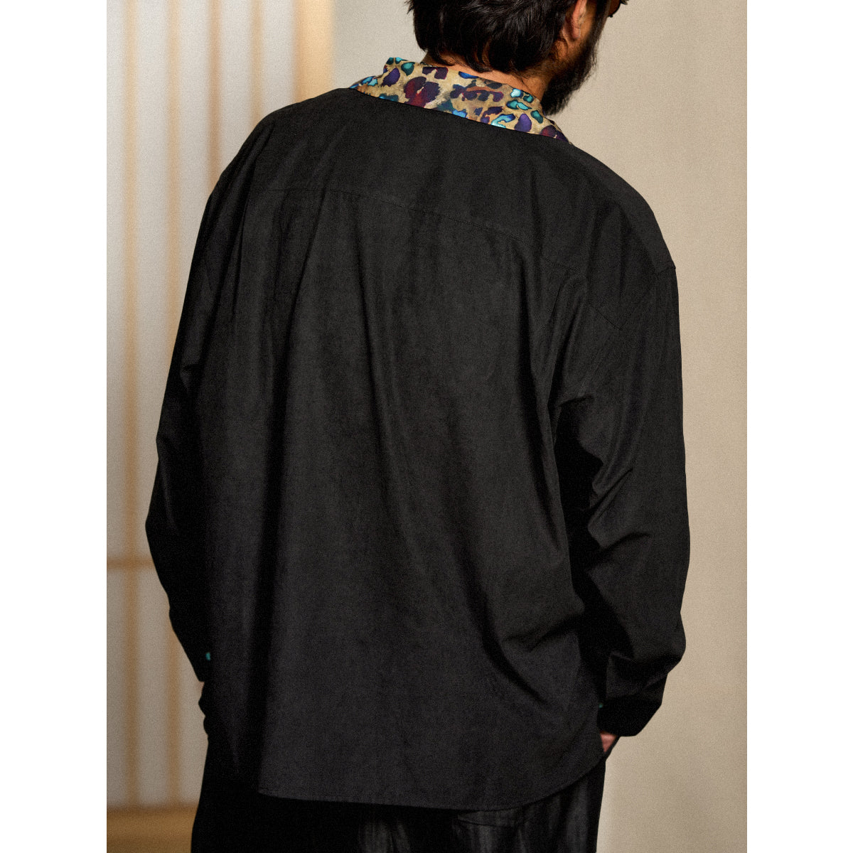 アートとファッションが融合した一着です。川又聡の「夢豹」シリーズからインスパイアされた、幻想的で力強い豹柄プリントがフロントとバックに施され、視覚的なインパクトを与えます。プリント部分は切替デザインで、モダンで洗練された雰囲気を醸し出しています。ターコイズ調のボタンがアクセントとなり、リッチな印象をプラスしています。シンプルなシルエットに大胆なプリントが映えるこのシャツは、カジュアルから少しオシャレなコーディネートまで幅広く活躍できるアイテムです。