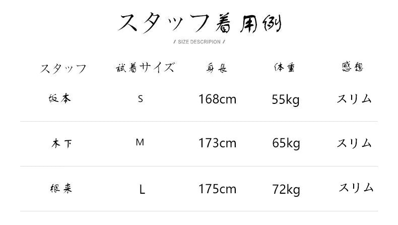 *サイズ表は、製品の生地や織りなどの特性により、多少の誤差はございます。予めご了承ください。
