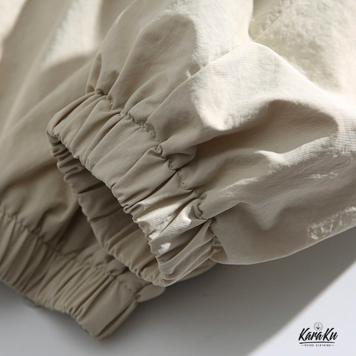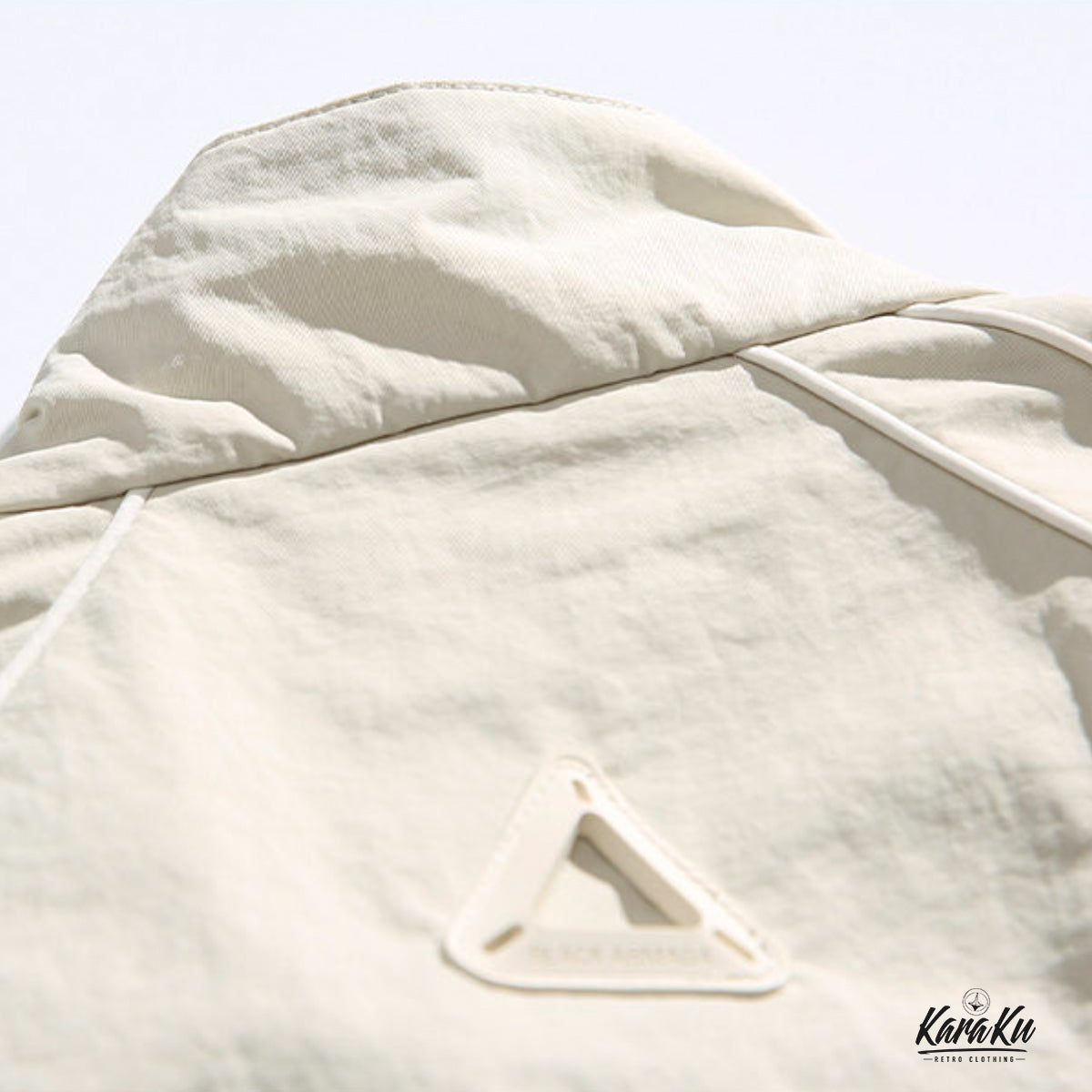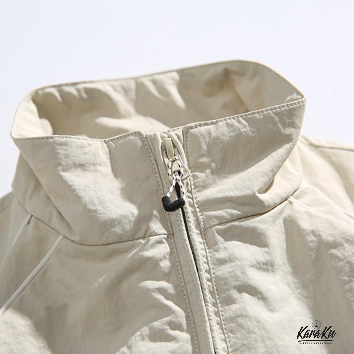 ダブルジップを配置され、上下どちらからでも開けられるため、通気性を調整したり、動きを自由にしたりできる。