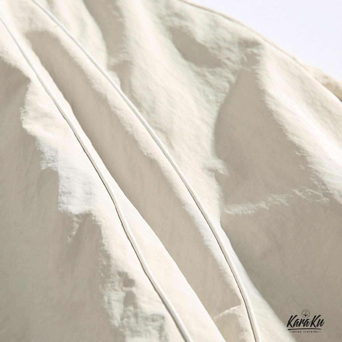 サラッとしていてスベスベな、気持ち良すぎる肌触りのナイロン生地をメイン使用、湿気を放散しやすく速乾性に優れていたりと、男らしらと自分らしさが兼ね備えて、大人の個性を出すアイテムとなっている。