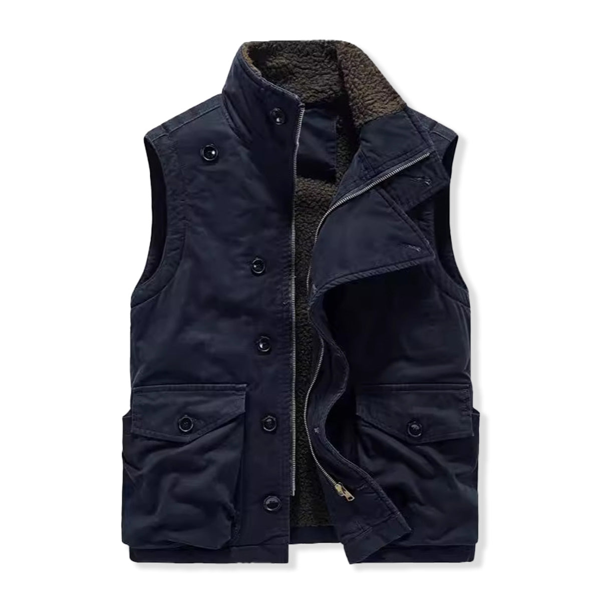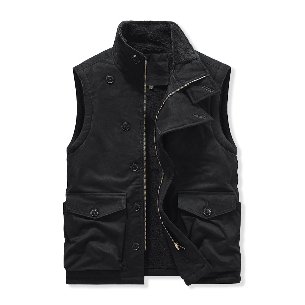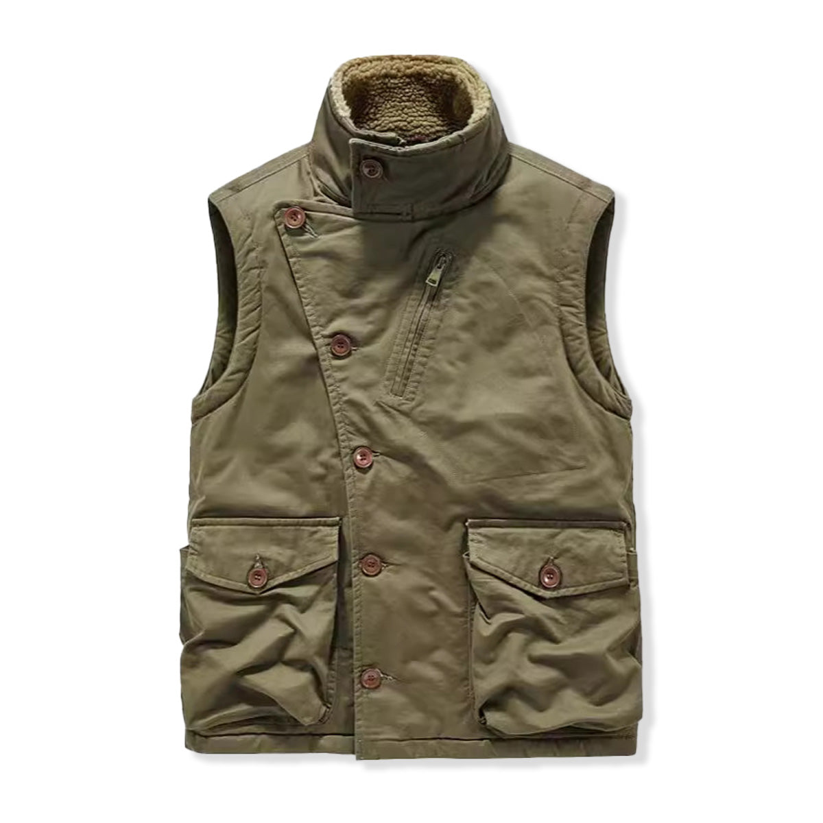 斜め前立て ジップ&ボタン付き裏ボアスタンドカラーベスト