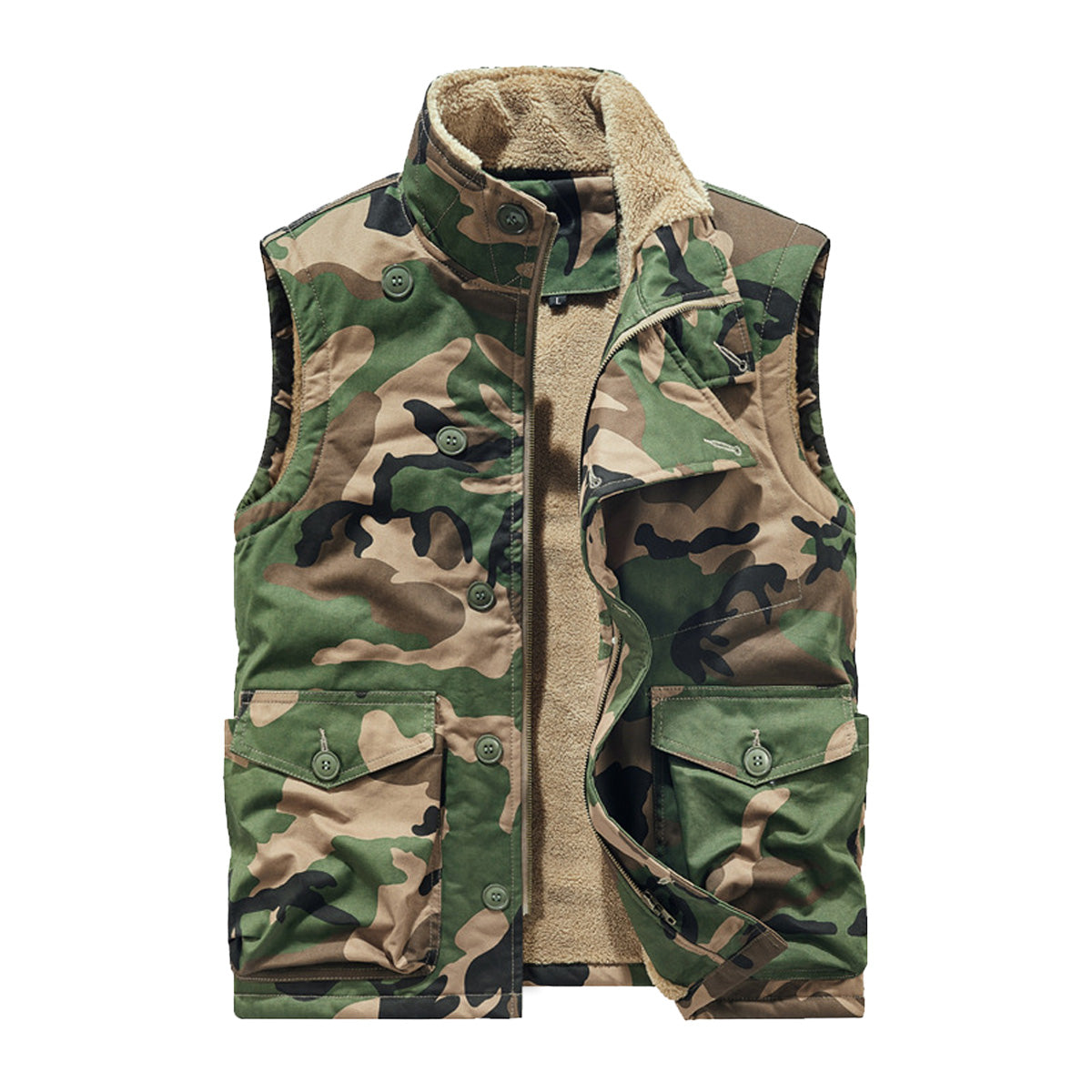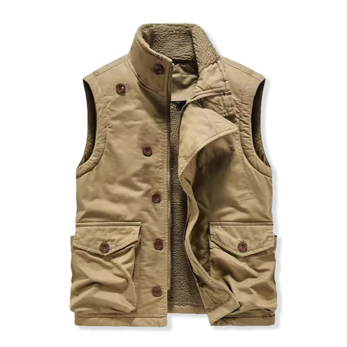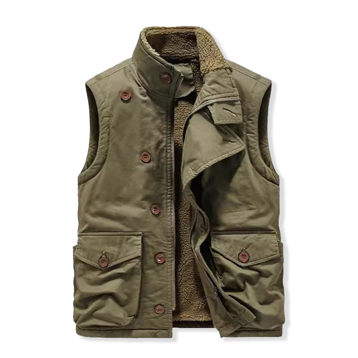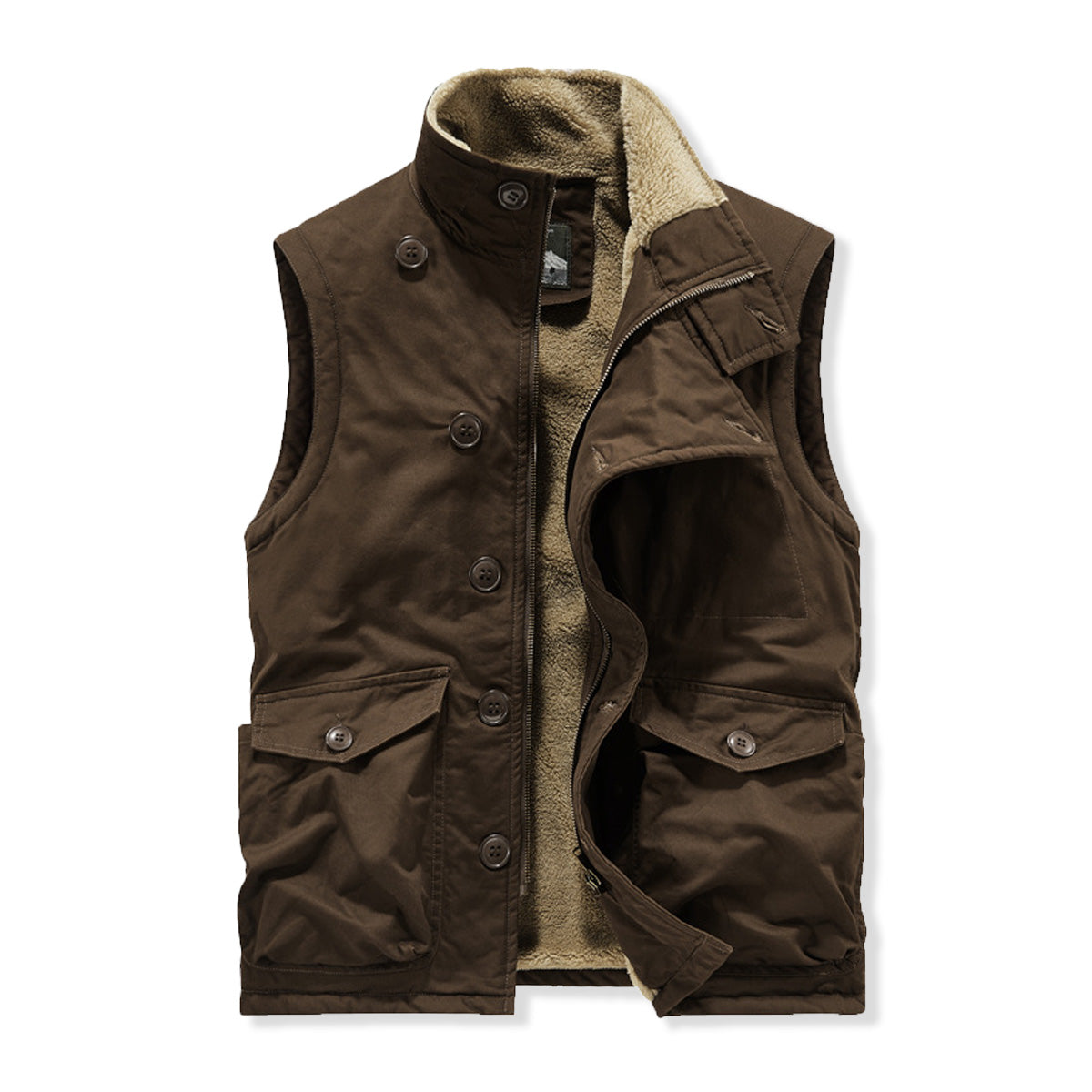 斜め前立て ジップ&ボタン付き裏ボアスタンドカラーベスト