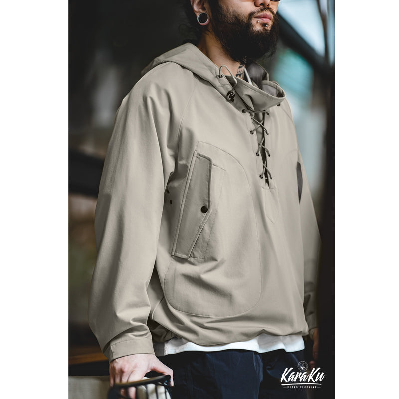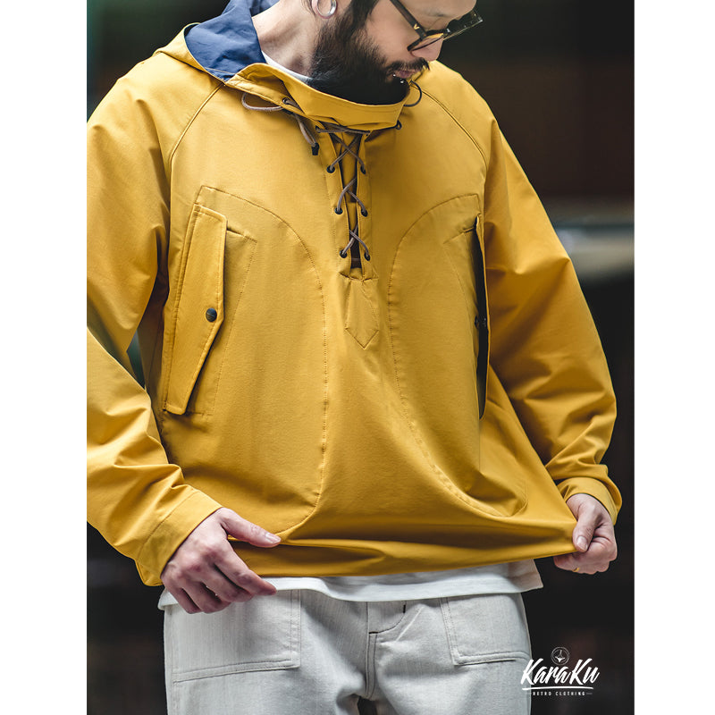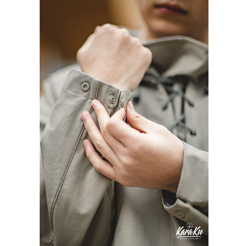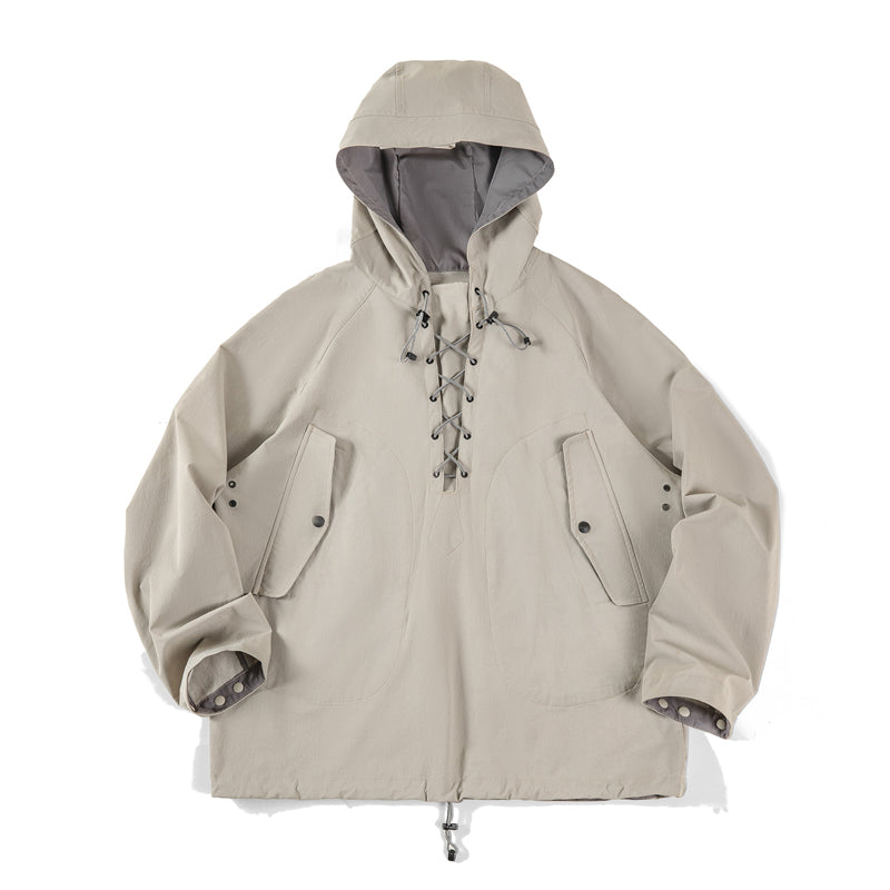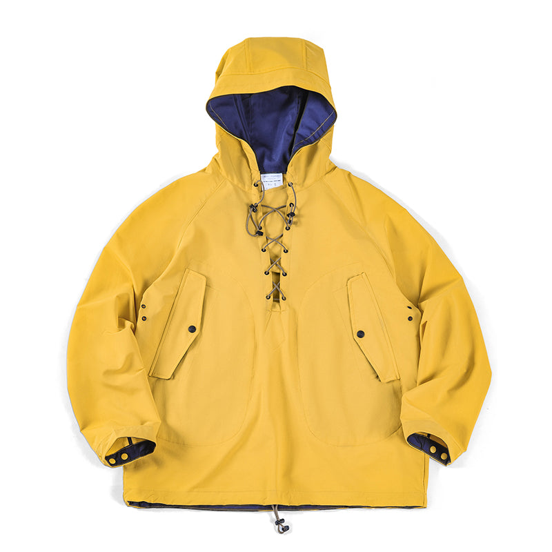 デッキレインパーカーのシルエットと襟のデザインを踏襲し、また細部にいくつの楽しみポイントを入れさせた。