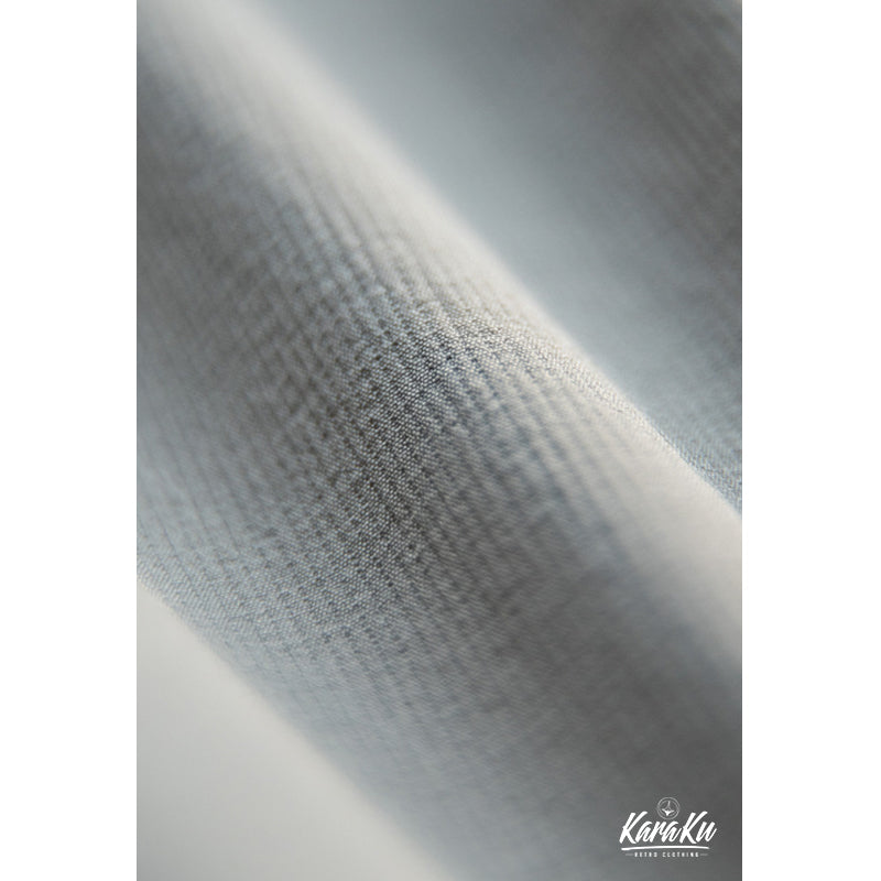 ナイロンをメイン使用し、湿気を放散しやすく速乾性に優れている、シワになりにくく扱いやすいのが特徴。また縦糸にスパンデックスを用いる事により、程よい伸縮性を実現。仕上げた服をウォッシュ加工され、手触りは柔らかくて快適。