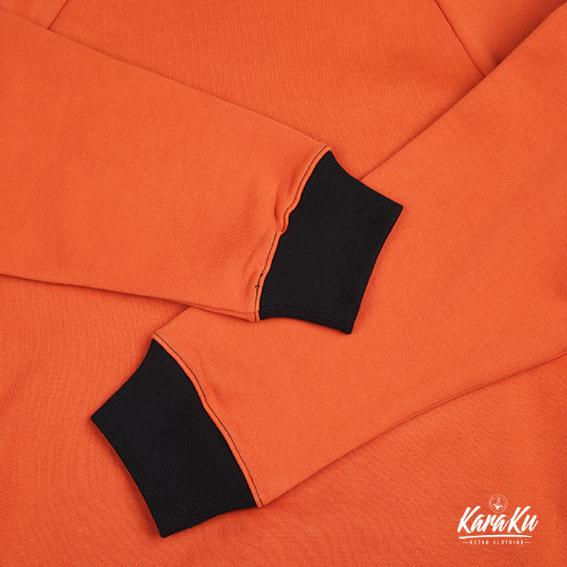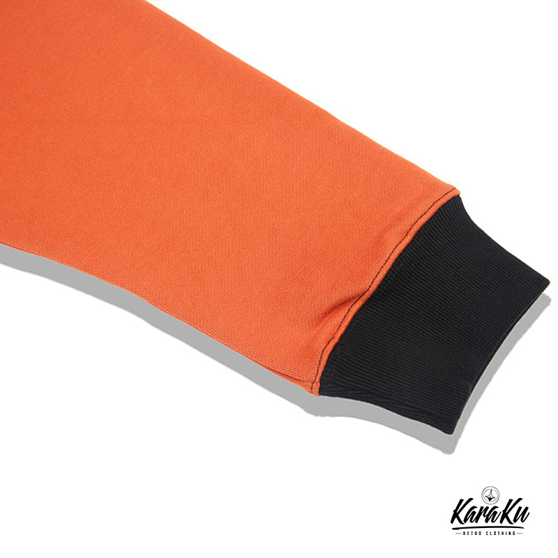 襟、裾周りと袖口はリブ編みで立ち上がり、動かしやすく、スポーティな雰囲気をプラス。