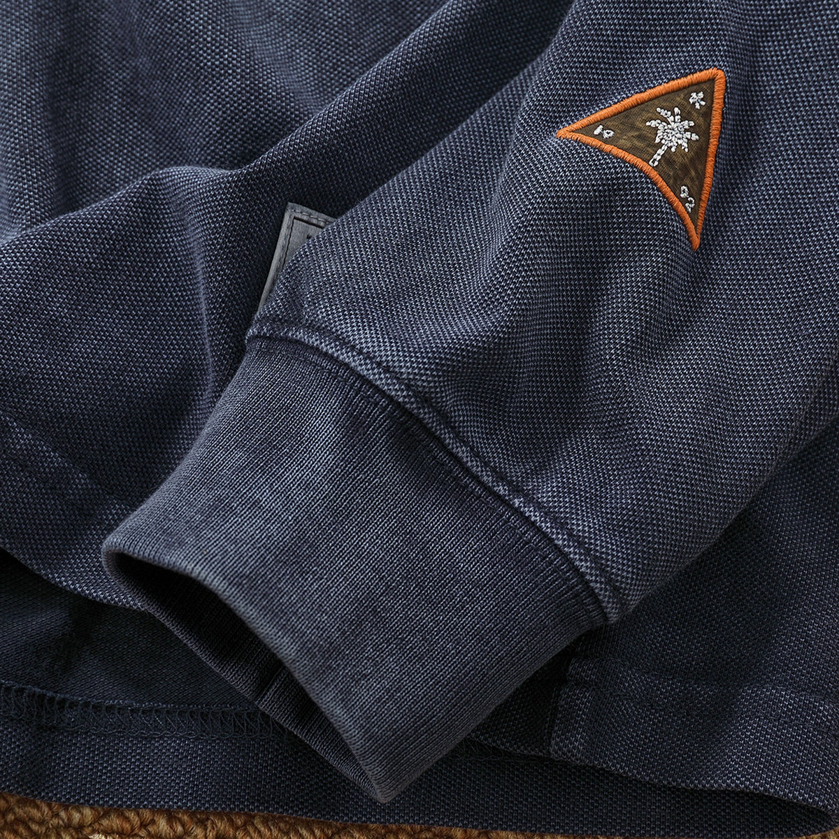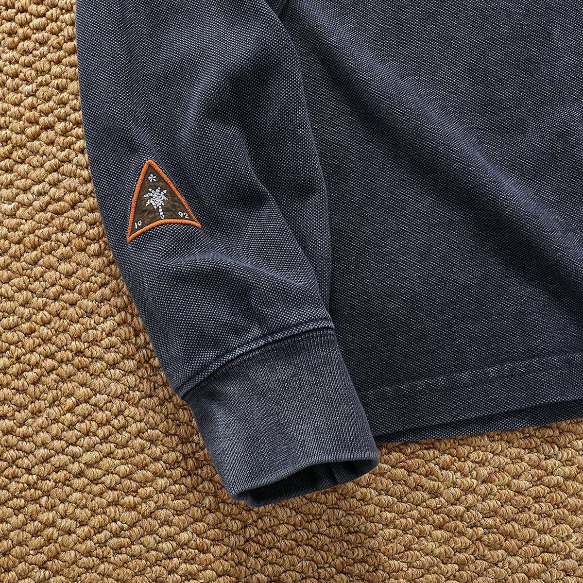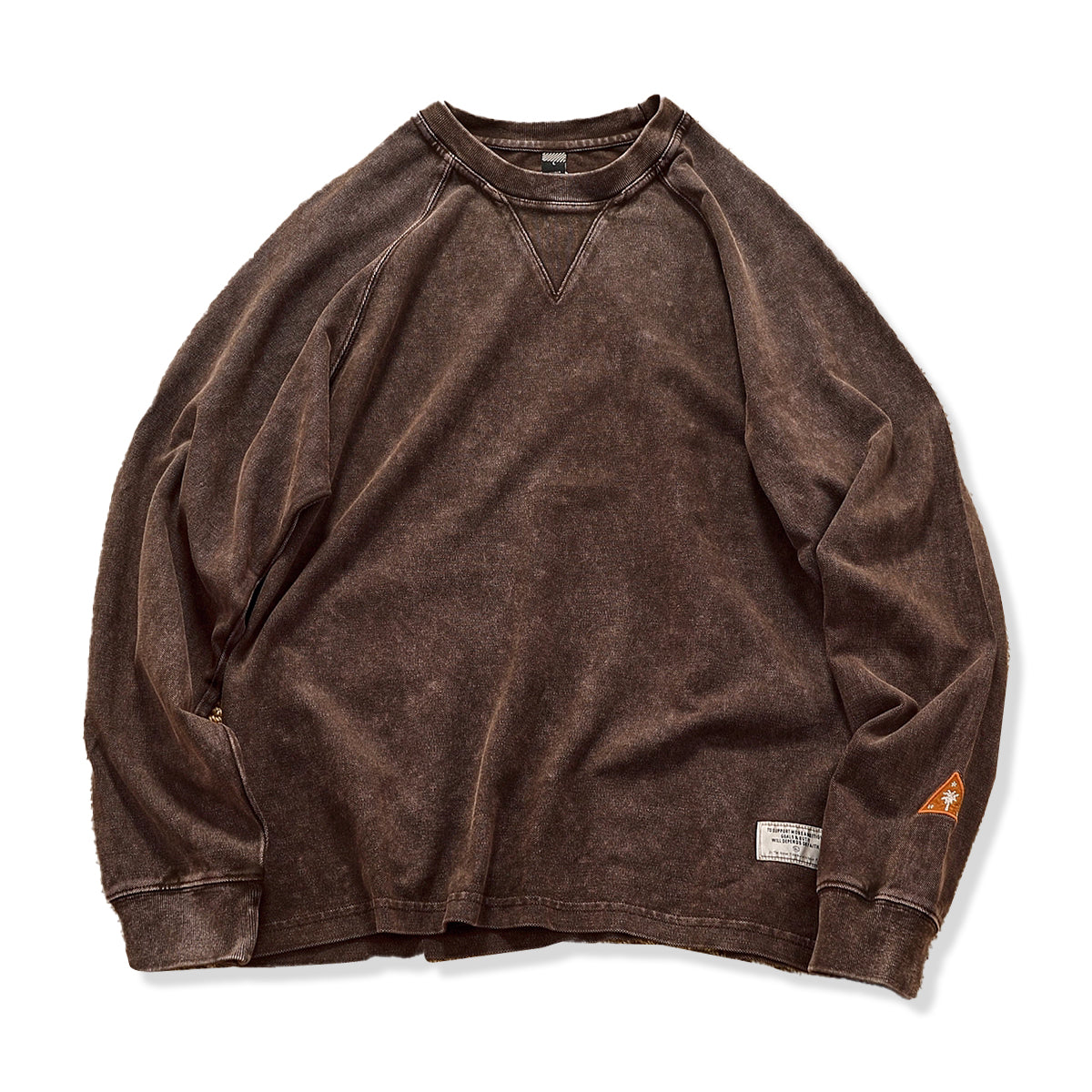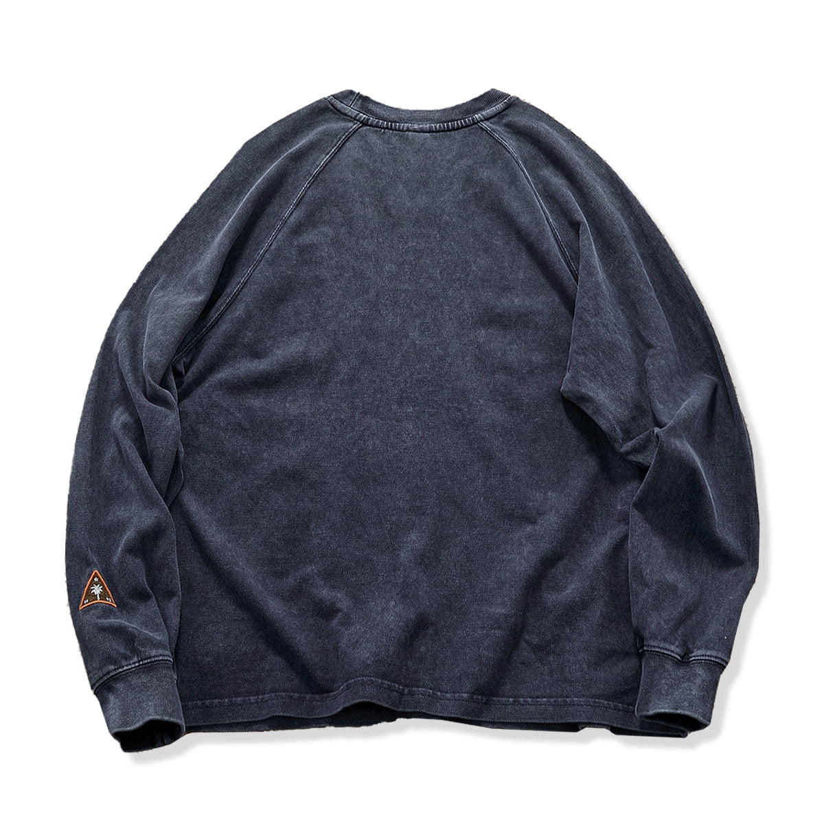 袖「ヤツの木」刺繍ワッペン ピグメント加工Vガゼットスウェット