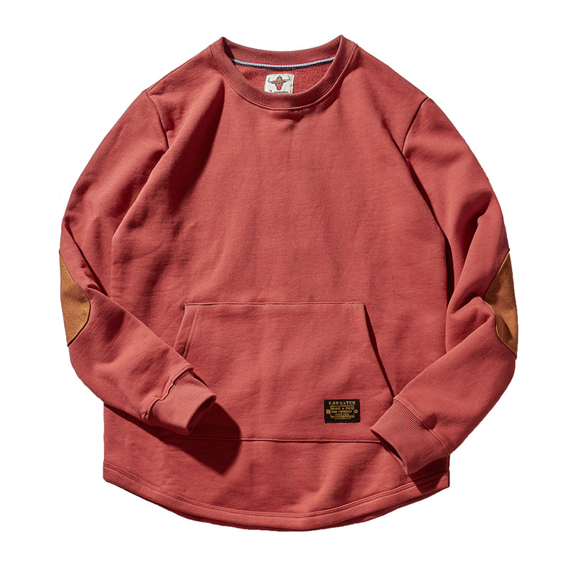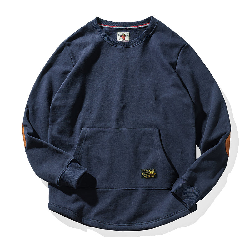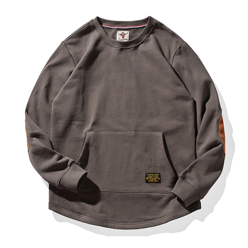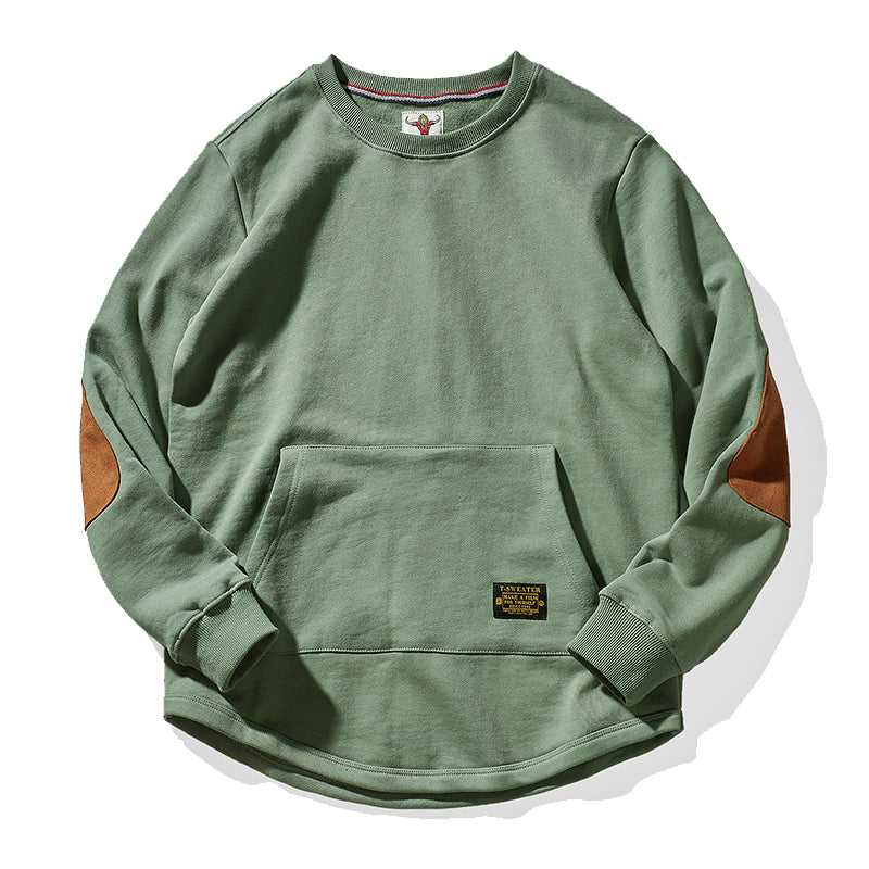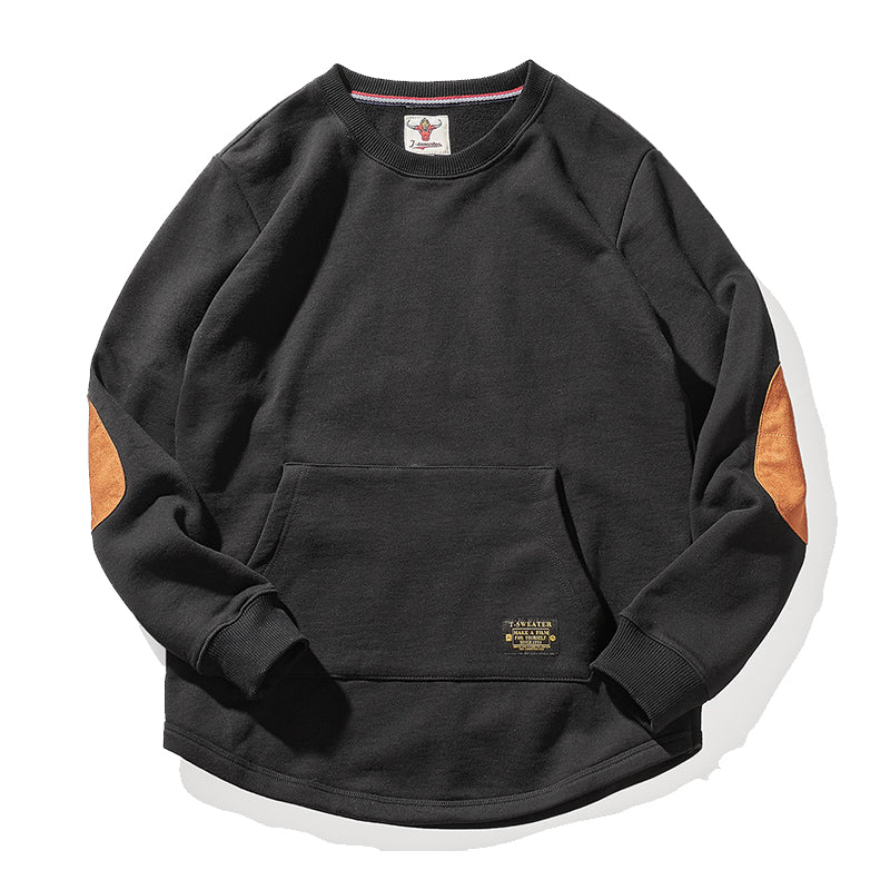 肘スエードパッチ 裏パイル地ヘビーウエイトクルーネックスウェット