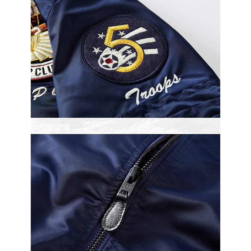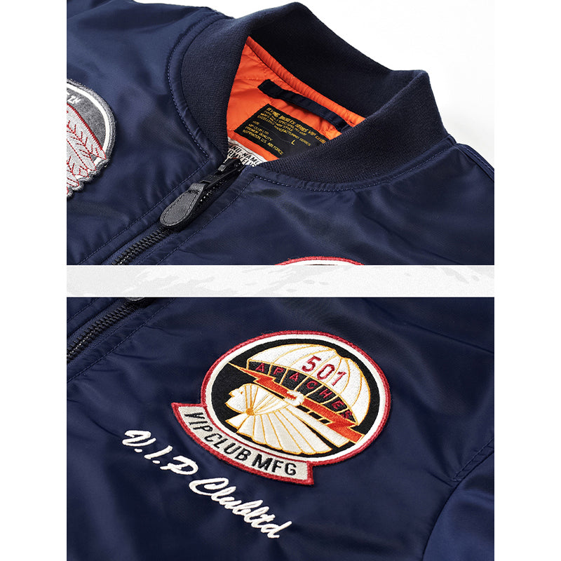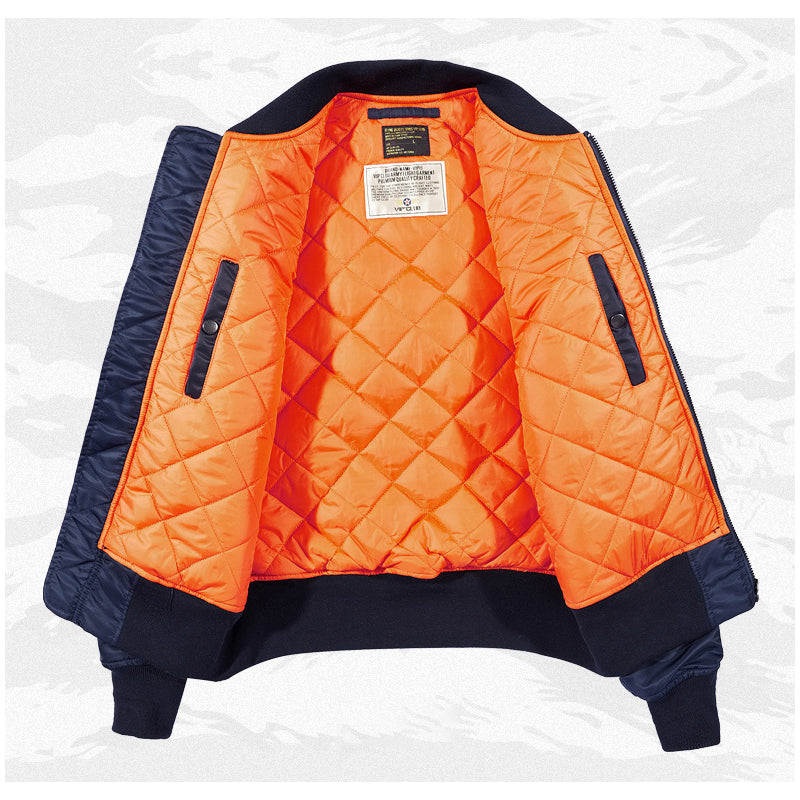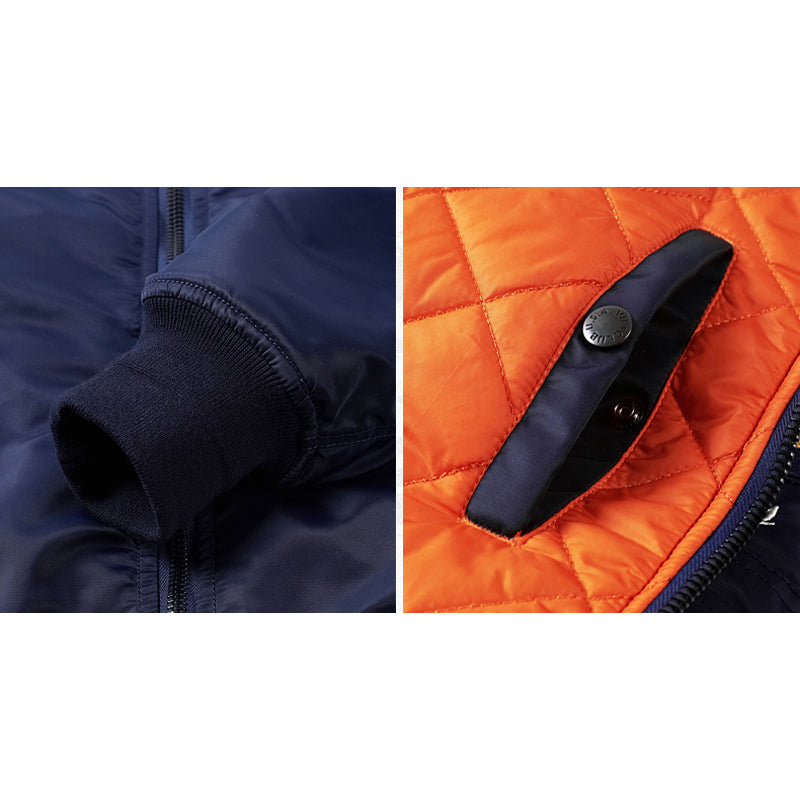 「MA-1」とは1950年代頃に開発されたアメリカ空軍用のアウターのこと。リバーシブル仕様のモデルが多く、裏地はレスキューカラーであるオレンジが基本です。裏地のオレンジは、戦闘機から脱出したパイロットがオレンジ色を表にして着用することでレスキュー部隊に発見されやすいように開発された実用的なディテールでレスキューオレンジと呼ばれている。素材にはナイロンを用いており、狭いコックピットでも動きやすいようシンプルなデザインに仕上がっています。