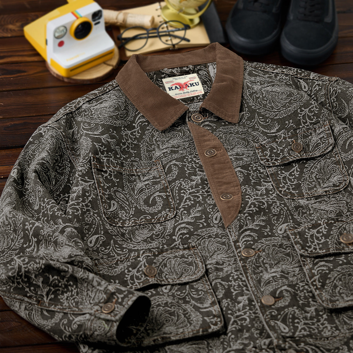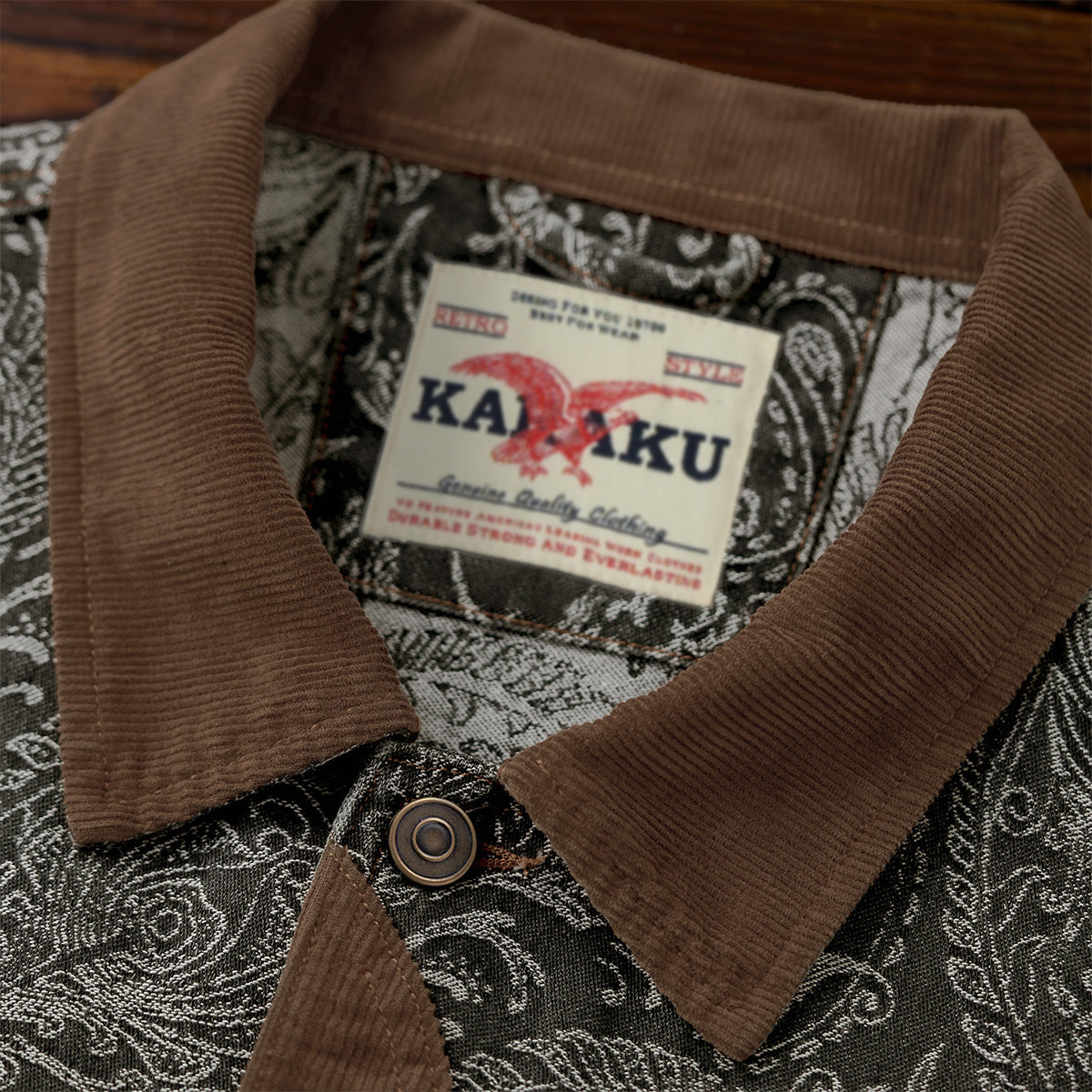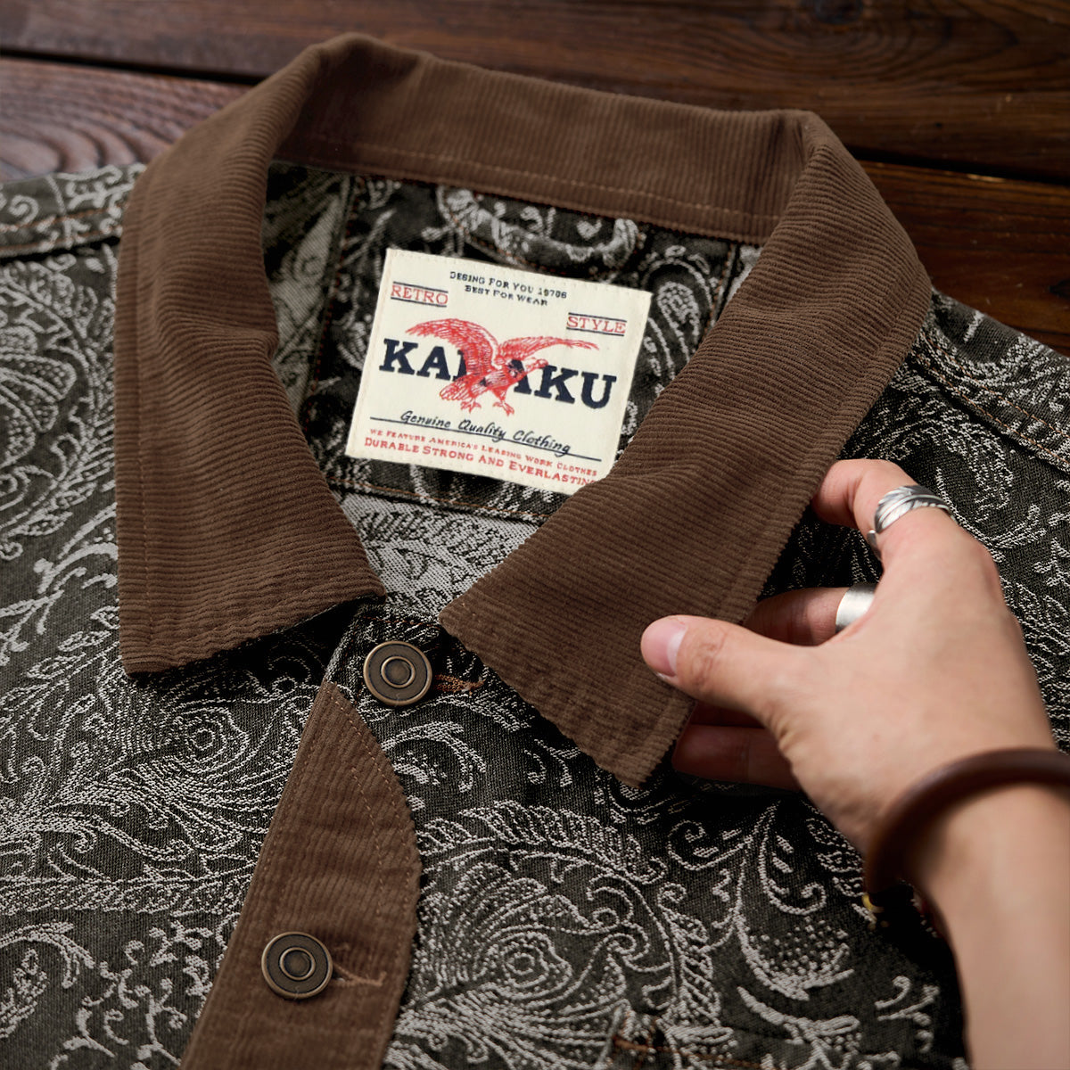 コーデュロイ切替 ペイズリー総柄ジャガード織りデニムジャケット