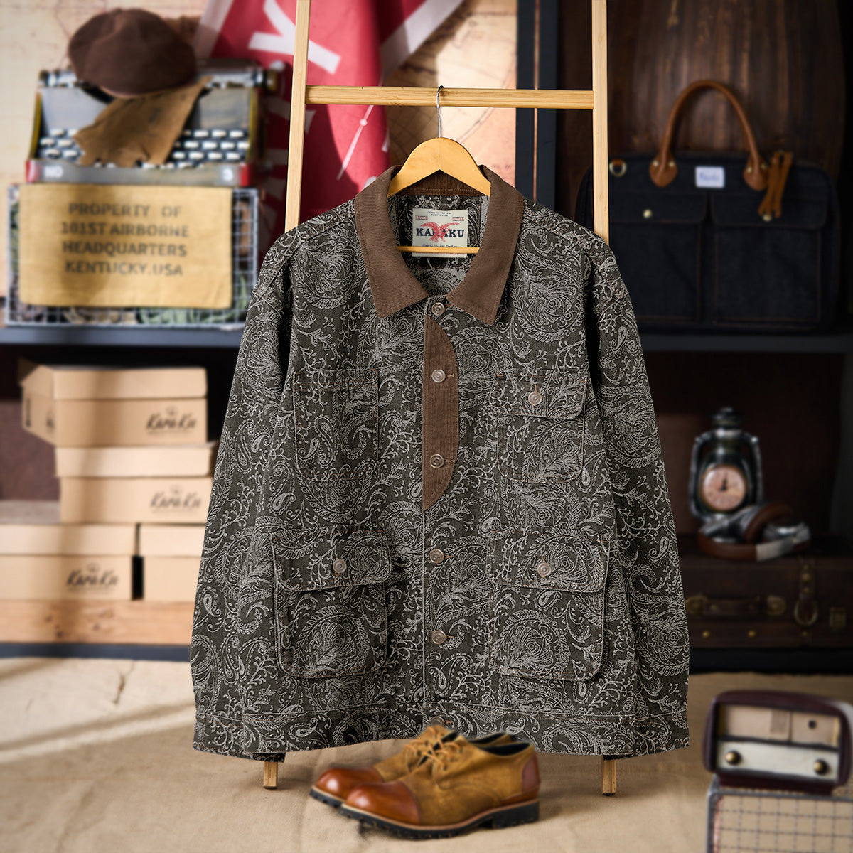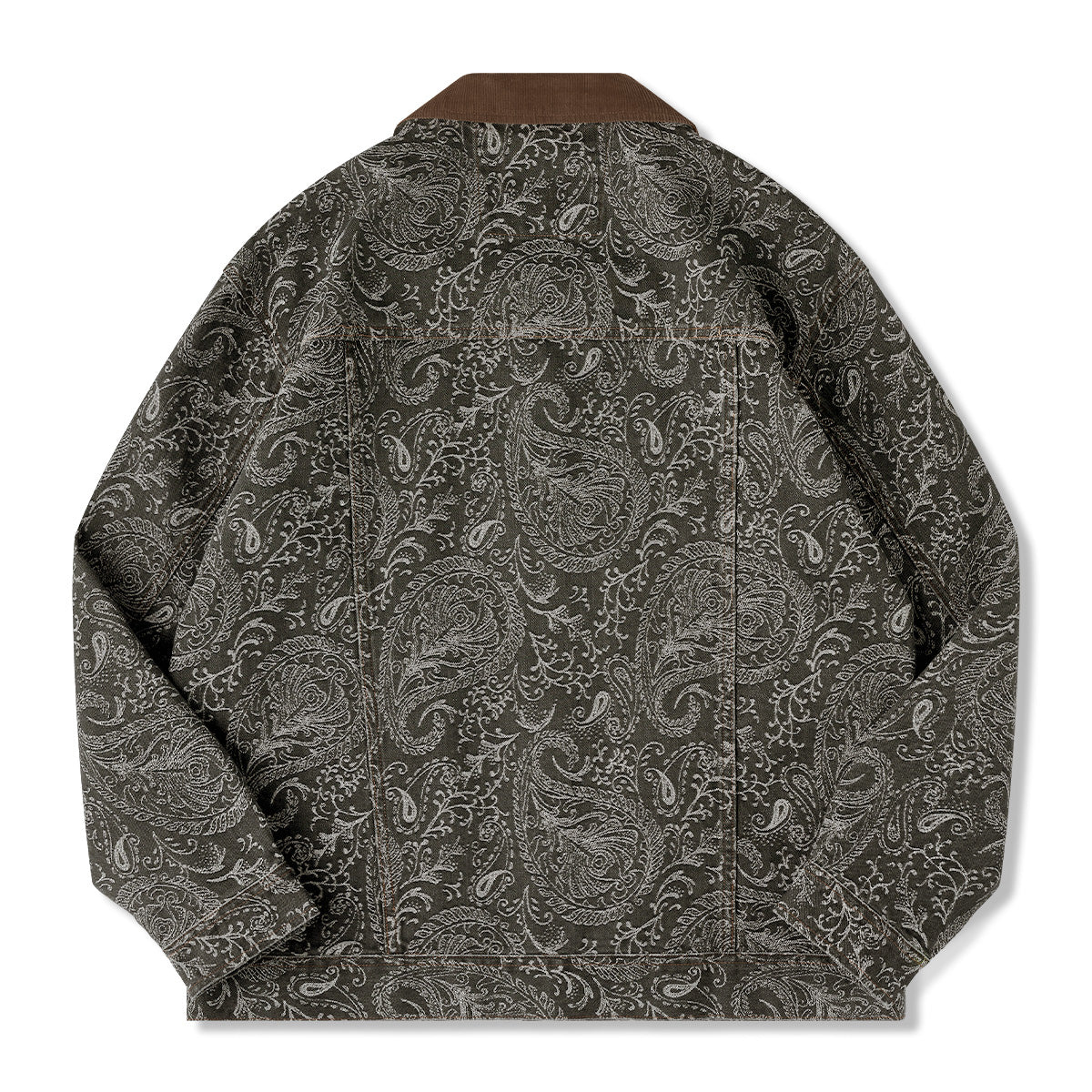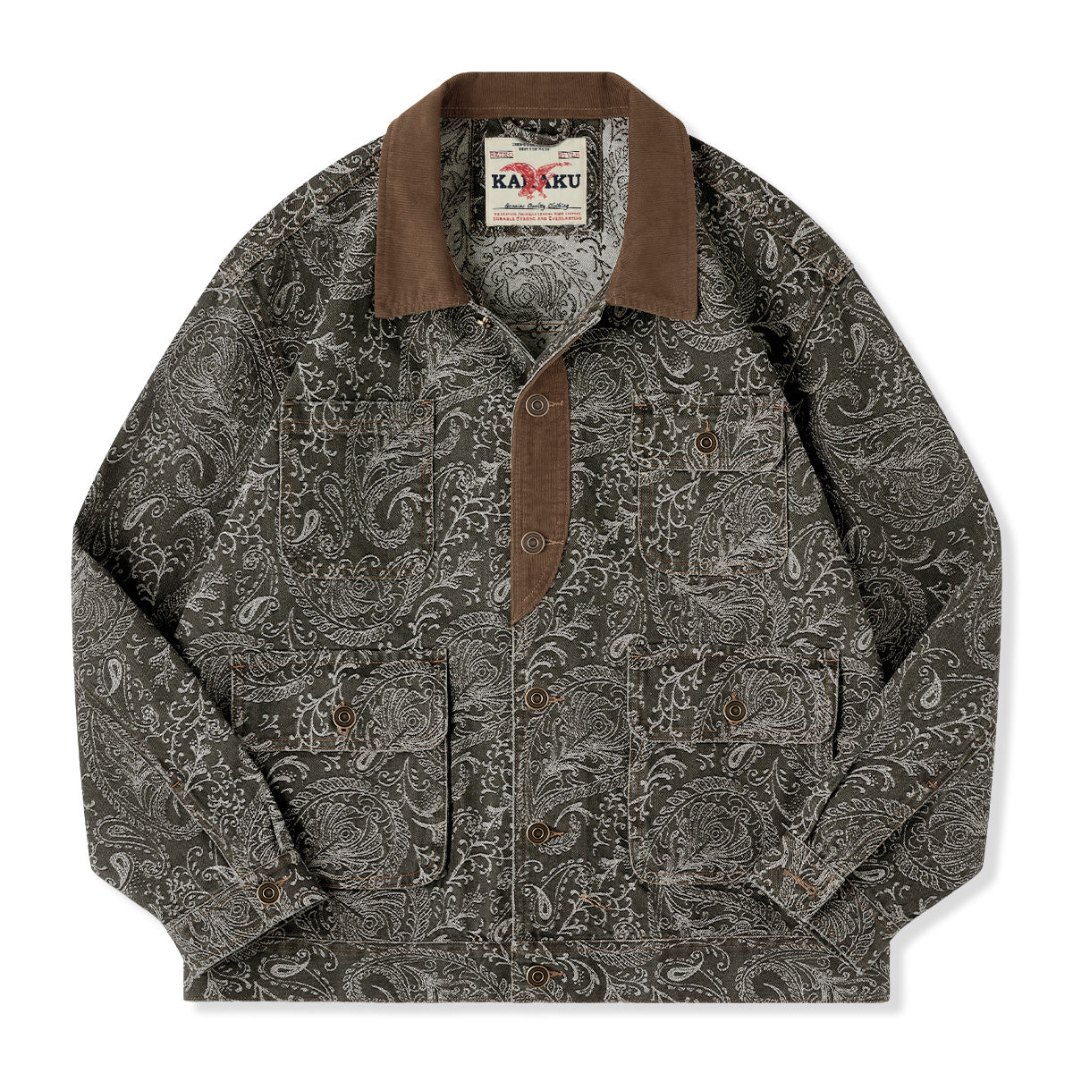 コーデュロイ切替 ペイズリー総柄ジャガード織りデニムジャケット
