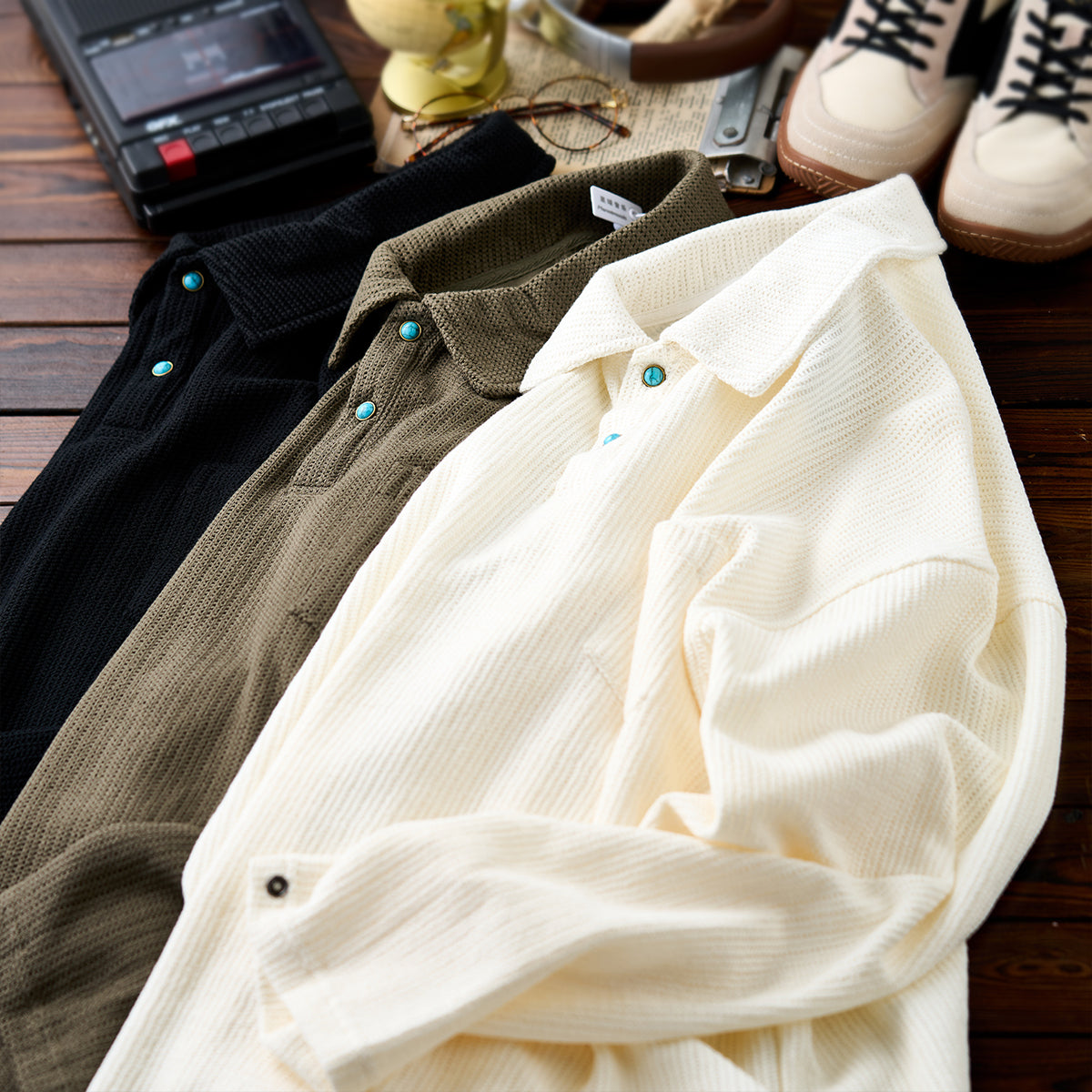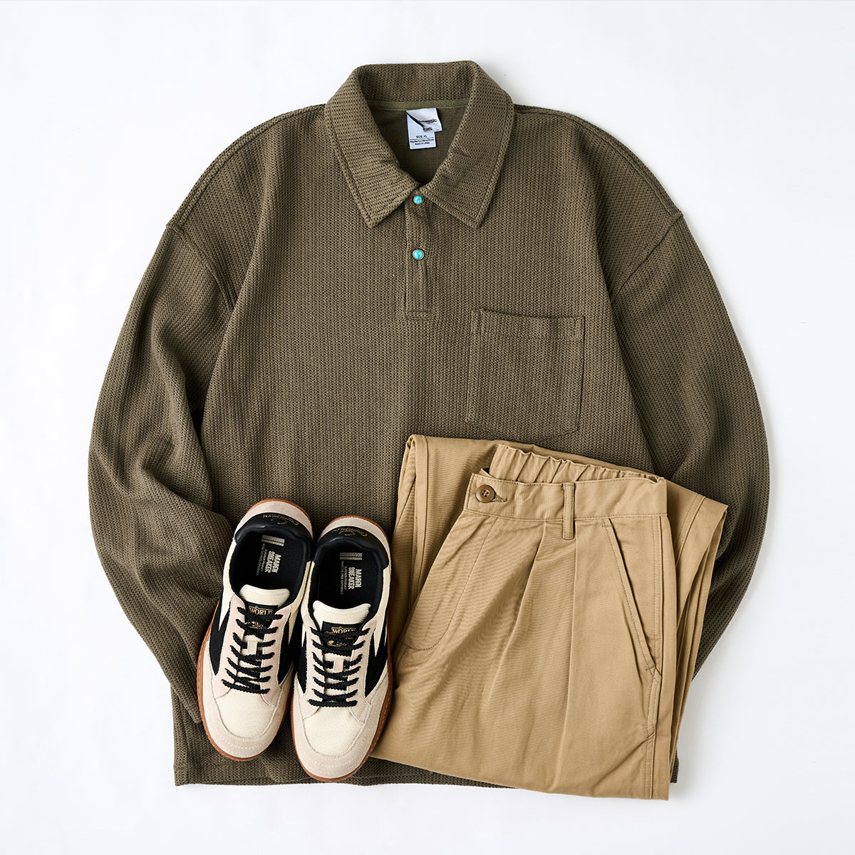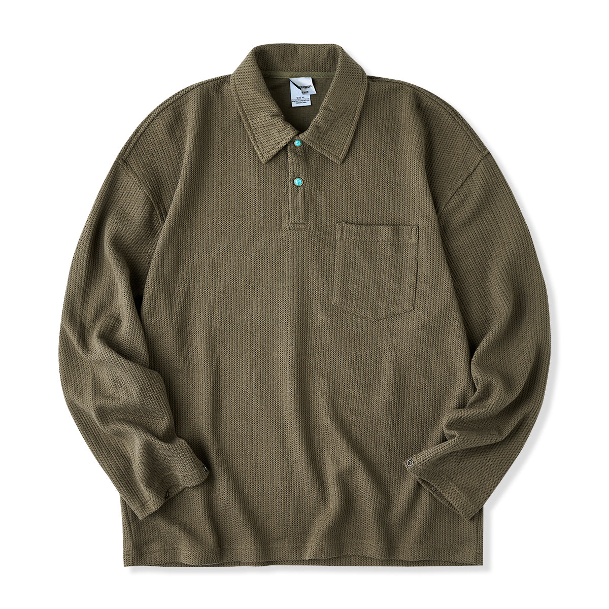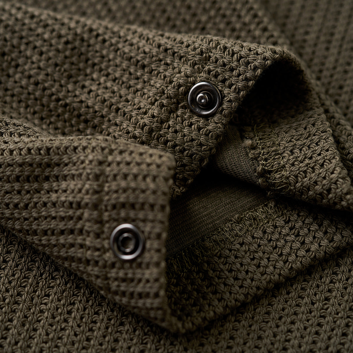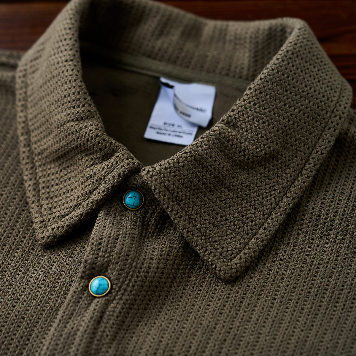 ニットのような立体感ある編み地を再現したポロシャツ。上品さとリラックス感を兼ね備え、季節を問わずスタイリングを格上げしてくれます。前立てにはターコイズ調ボタンを2つ配し、胸元には実用的なポケットを備えることで、デザイン性と機能性を両立。ベーシックながらもさりげなく個性を主張する仕上がりです。3色展開で幅広い着こなしに対応でき、ジャケットのインナーとしても、一枚でさらりと着こなしても映える一着。柔らかな風合いと優れた通気性により、快適な着心地を長くお楽しみいただけます。