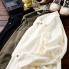 ベージュのチノパンと合わせて上品なカジュアルスタイルに。足元はローファーを選べば、落ち着いた大人の休日コーデが完成。