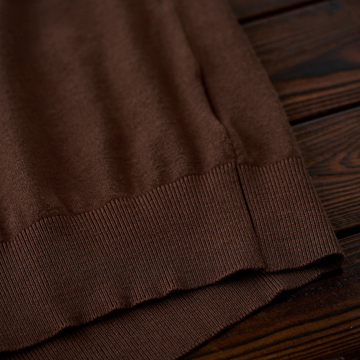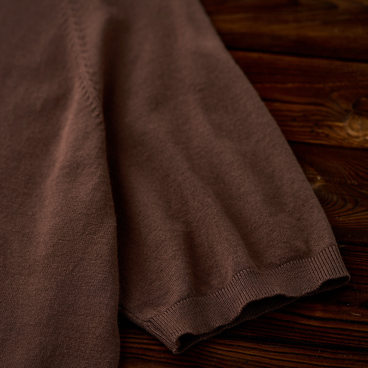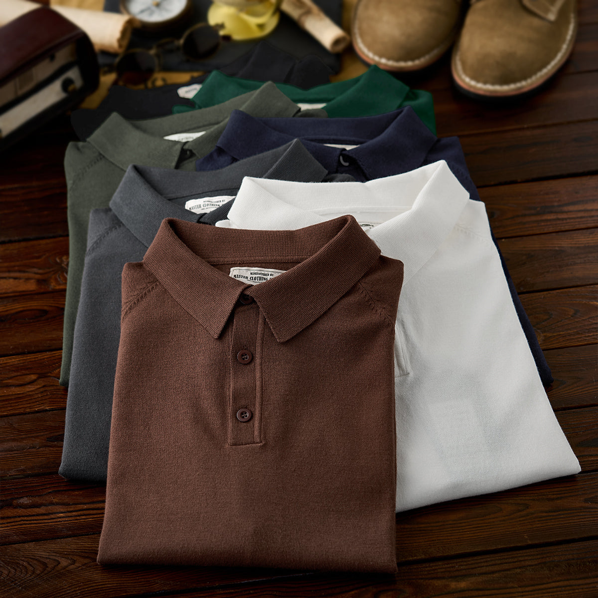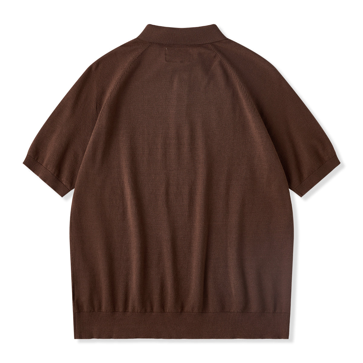 クラシックなポロシャツのスタイルを現代的にアレンジしたもので、カジュアルながらも上品な印象を与え。リブ編みの裾と袖口がデザインの一貫性を持たせ、全体のバランスを整えている。ラグランスリーブの袖のデザインで、肩と脇の下に縫い目がなく、袖が胴体にスムーズにつながっている。肩の動きを制限せずに快適なフィット感を提供。複数のカラーバリエーションがあり、7色が展開されて、落ち着いた色合いが多く、どの色もコーディネートしやすい。
