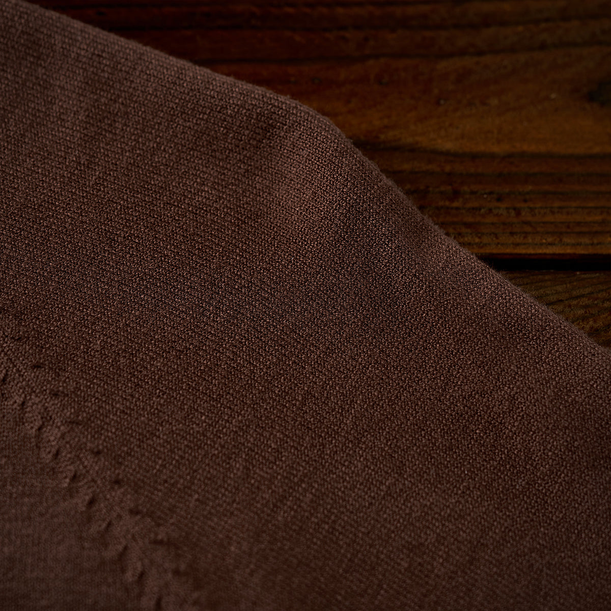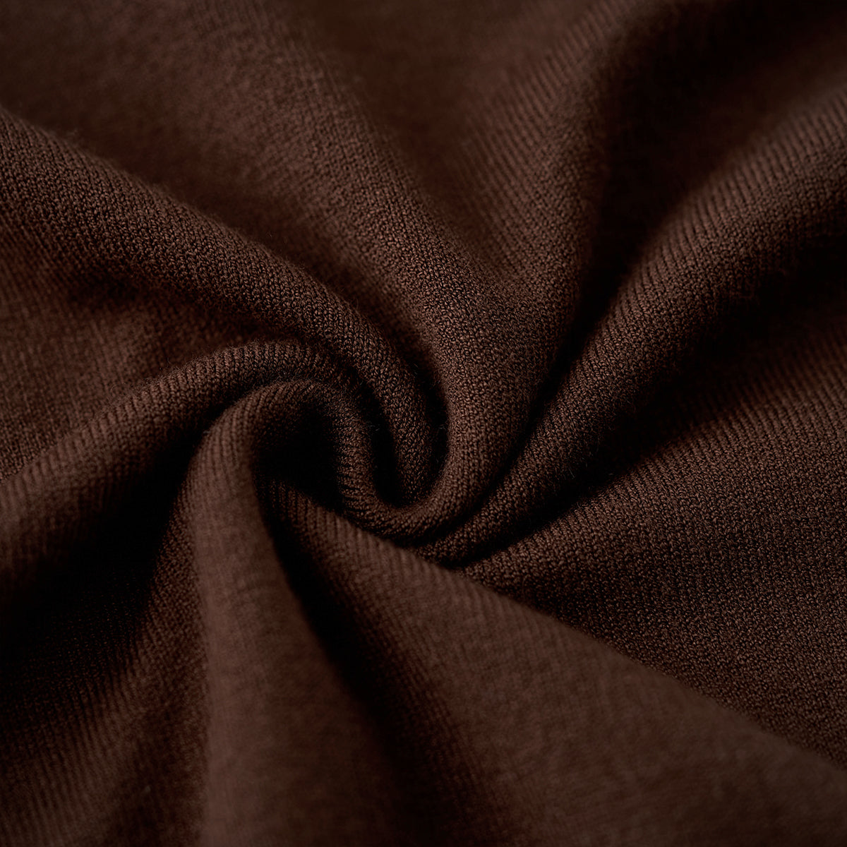 ビスコース混紡ニット素材のため、伸縮性があり、動きやすさが確保されている。また、通気性が良いので、長時間の着用でも快適さを保つことができる。