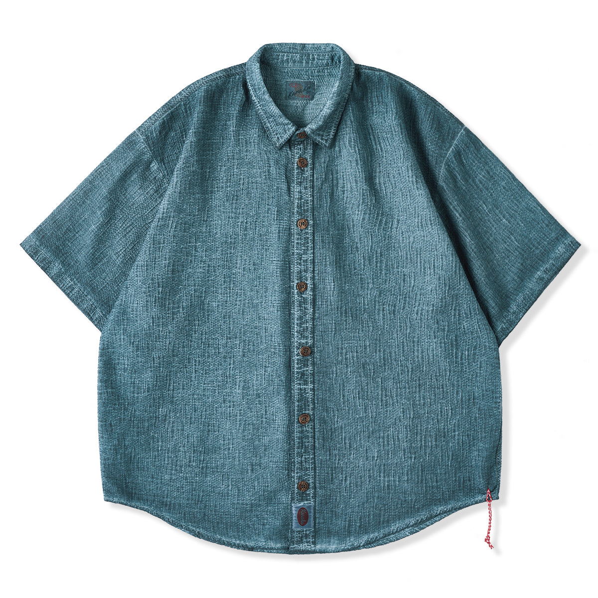 赤ヒモ付き ジャカード織りコットン半袖シャツ