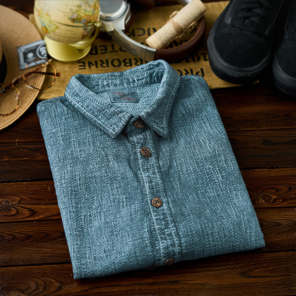街中はもちろん、レジャーシーンにも最適なリゾートコーデに。無地のパンツとは相性抜群、ショートパンツと合わせれば旬なリゾートスタイルに完成。