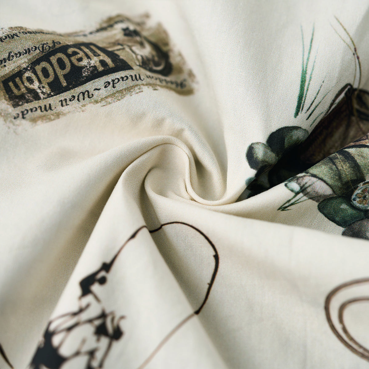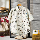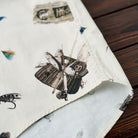レトロ手描き風フィッシングギア柄コットン半袖シャツ