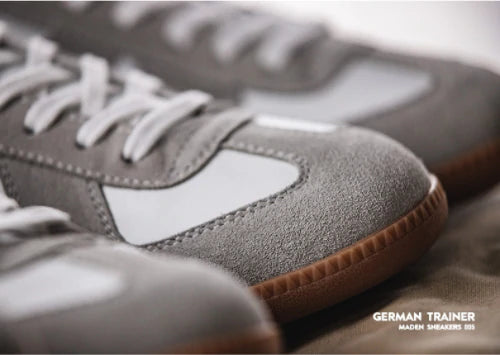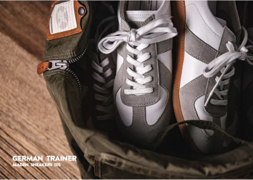 スニーカーの中では目にする機会の多いジャーマントレーナー。ドイツ軍のトレーニングシューズとしてうまれ、現在は数多くのスニーカーのデザインのもとになっています。そんな普遍的なデザインはどのように生まれたのでしょうか。