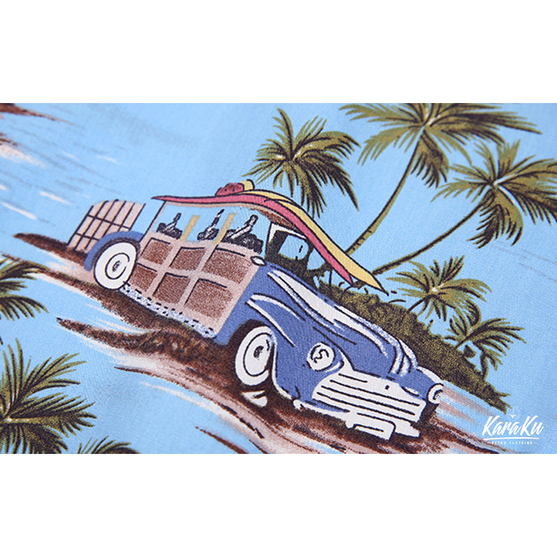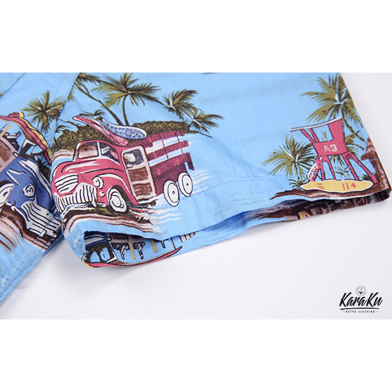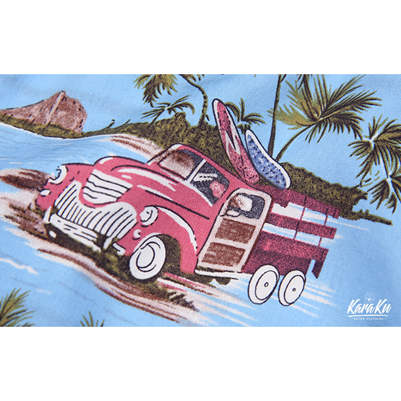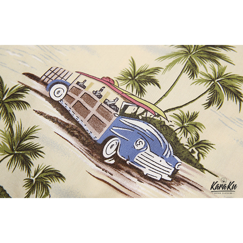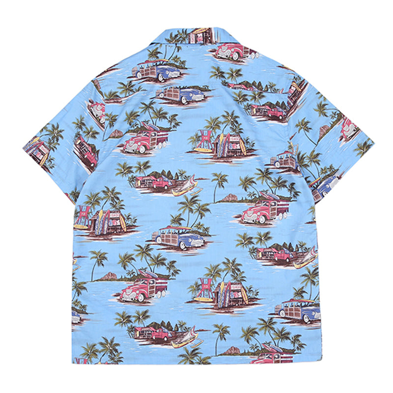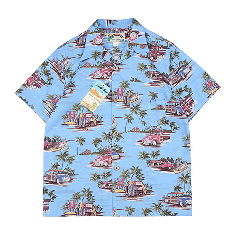 HAWAII ALOHA「ヤシの木・レトロカー・サーフボード」アロハシャツ