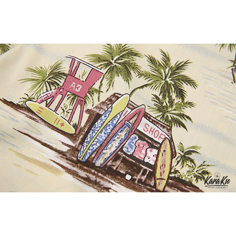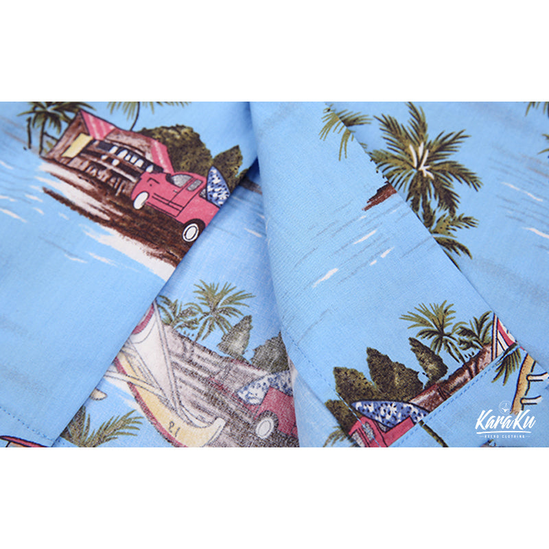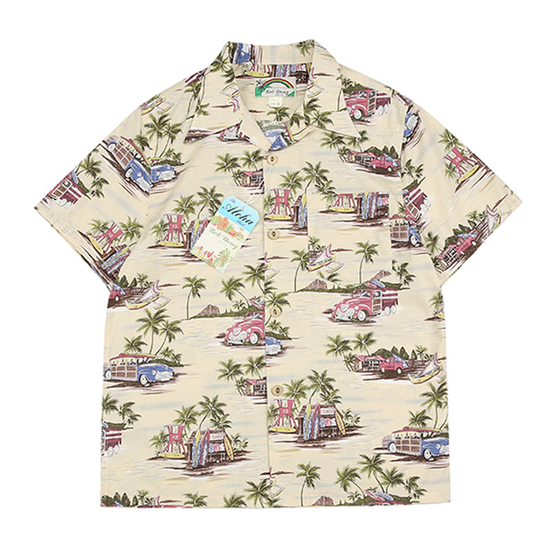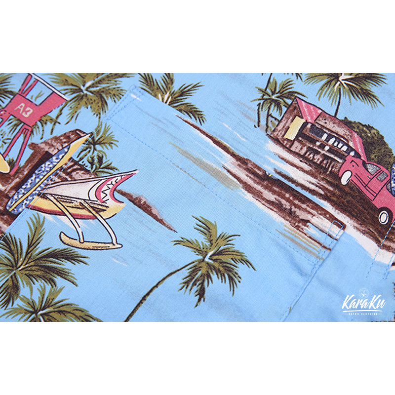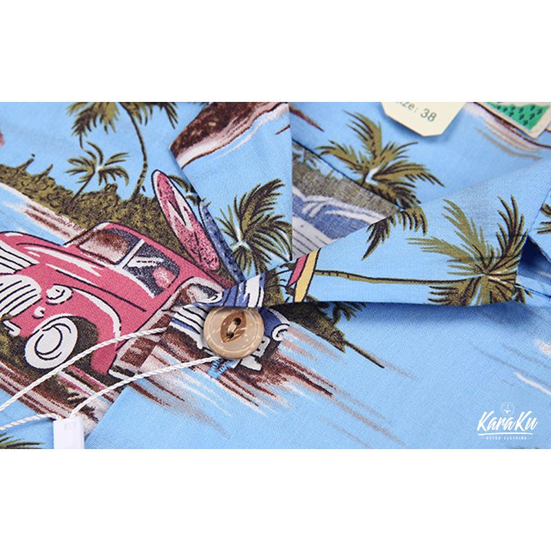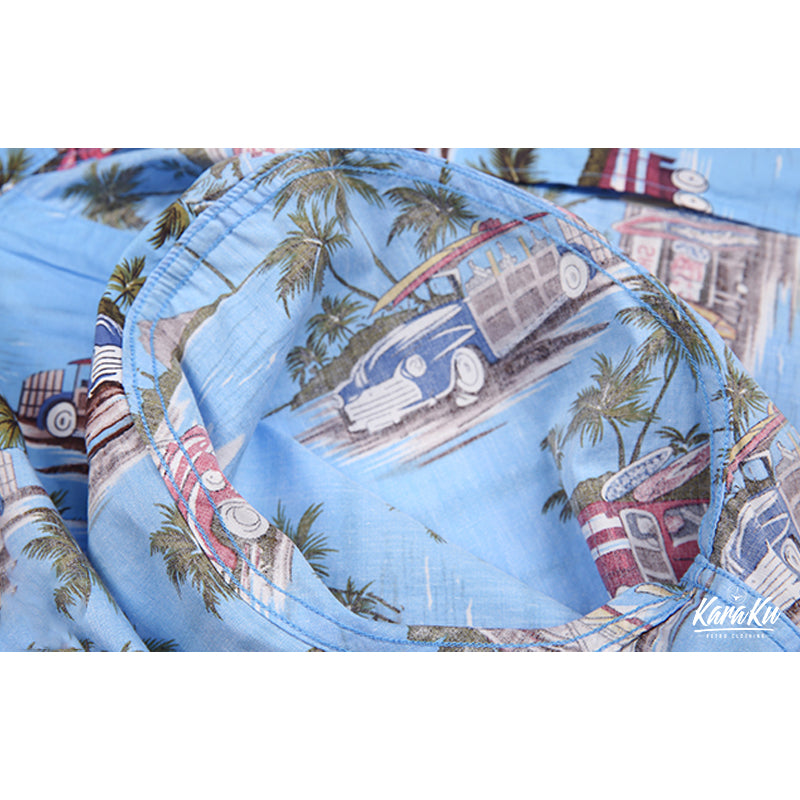 HAWAII ALOHA「ヤシの木・レトロカー・サーフボード」アロハシャツ