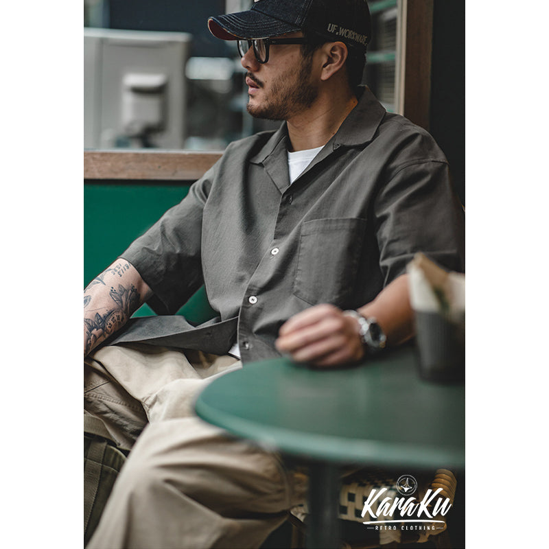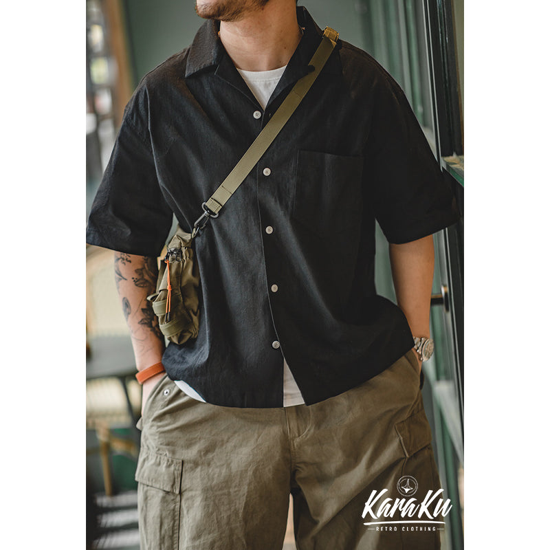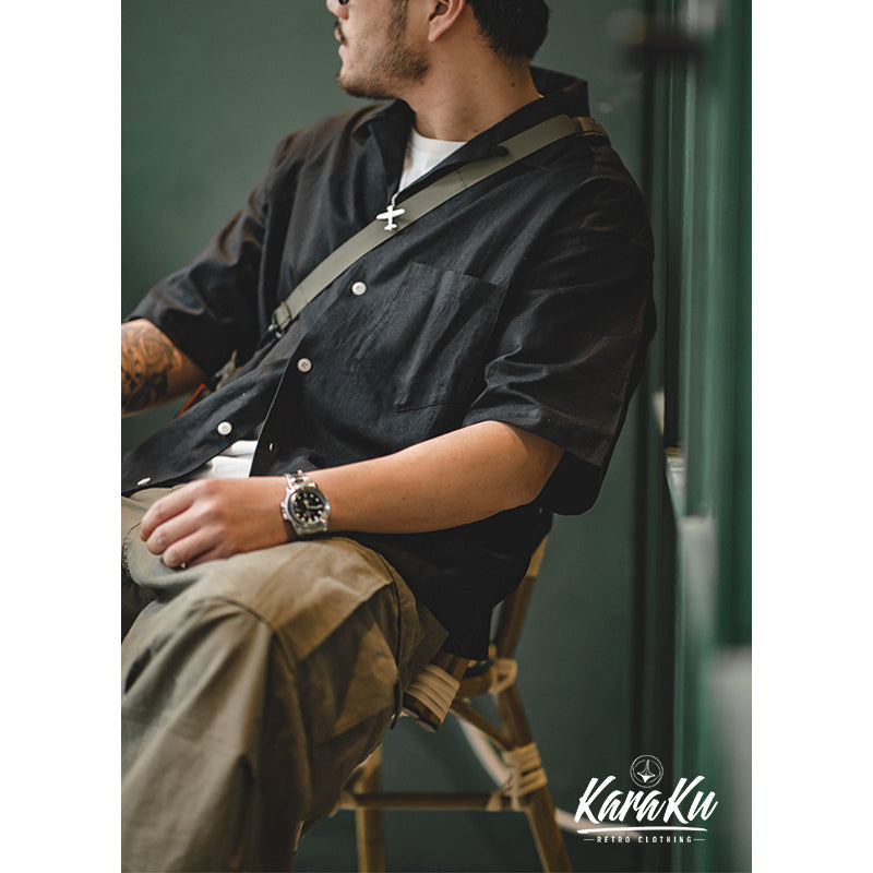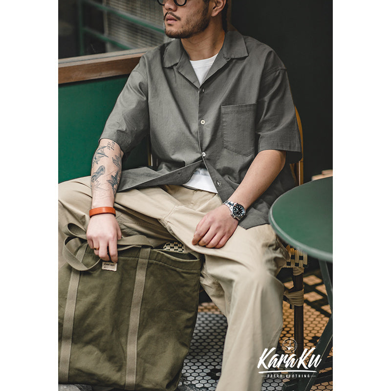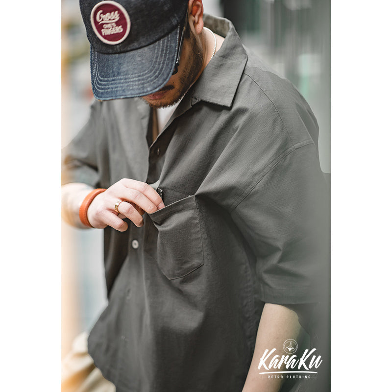 デザインはシンプルで、胸元に1つポケットがあり、さらっとしたキメ細かな表面感を実現。伝統的な開襟デザインはそのままにビッグシルエットでゆったりした快適さをプラス、しっかりとした落ち感のあるドロップショルダーに、程よくゆったりとした身幅に、シャープな印象で、リラックス感たっぷりな着心地です。
